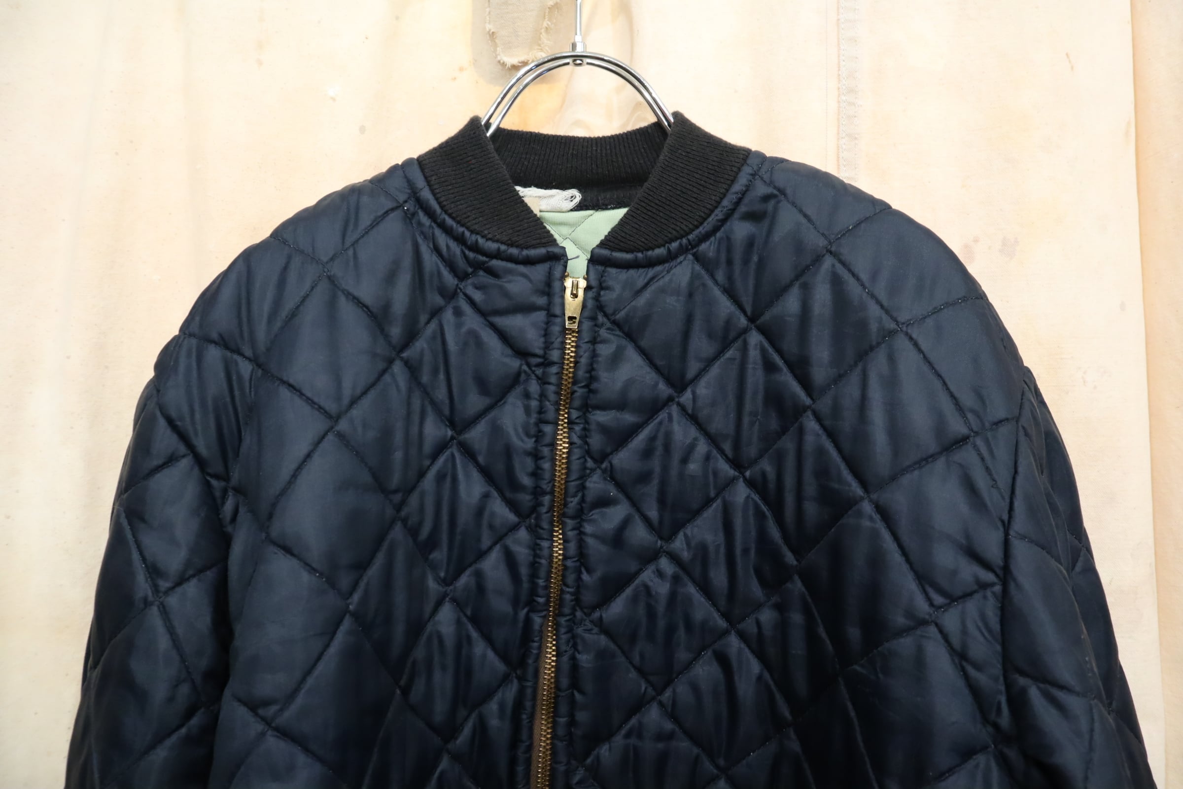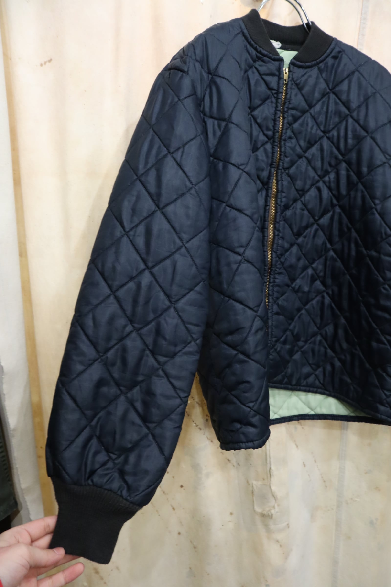 navy plain quilting vintage jacket [k-4981]