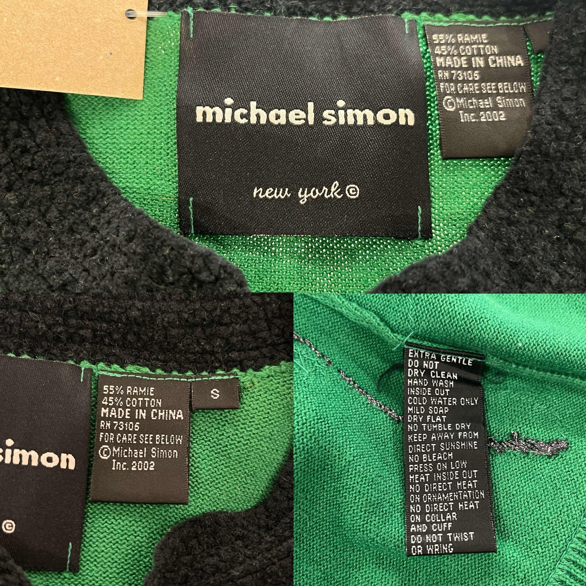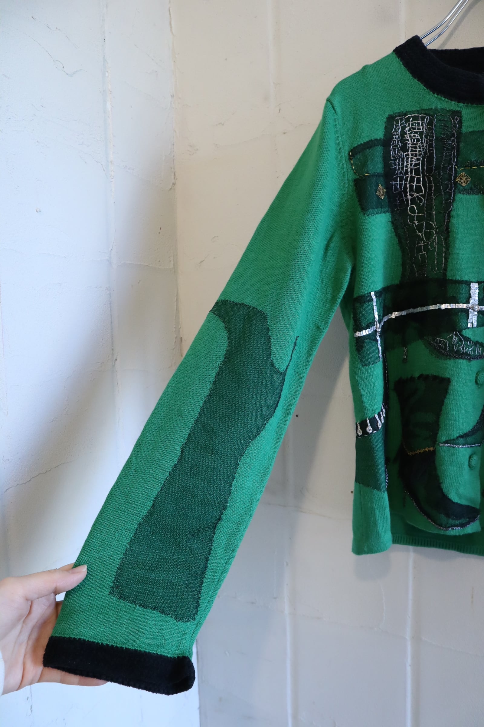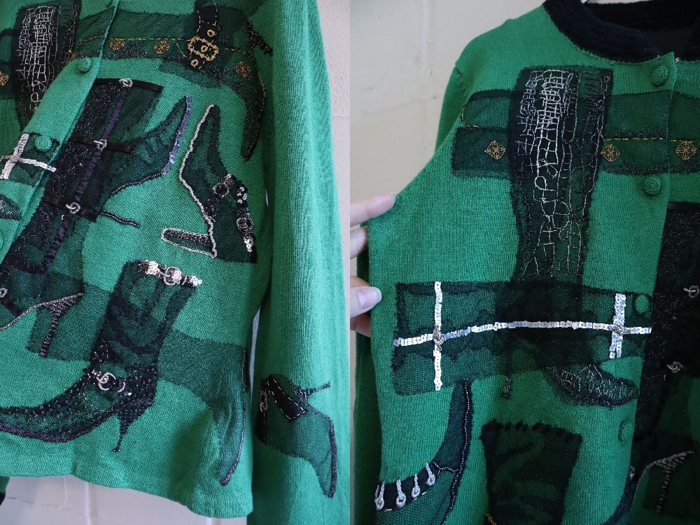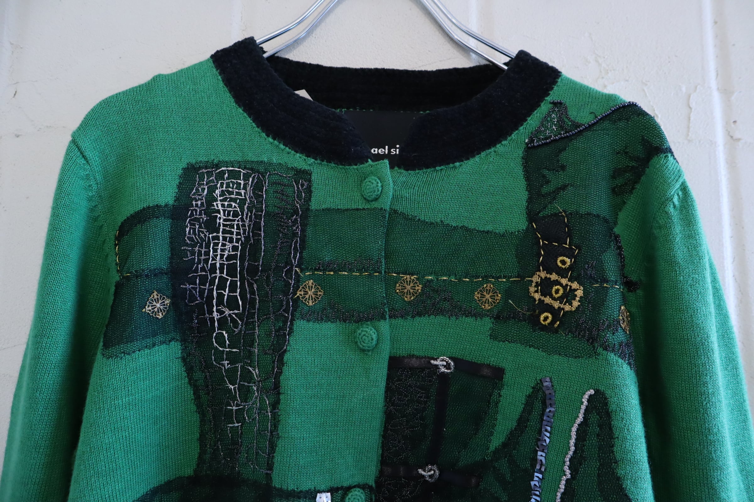 michael simon green×black shoes motif ramie cotton knit cardigan [l-4982]