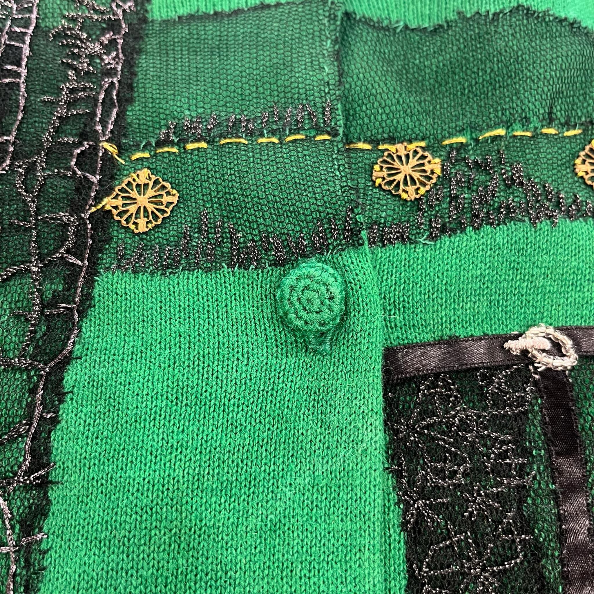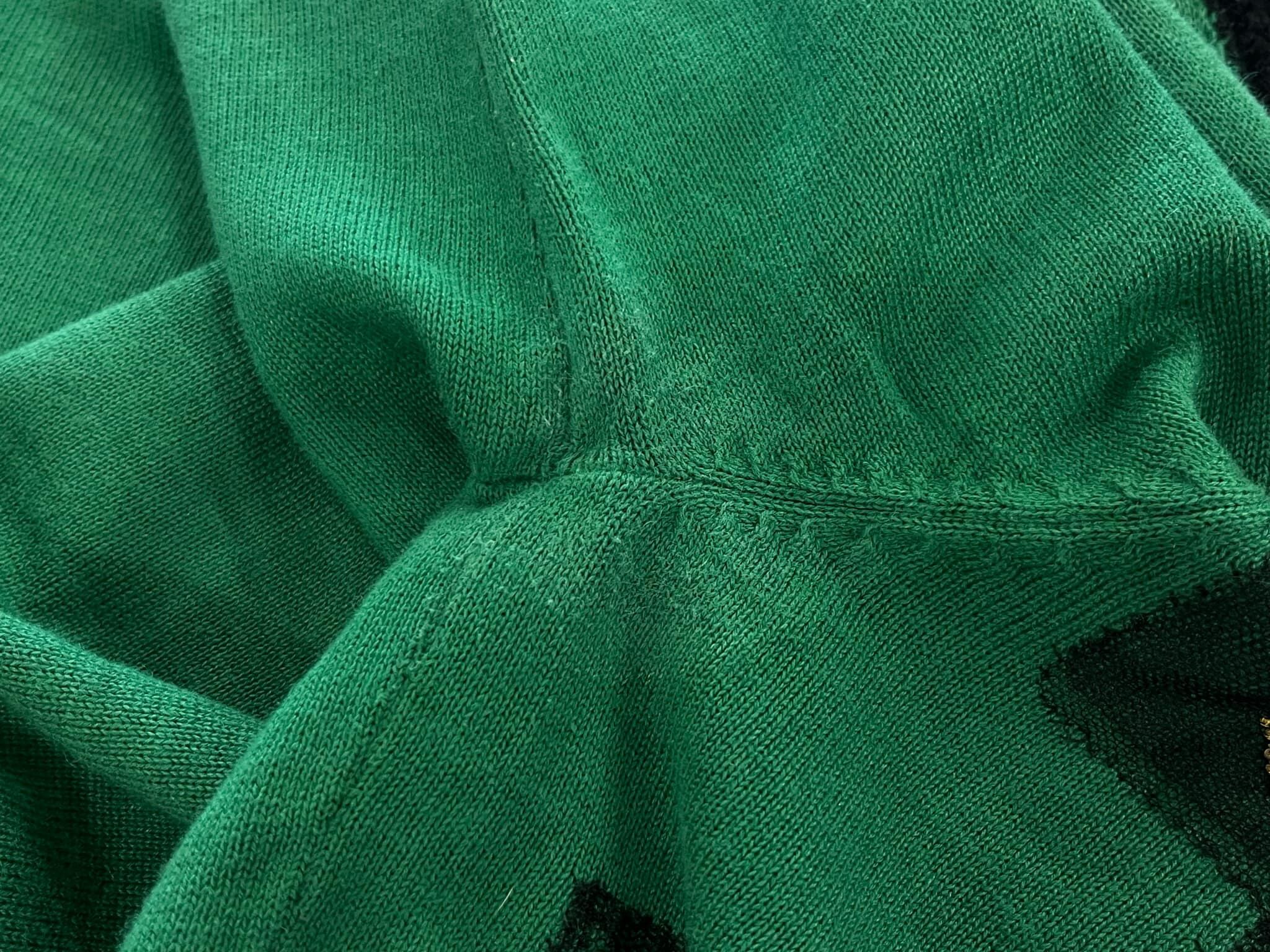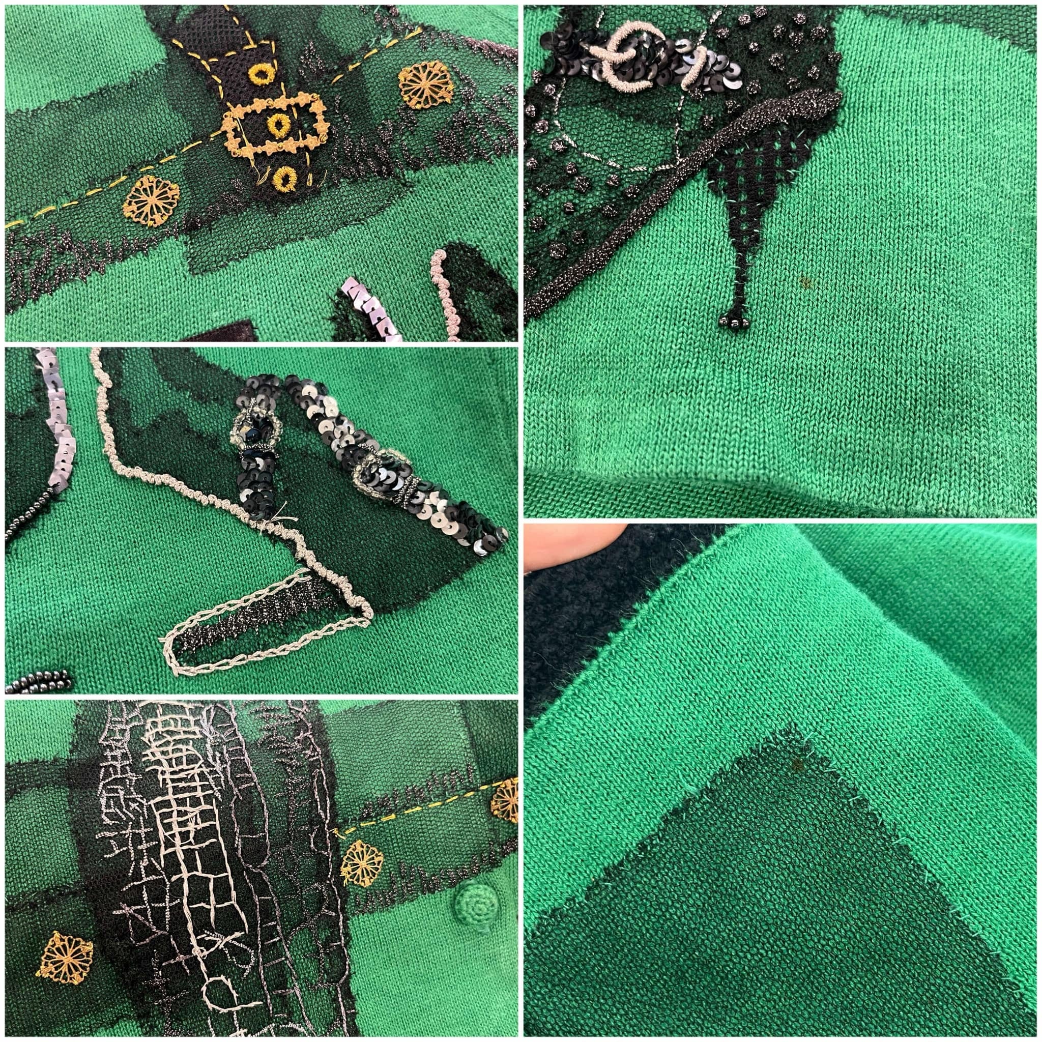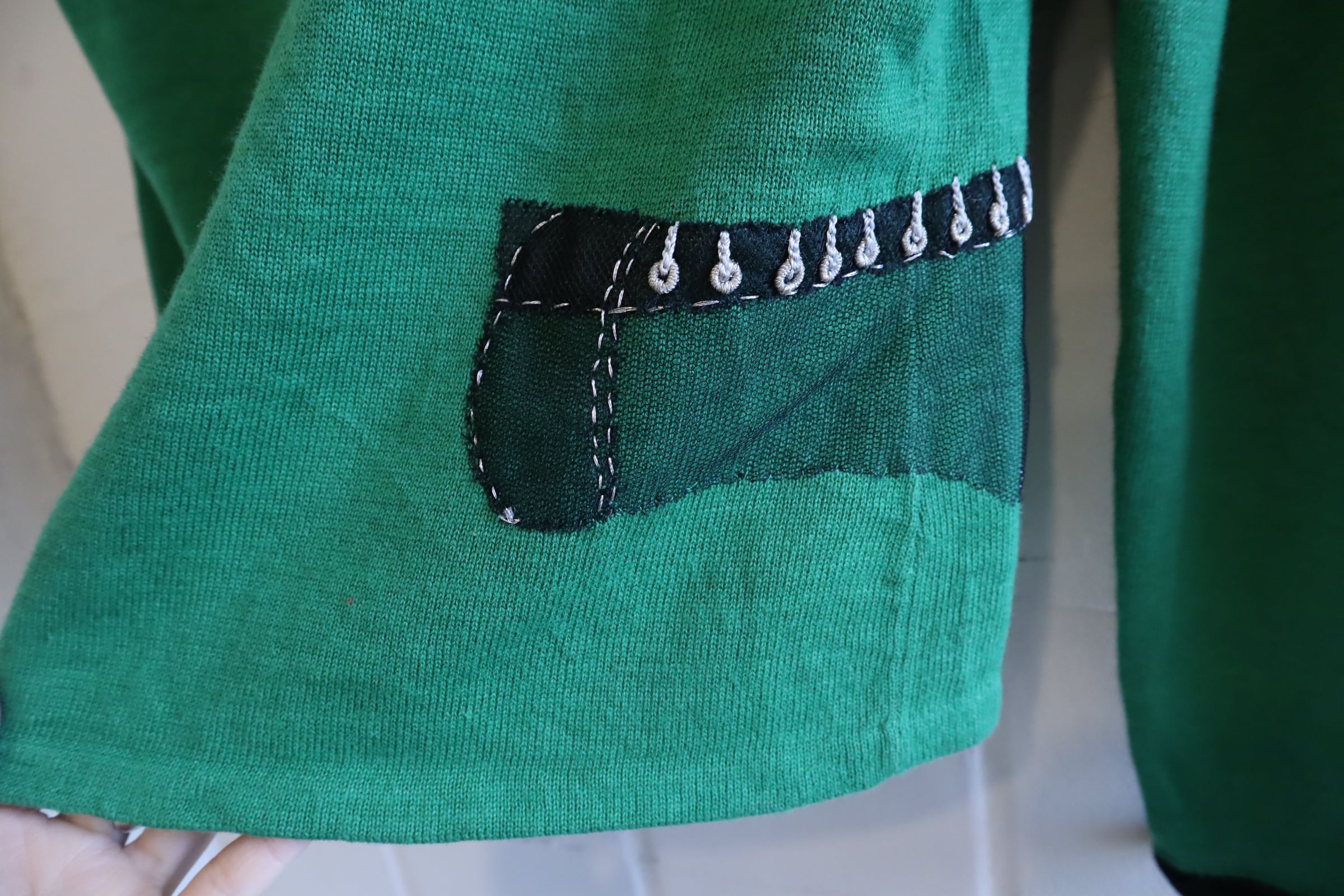 michael simon green×black shoes motif ramie cotton knit cardigan [l-4982]