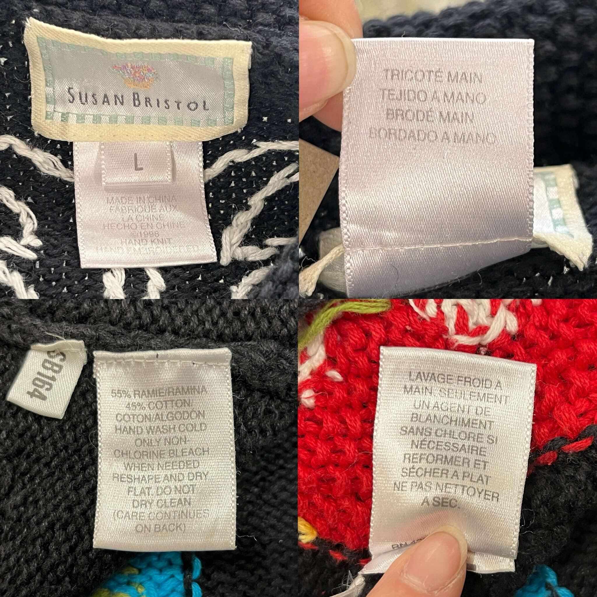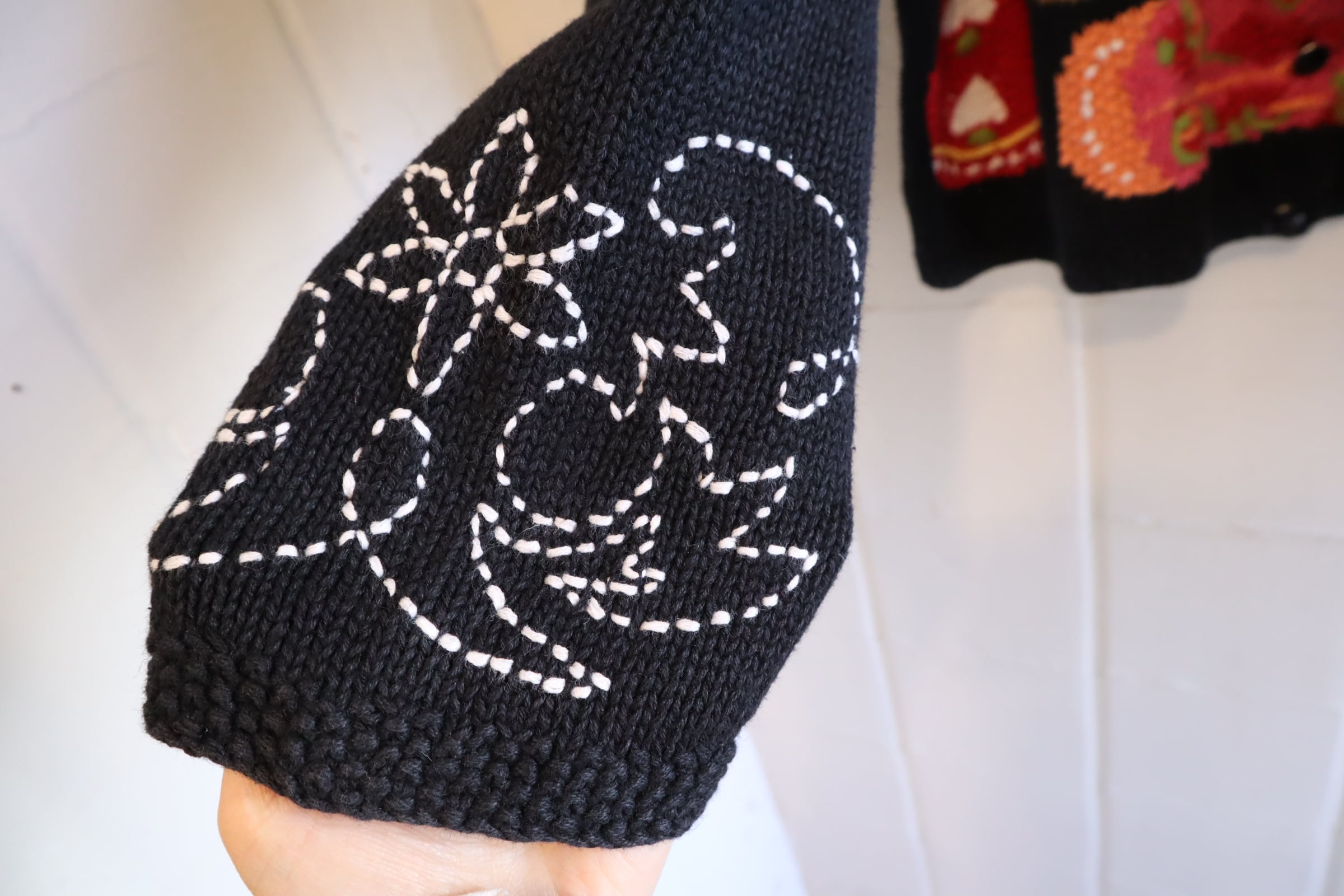 black×colorful westernboots motif ramie cotton knit cardigan [l-4983]