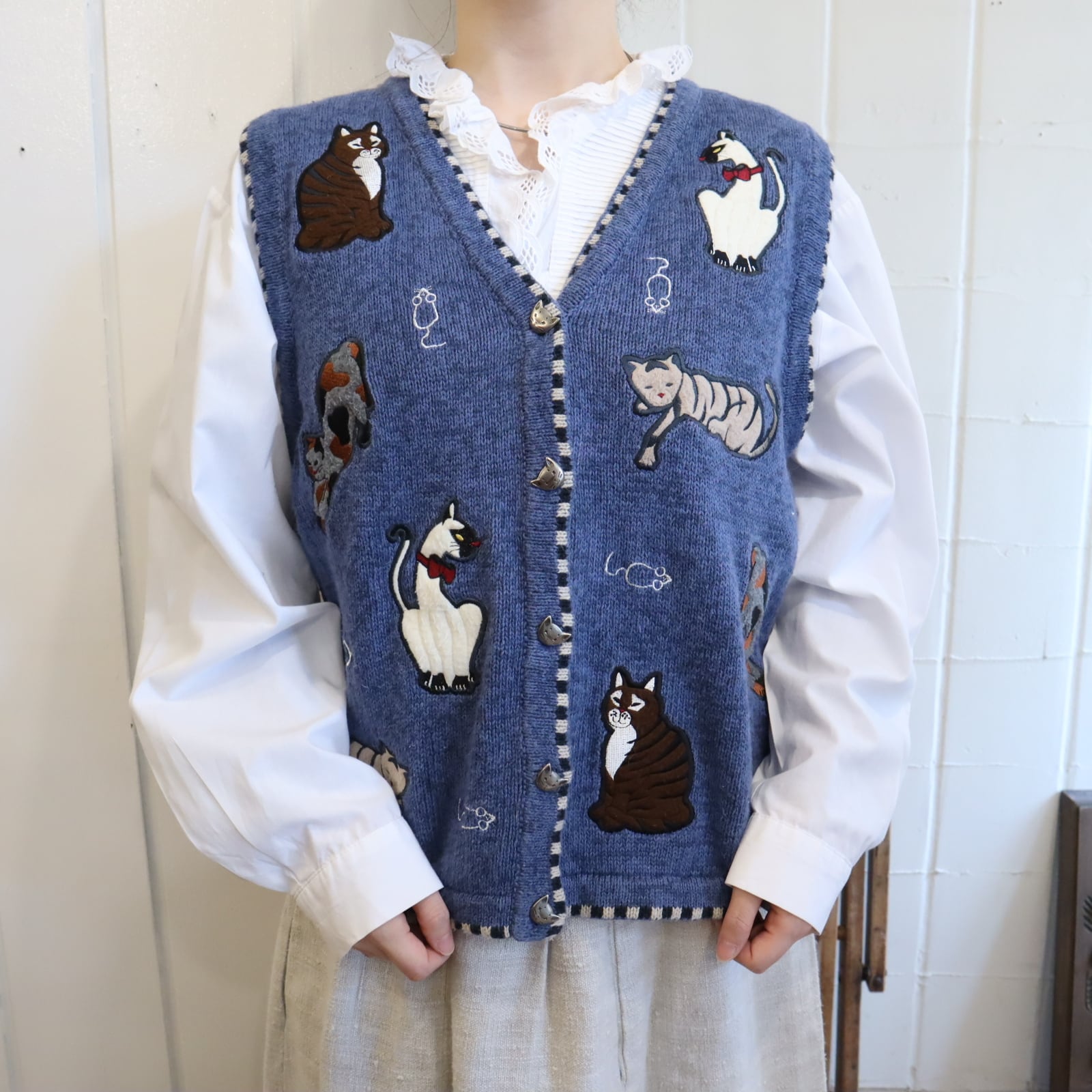 ネコ型のシルバーボタンがとっても可愛いニットベスト♡