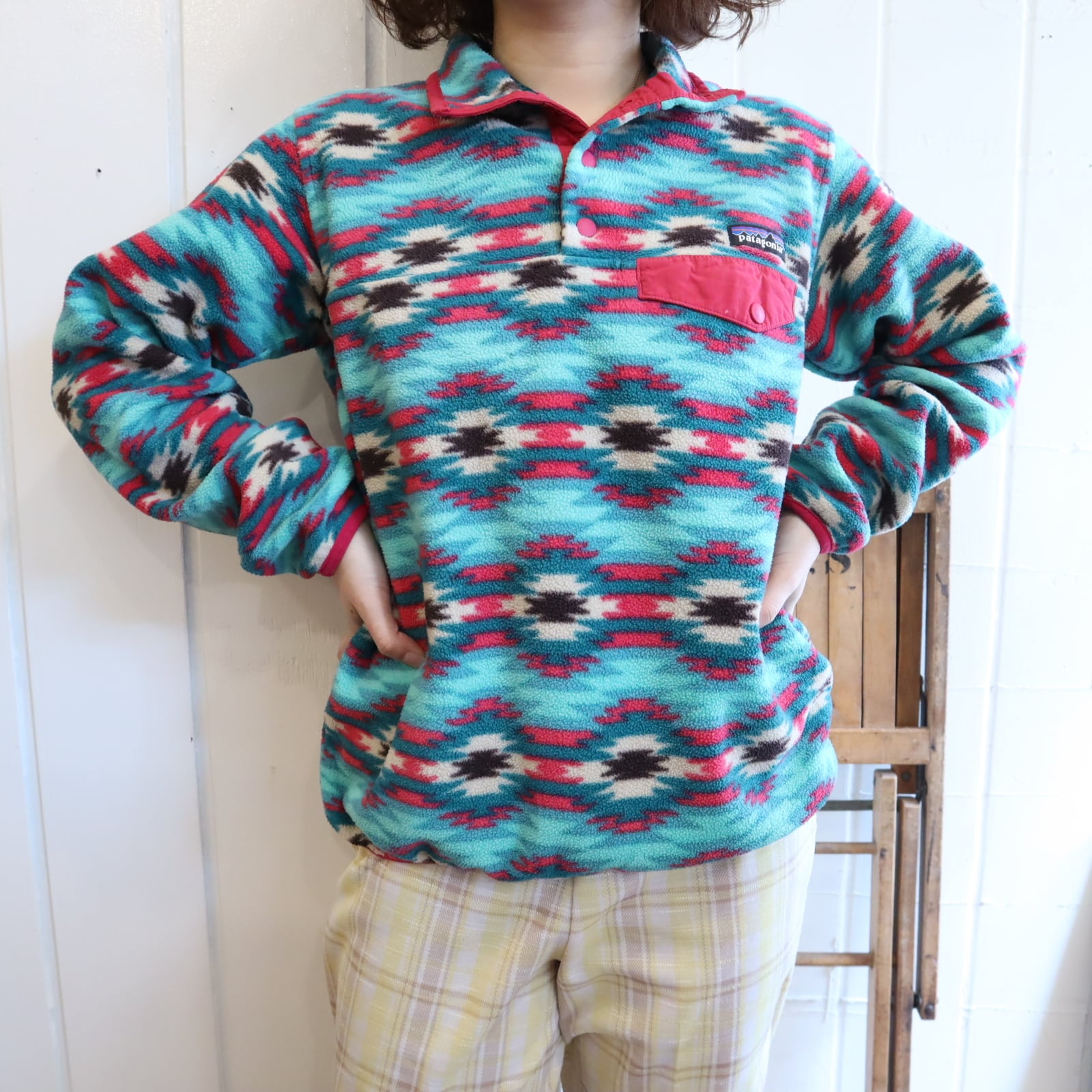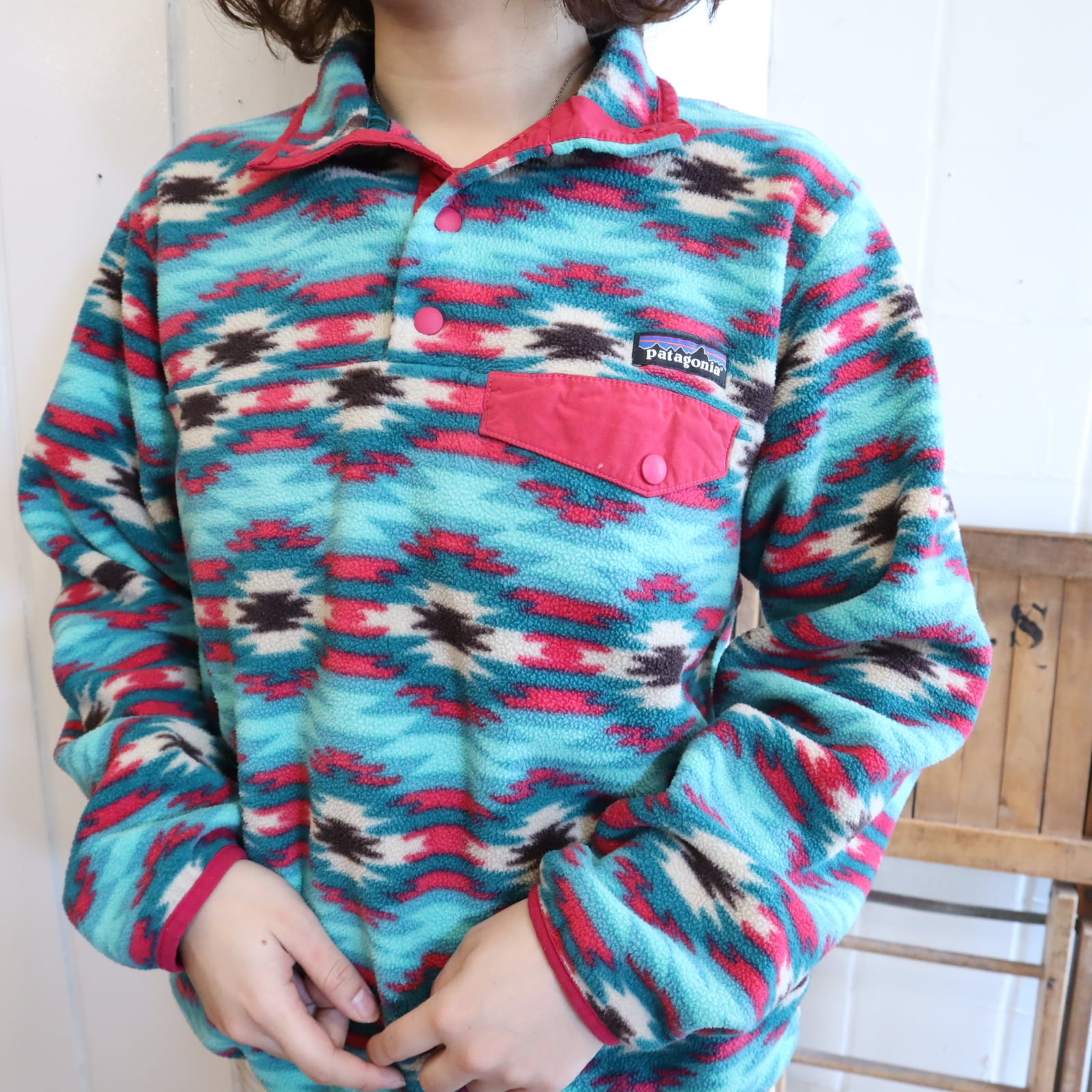 Patagonia mintgreen×pink geometric pullover snap-t fleece [k-4988]