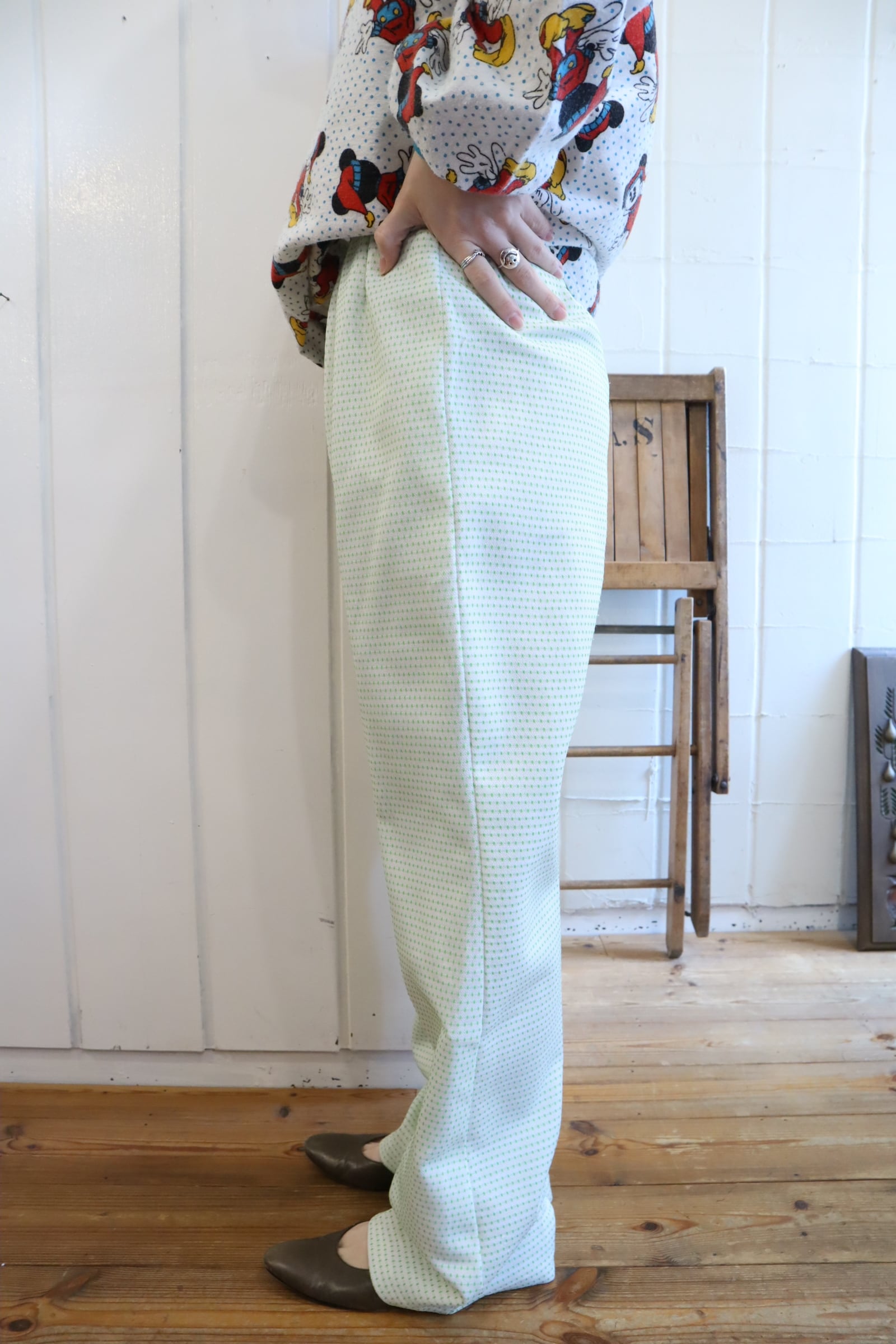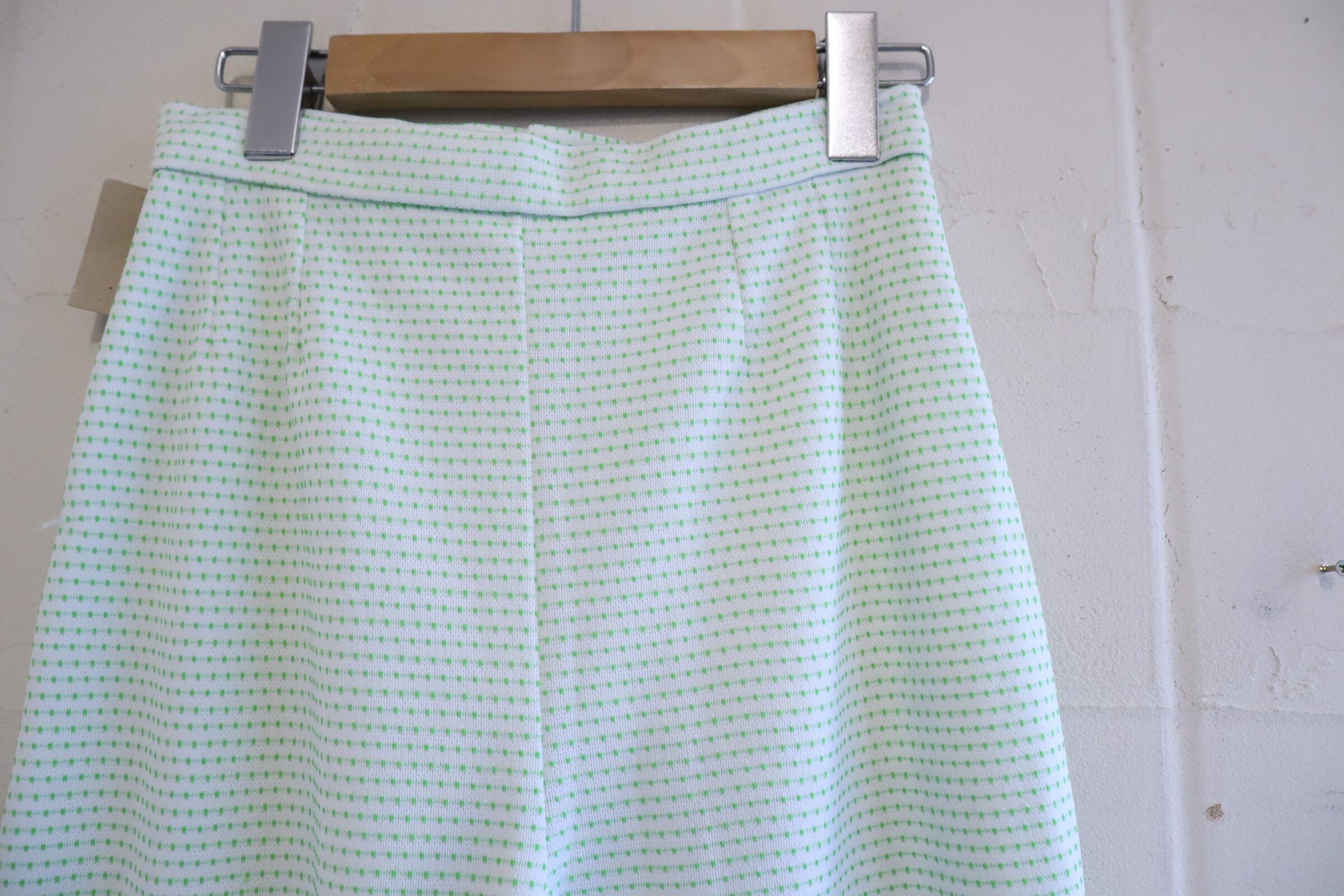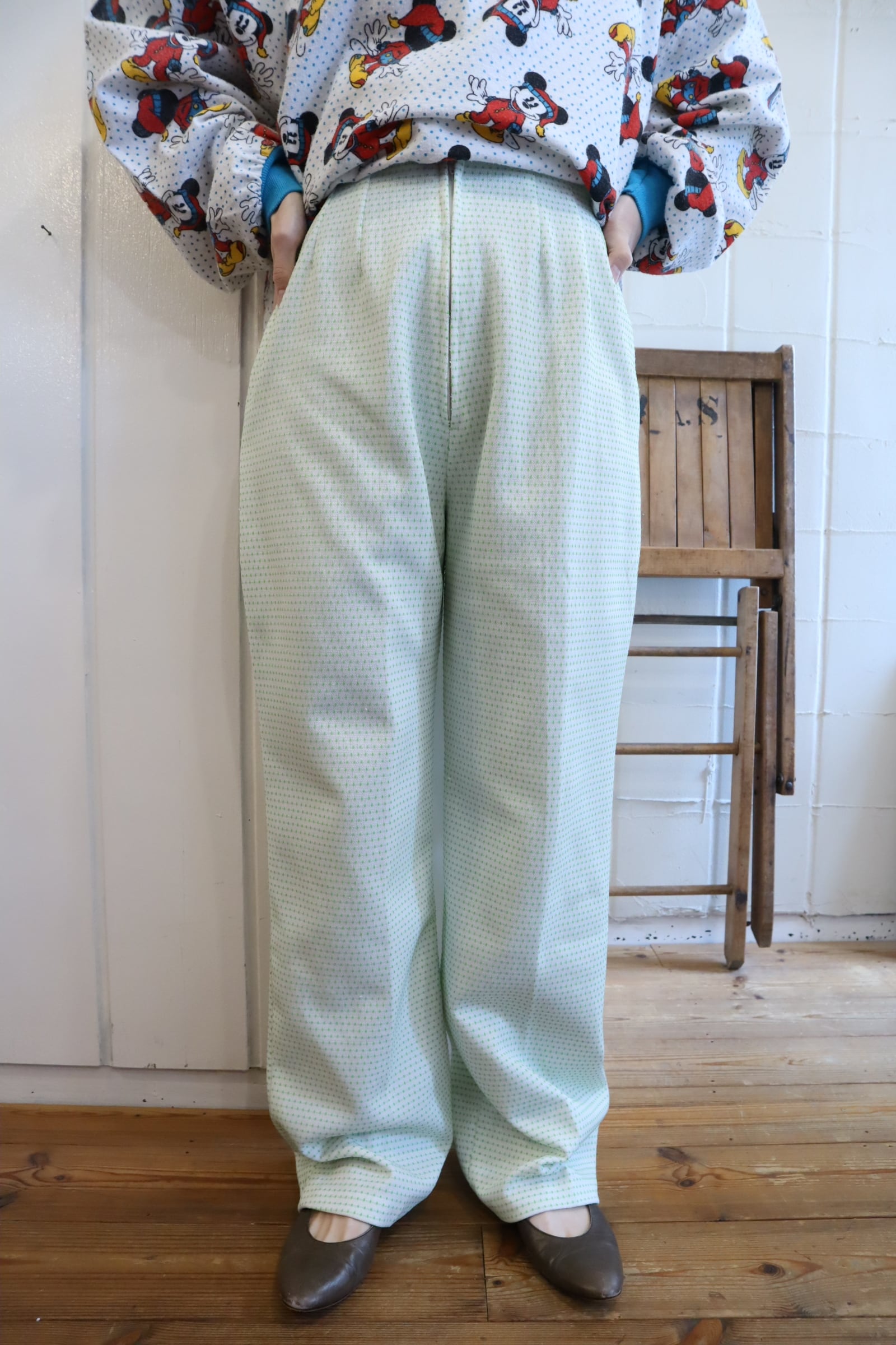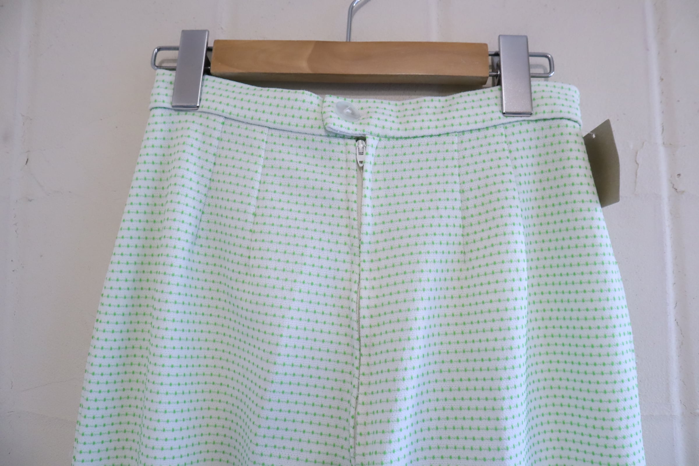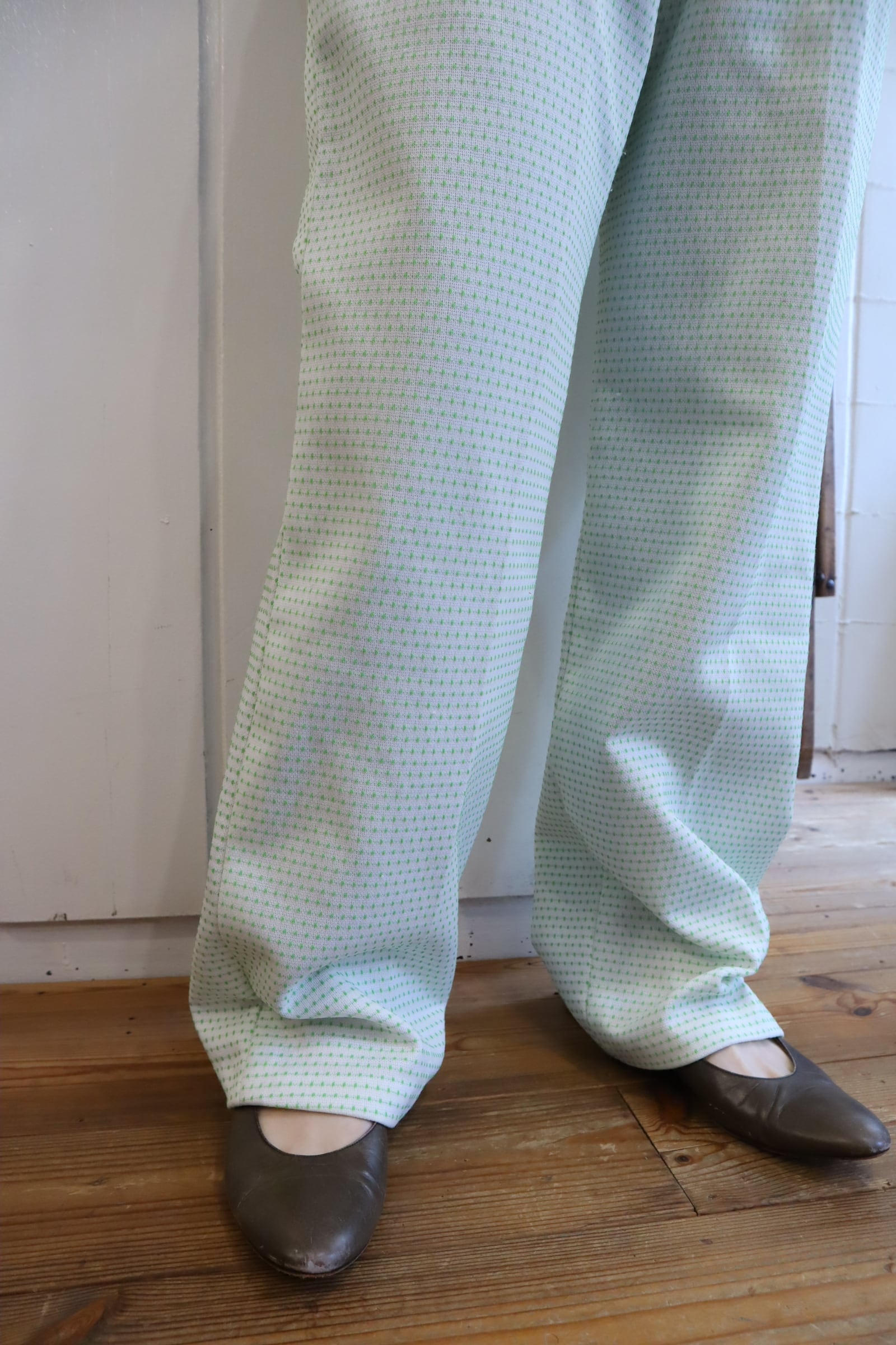70s-80s white×green dot tapered pants [l-4989]