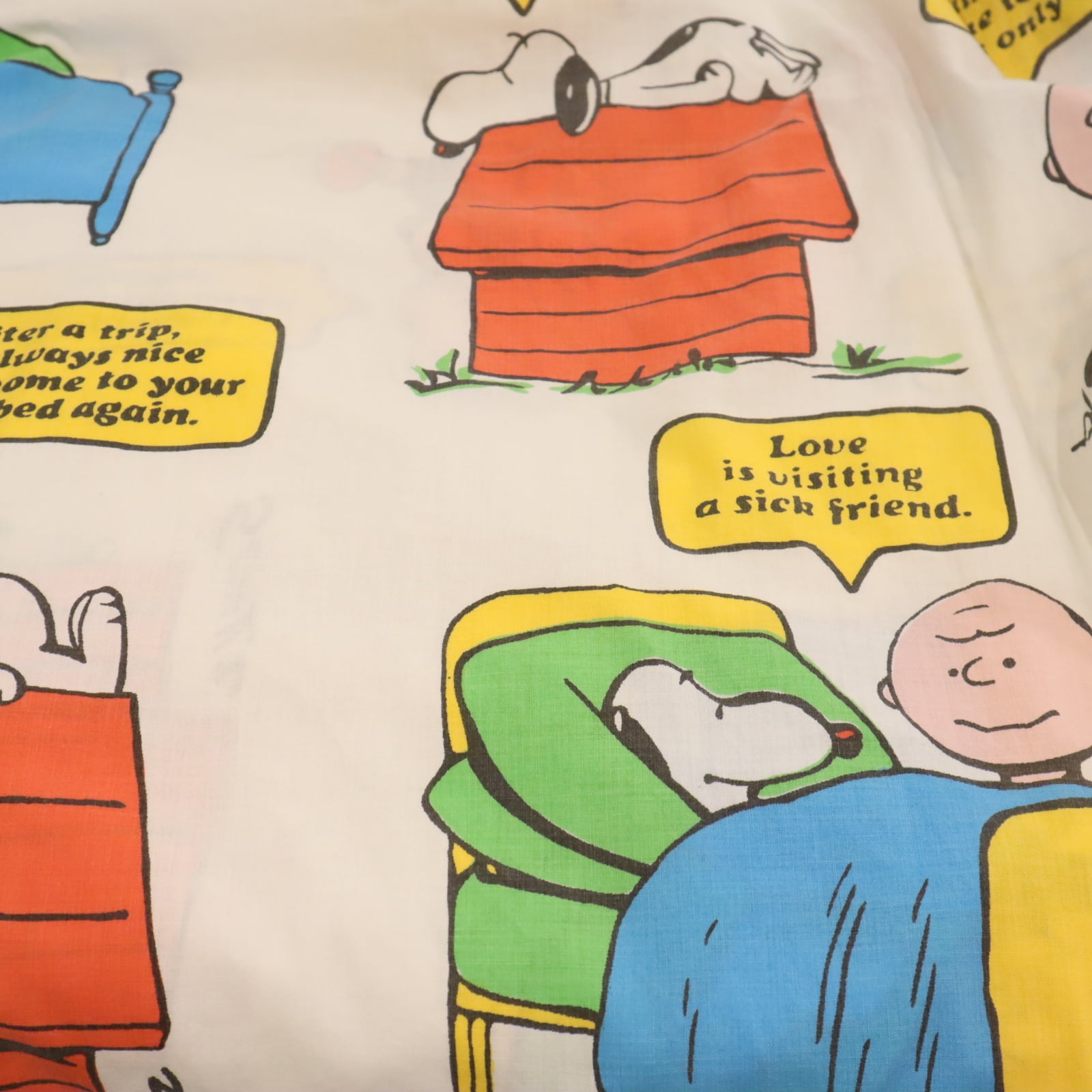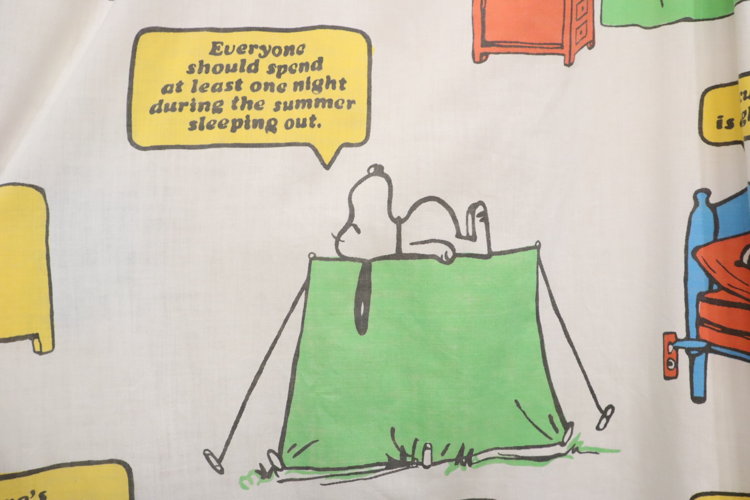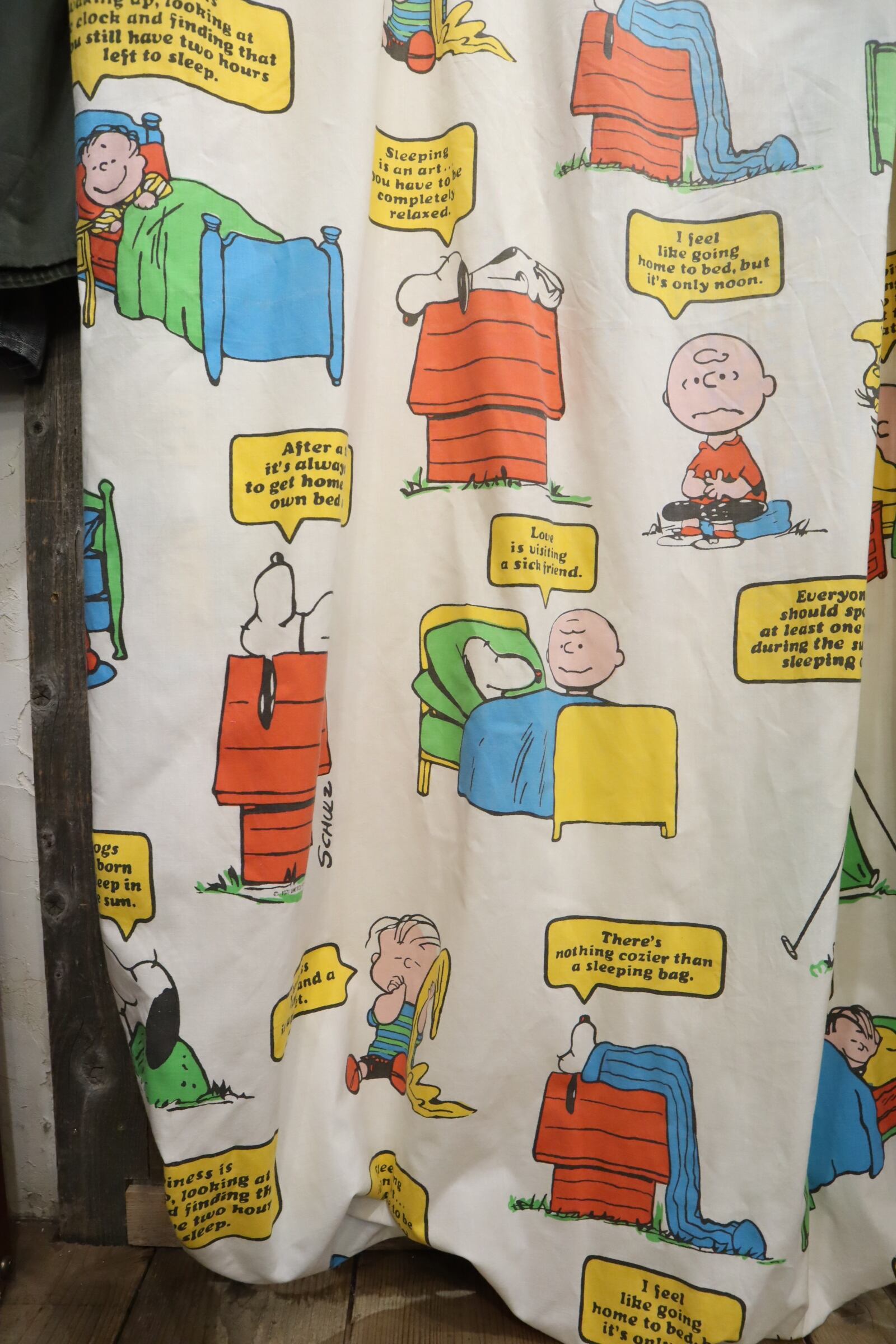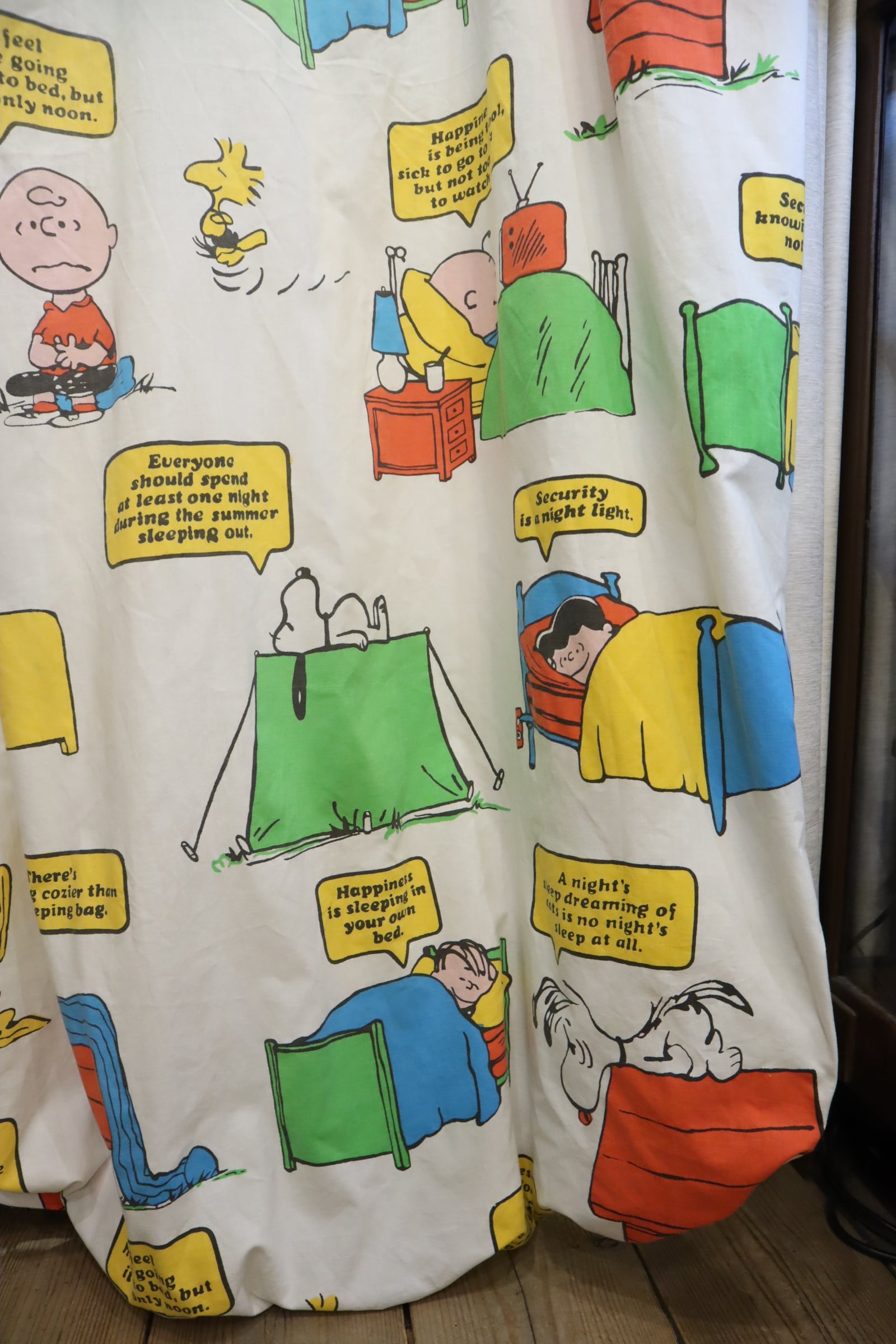 カラフルなスヌーピーやその仲間たちが可愛いベッドカバーです♡