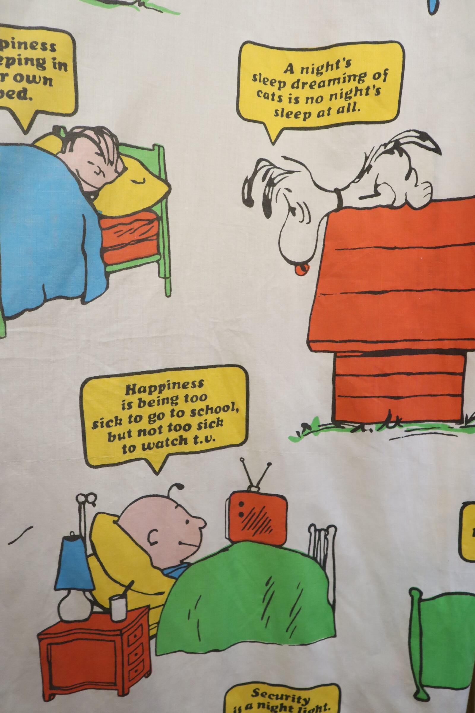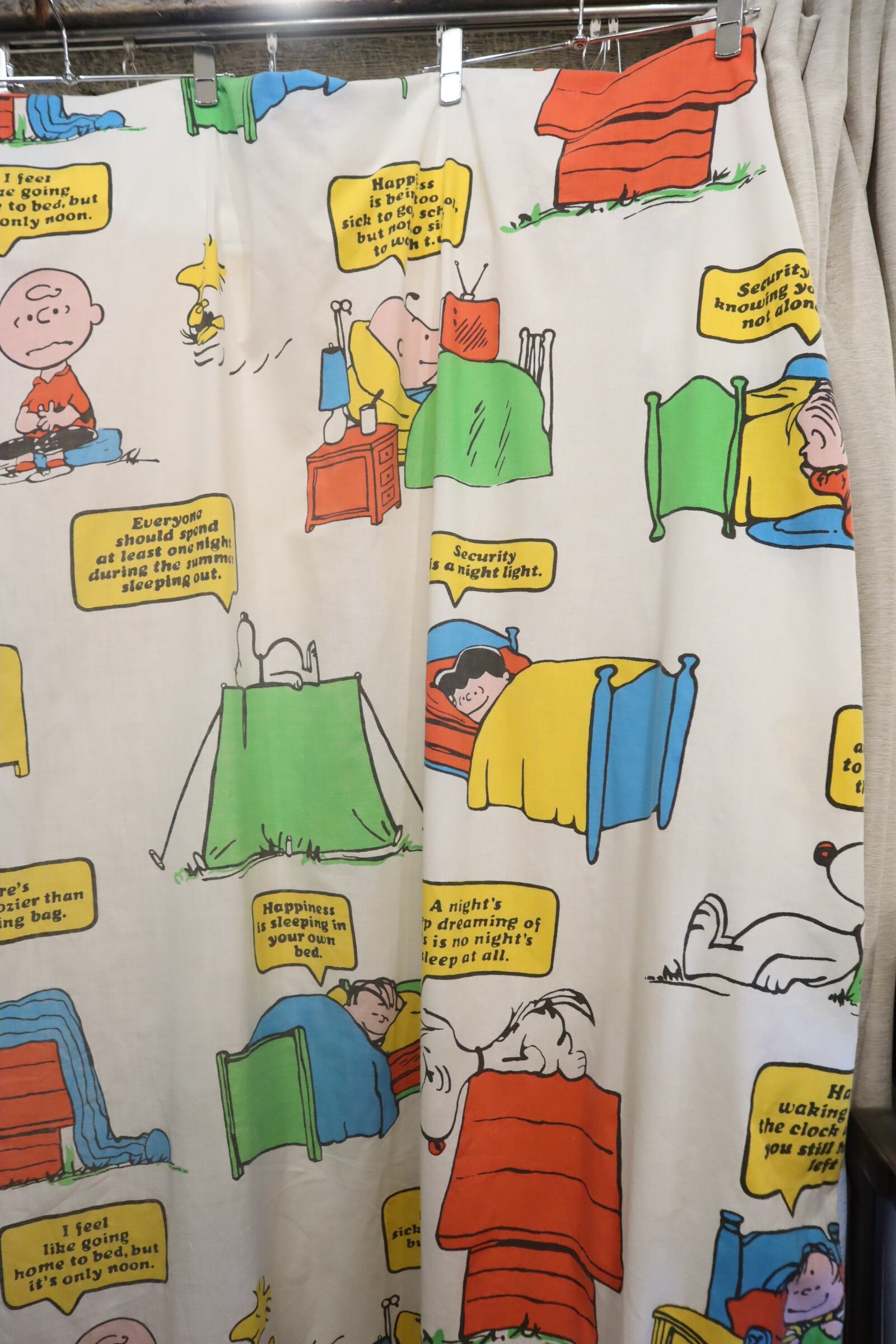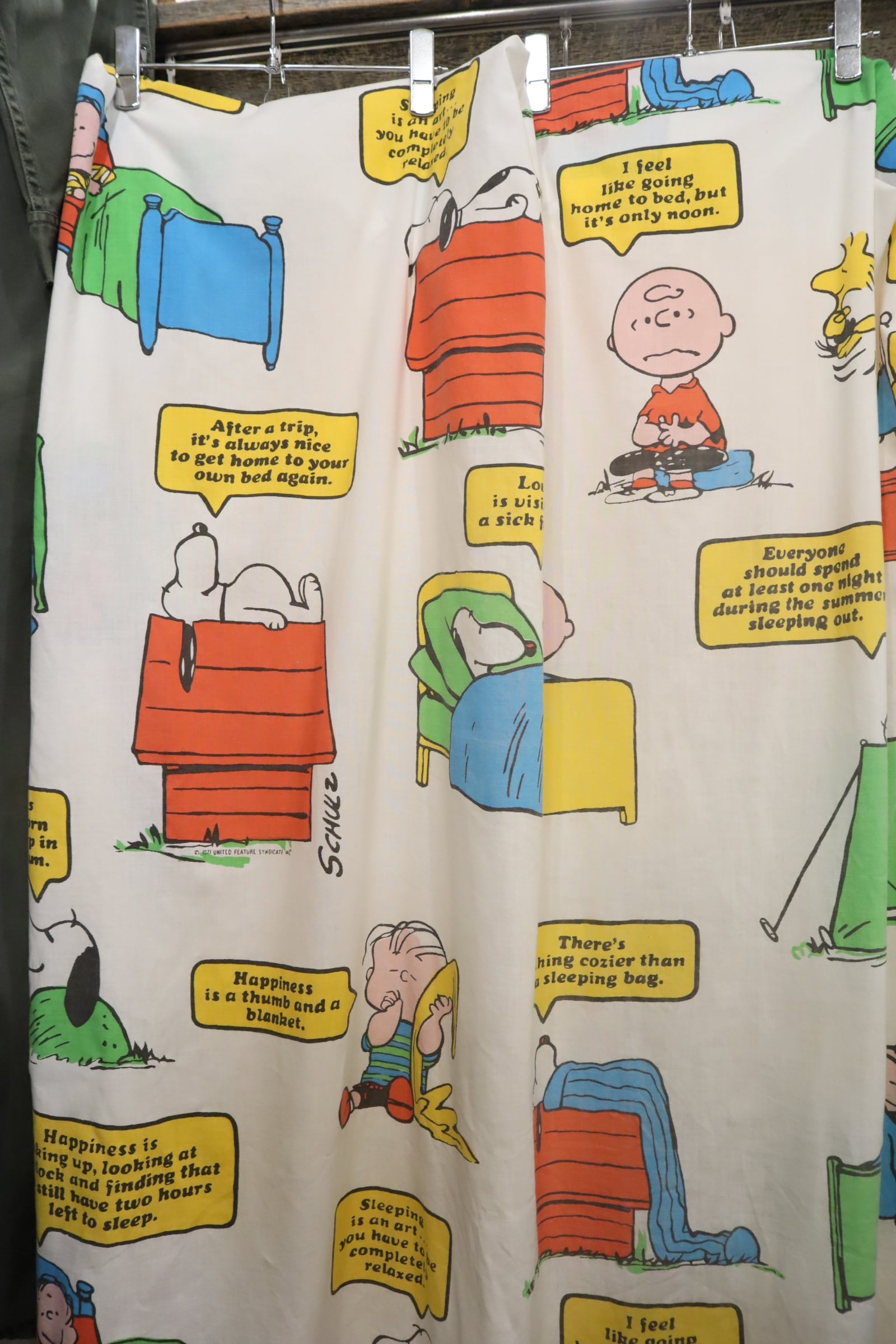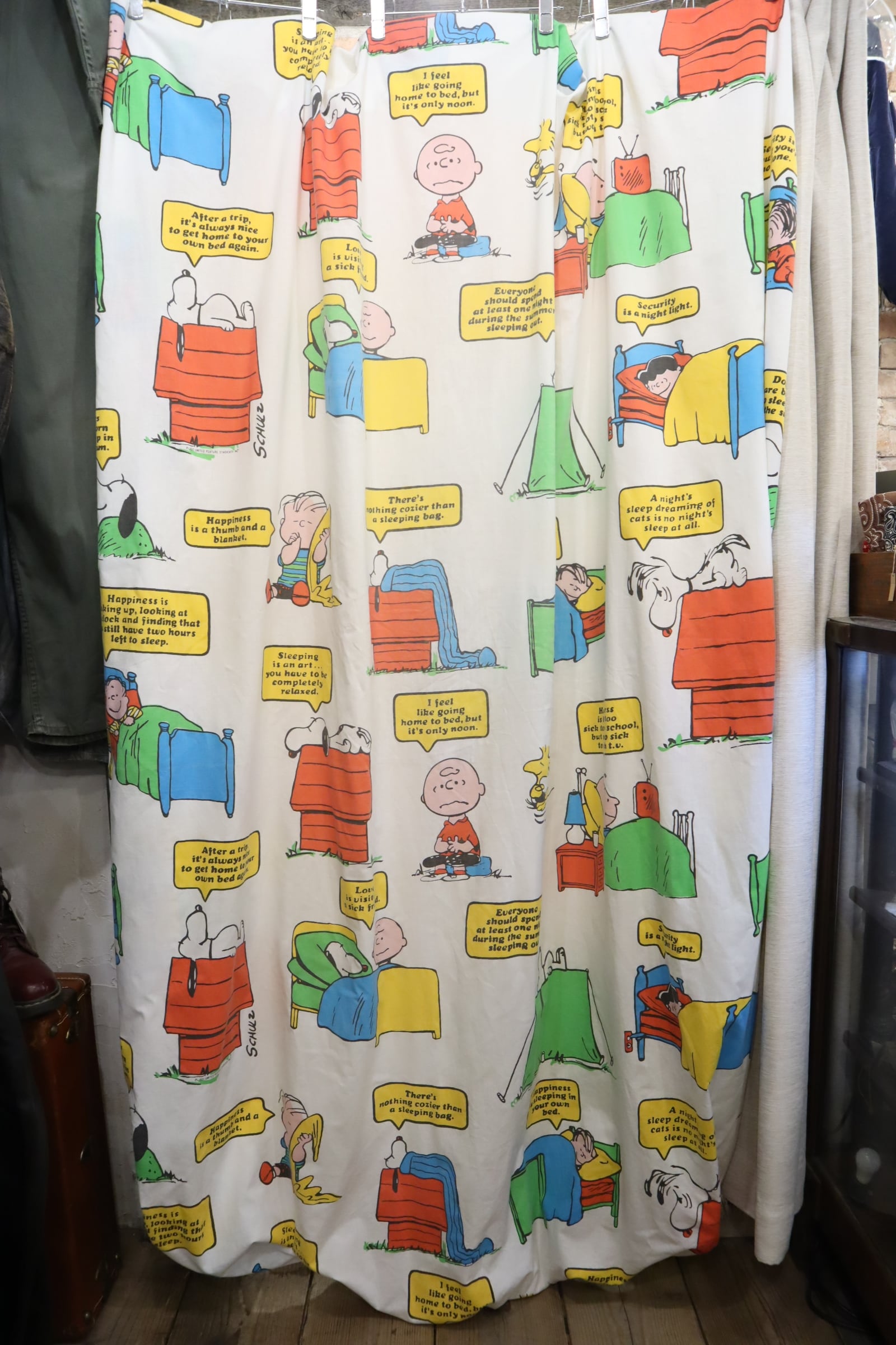カラフルなスヌーピーやその仲間たちが可愛いベッドカバーです♡