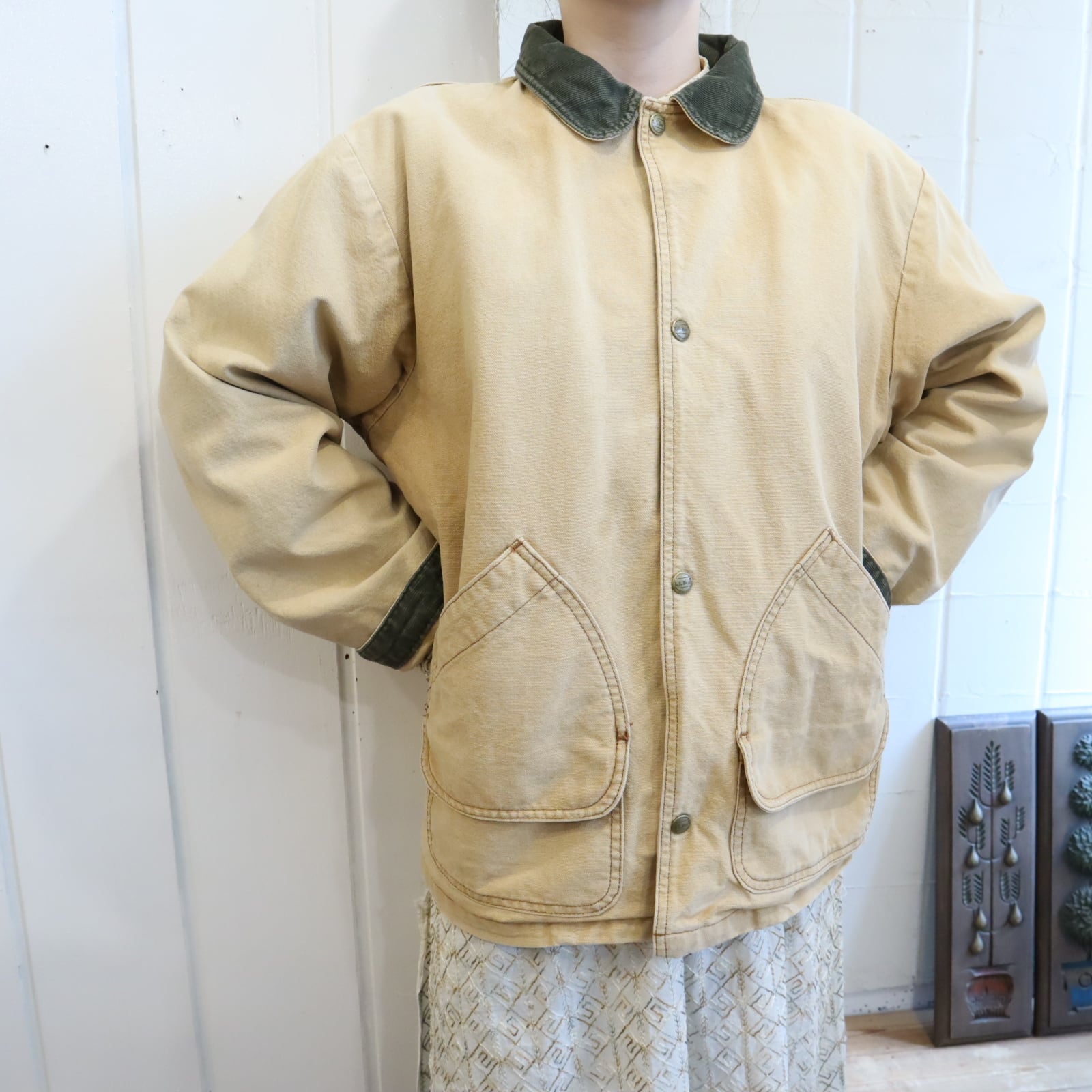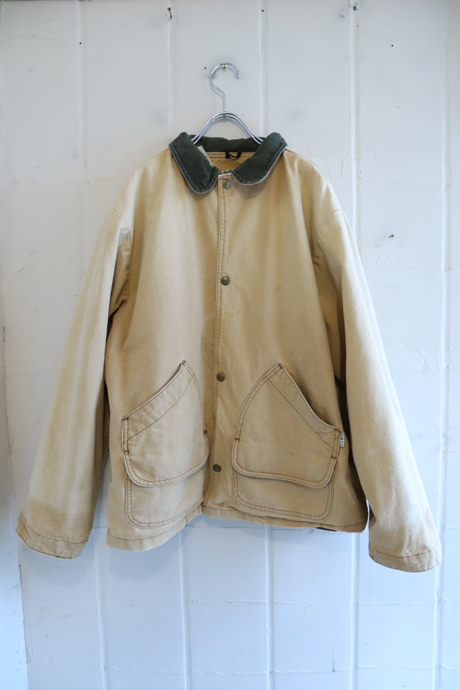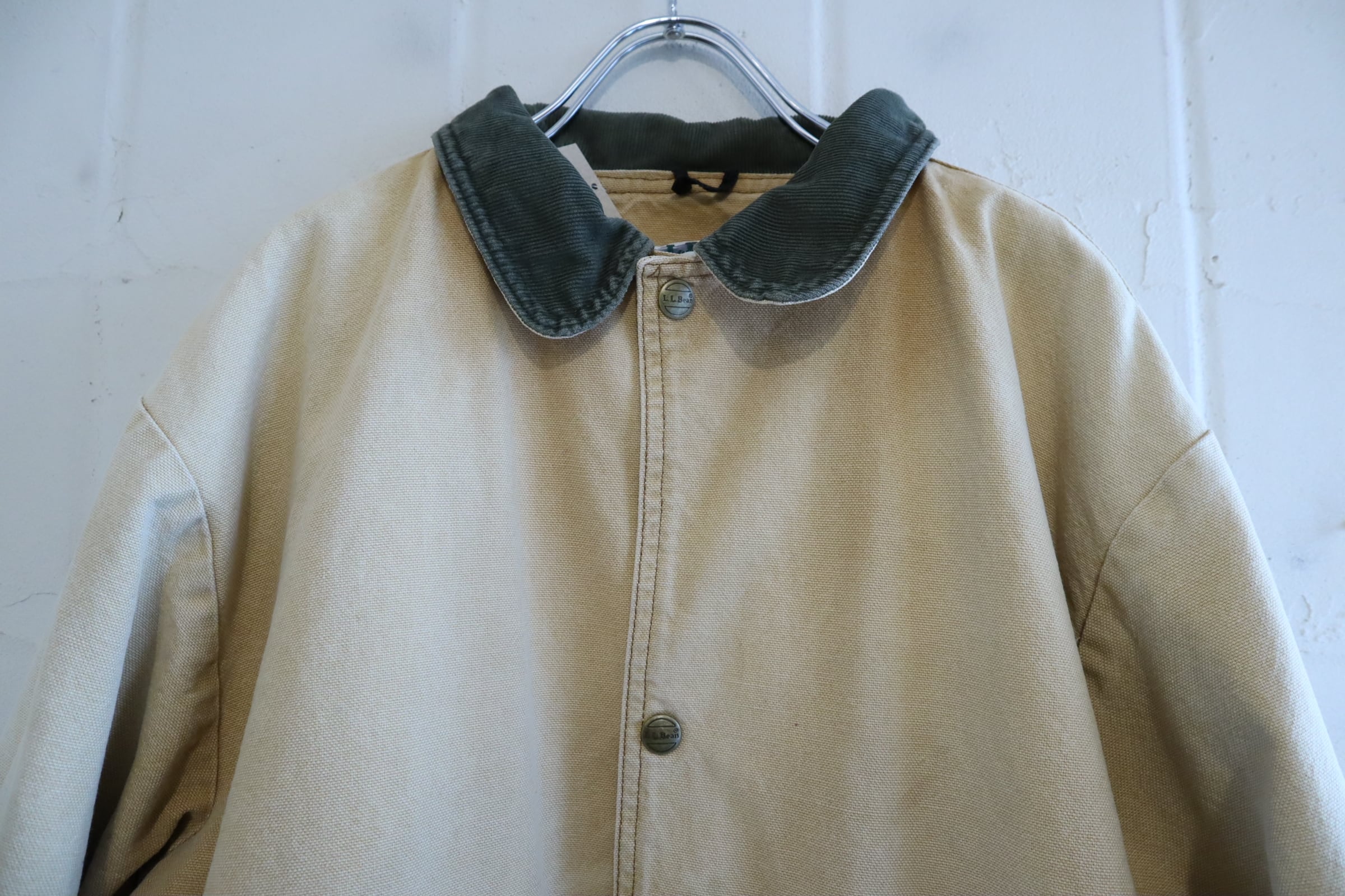 L.L.Bean beige×green corduroy collar hunting jacket [l-4998]