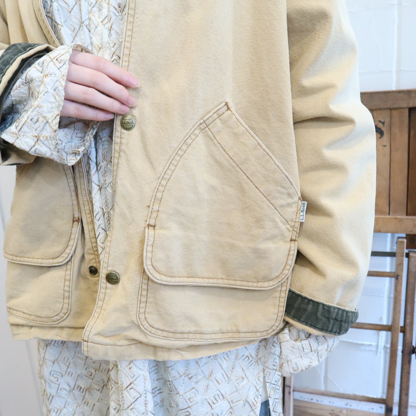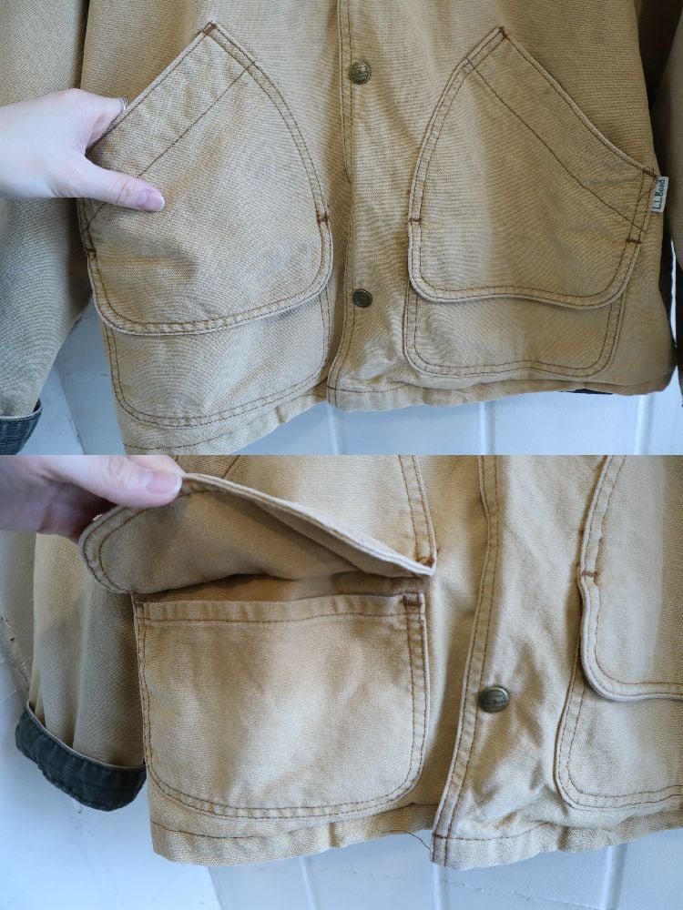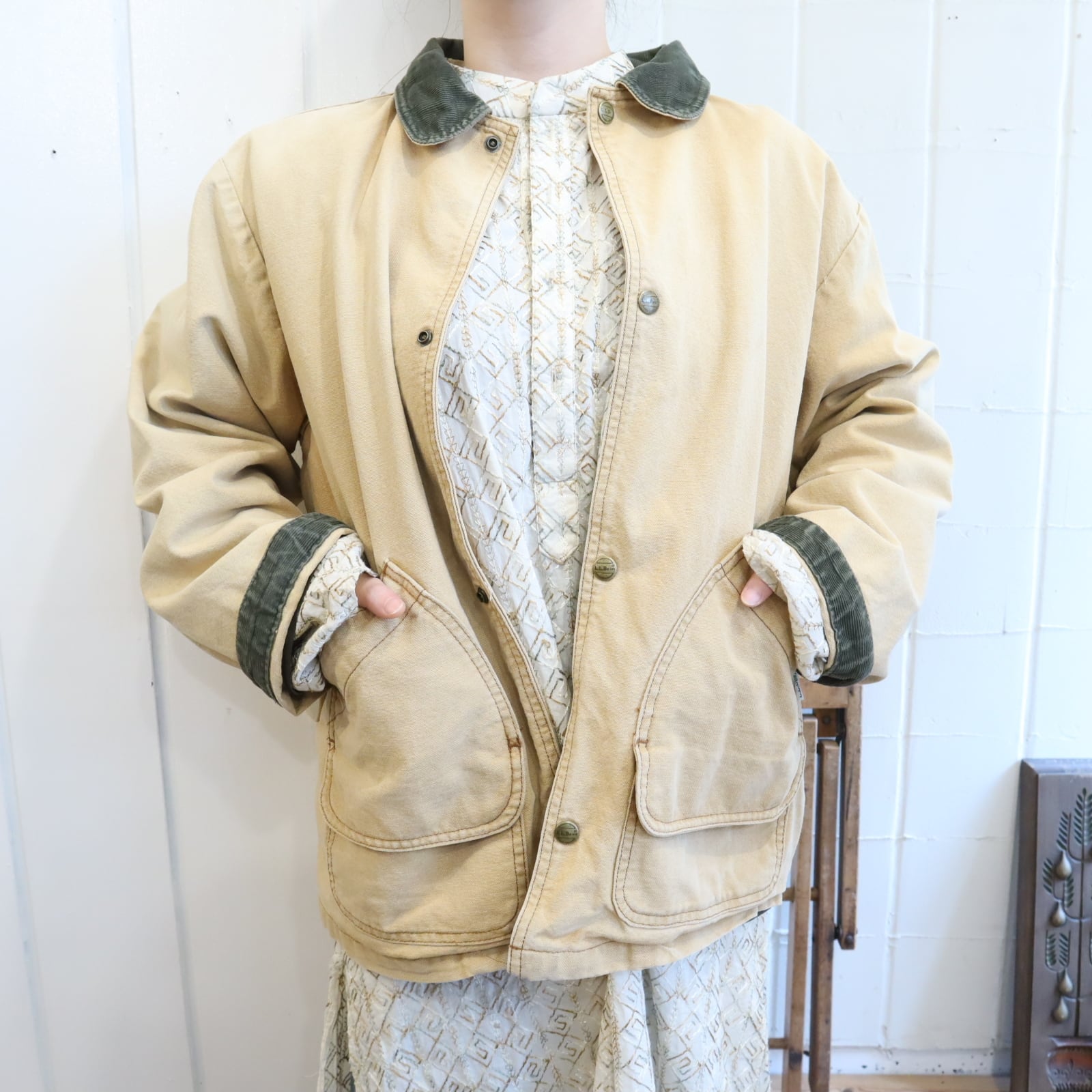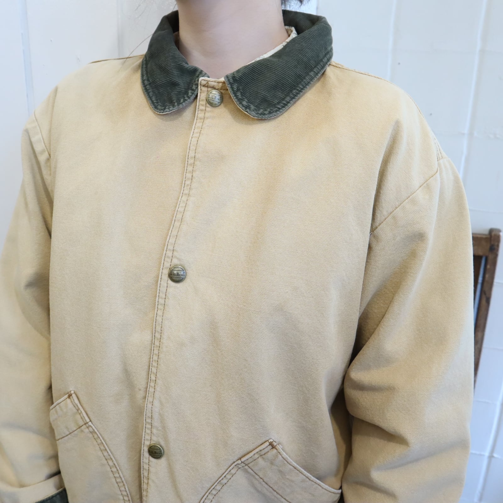 L.L.Bean beige×green corduroy collar hunting jacket [l-4998]