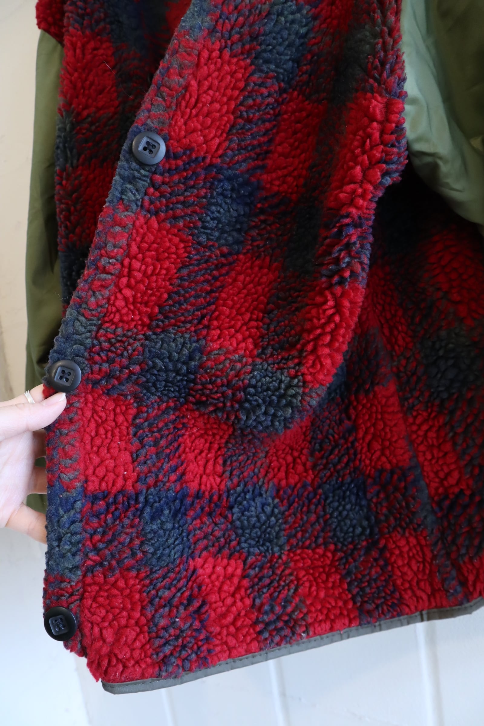 ライナーに毛羽立ちや毛玉、スナップボタンはカチッととまりますが、ややゆるめです。