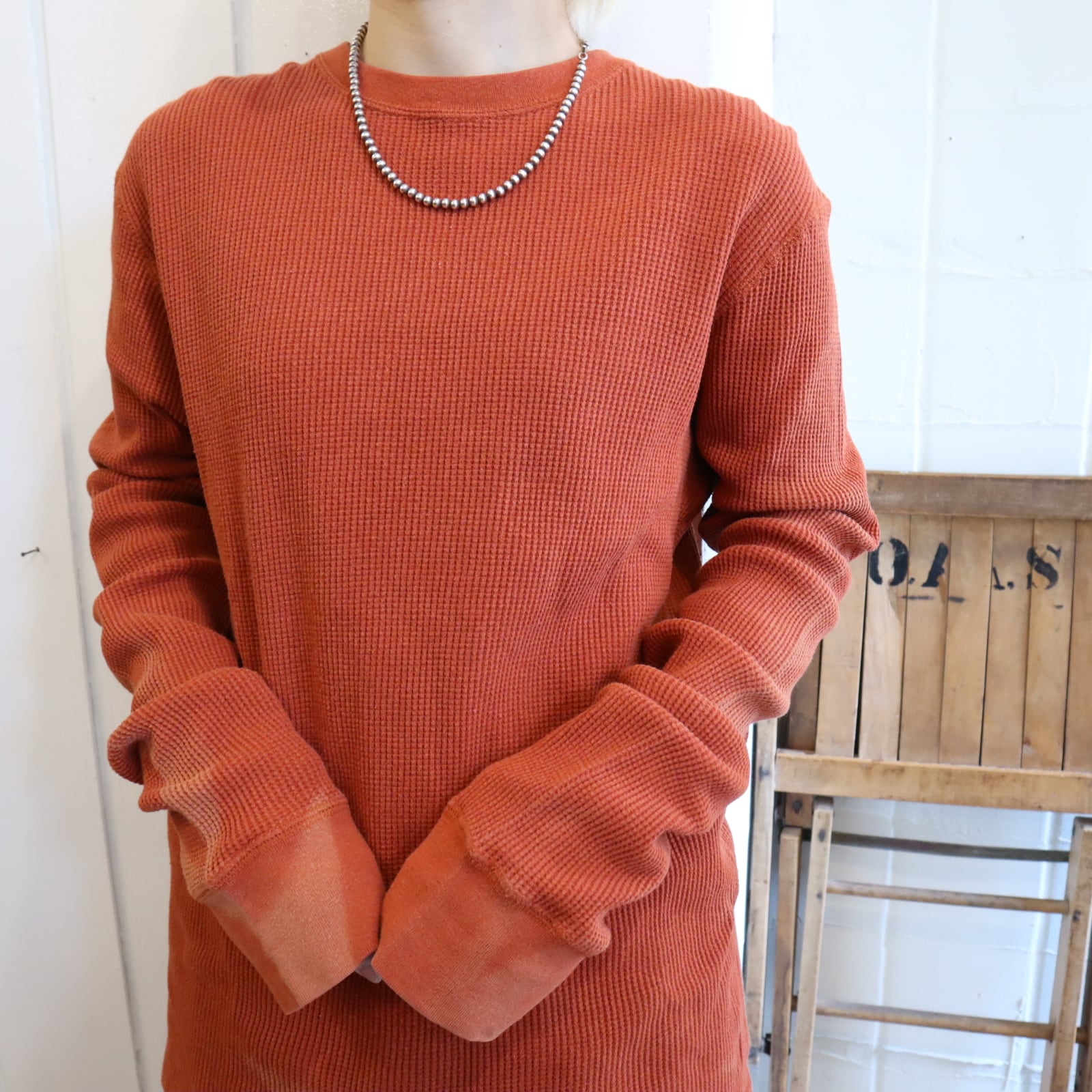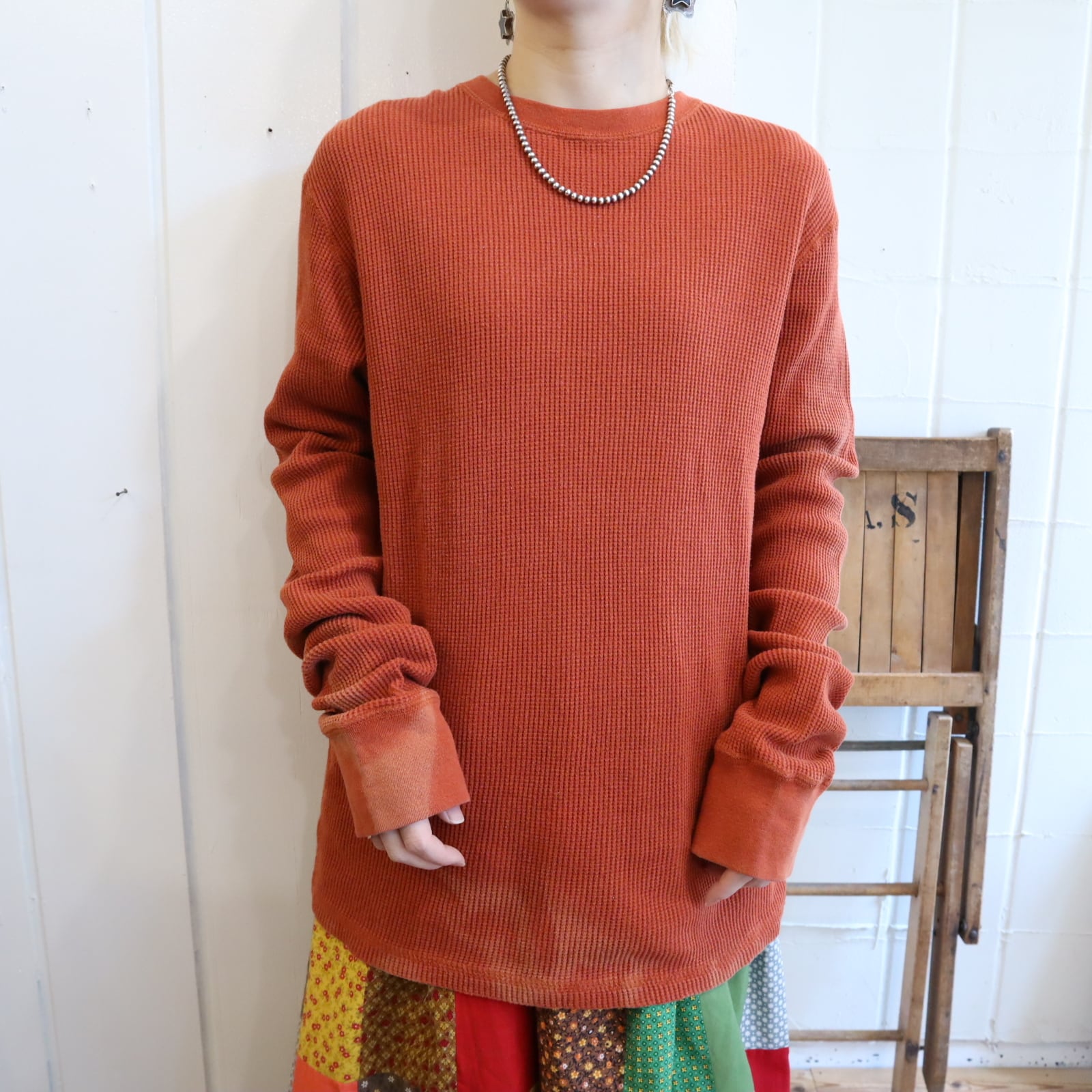 レンガのような絶妙なお色味が可愛いサーマルトップス。