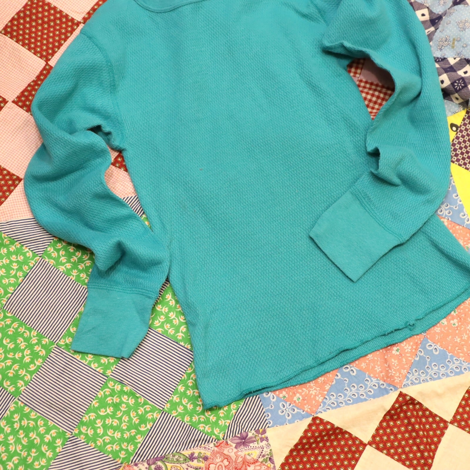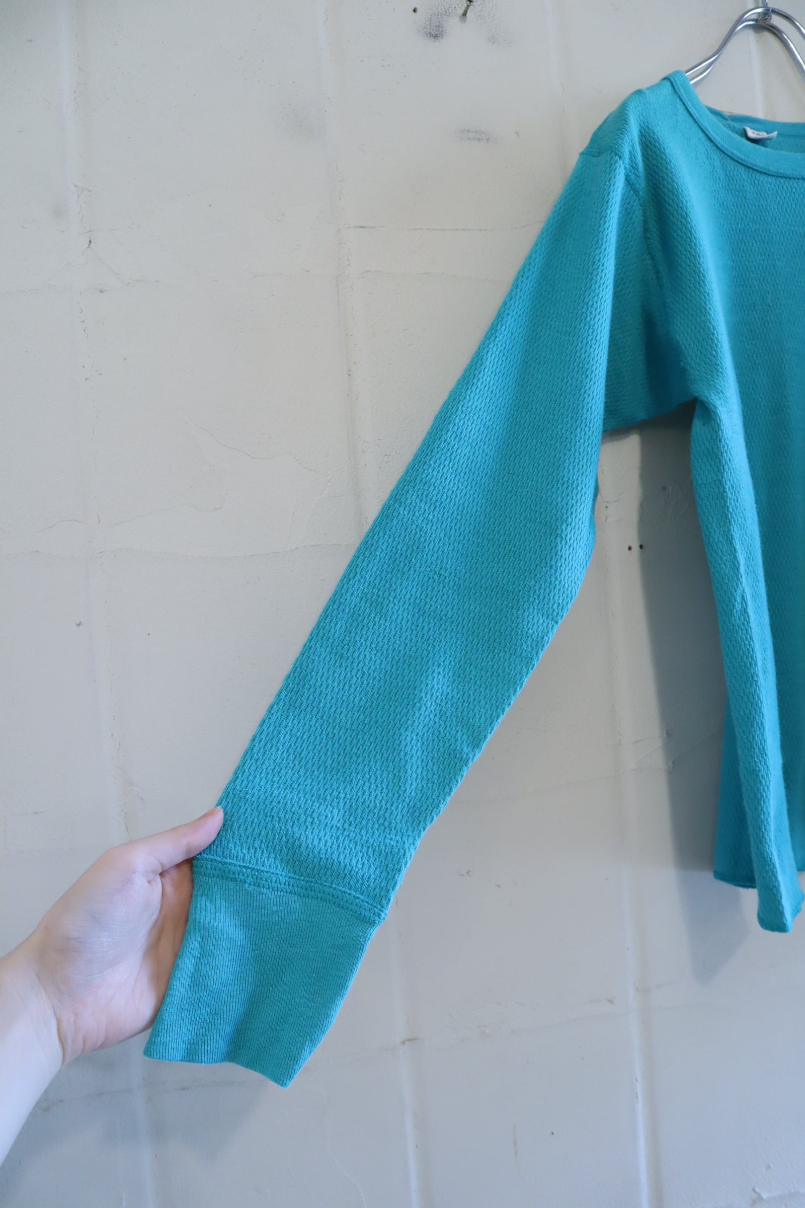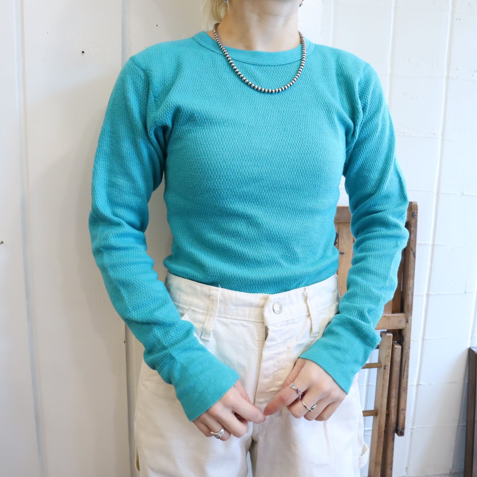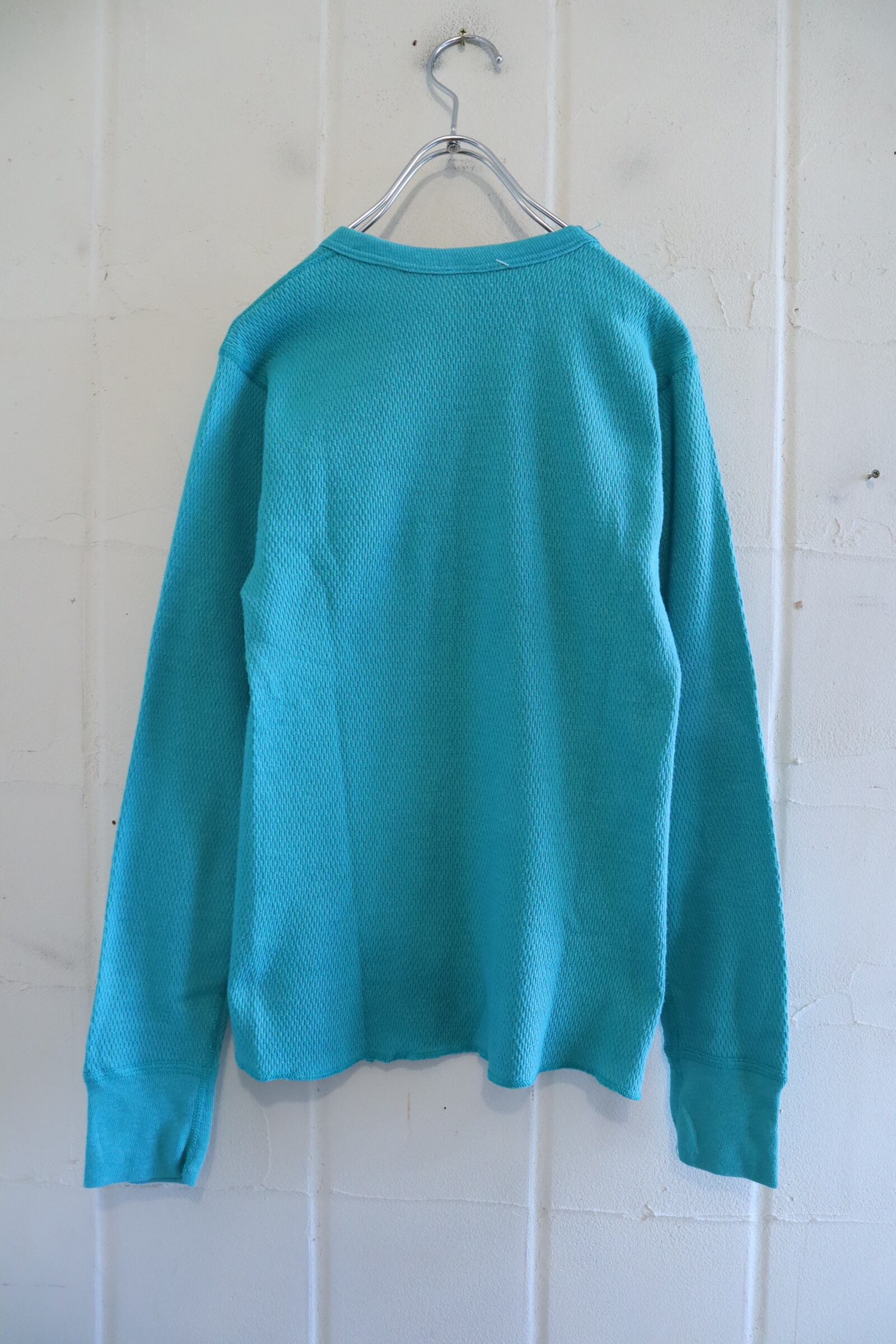80s-90s Hanes turquoiseblue plain waffle thermal tops [l-5010]