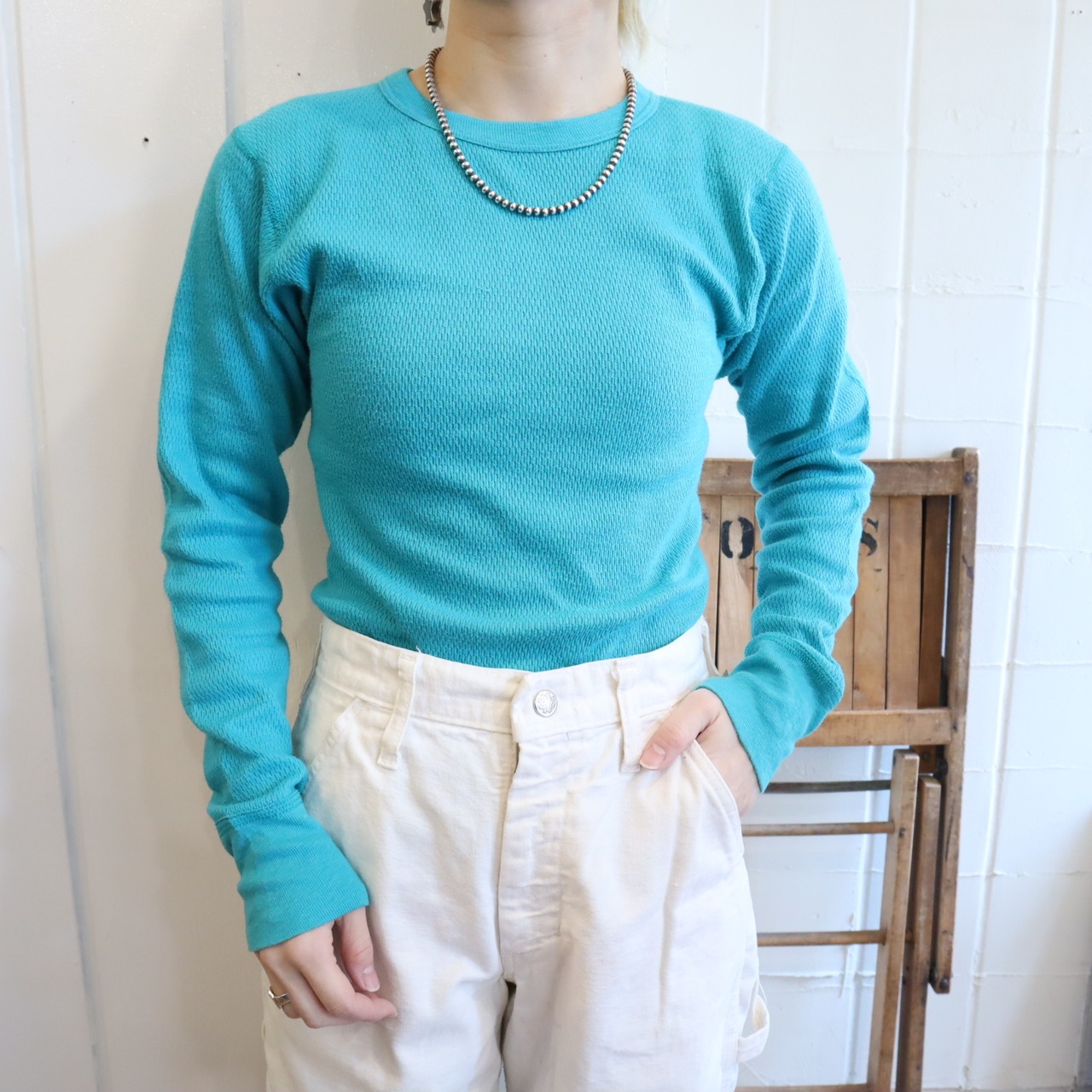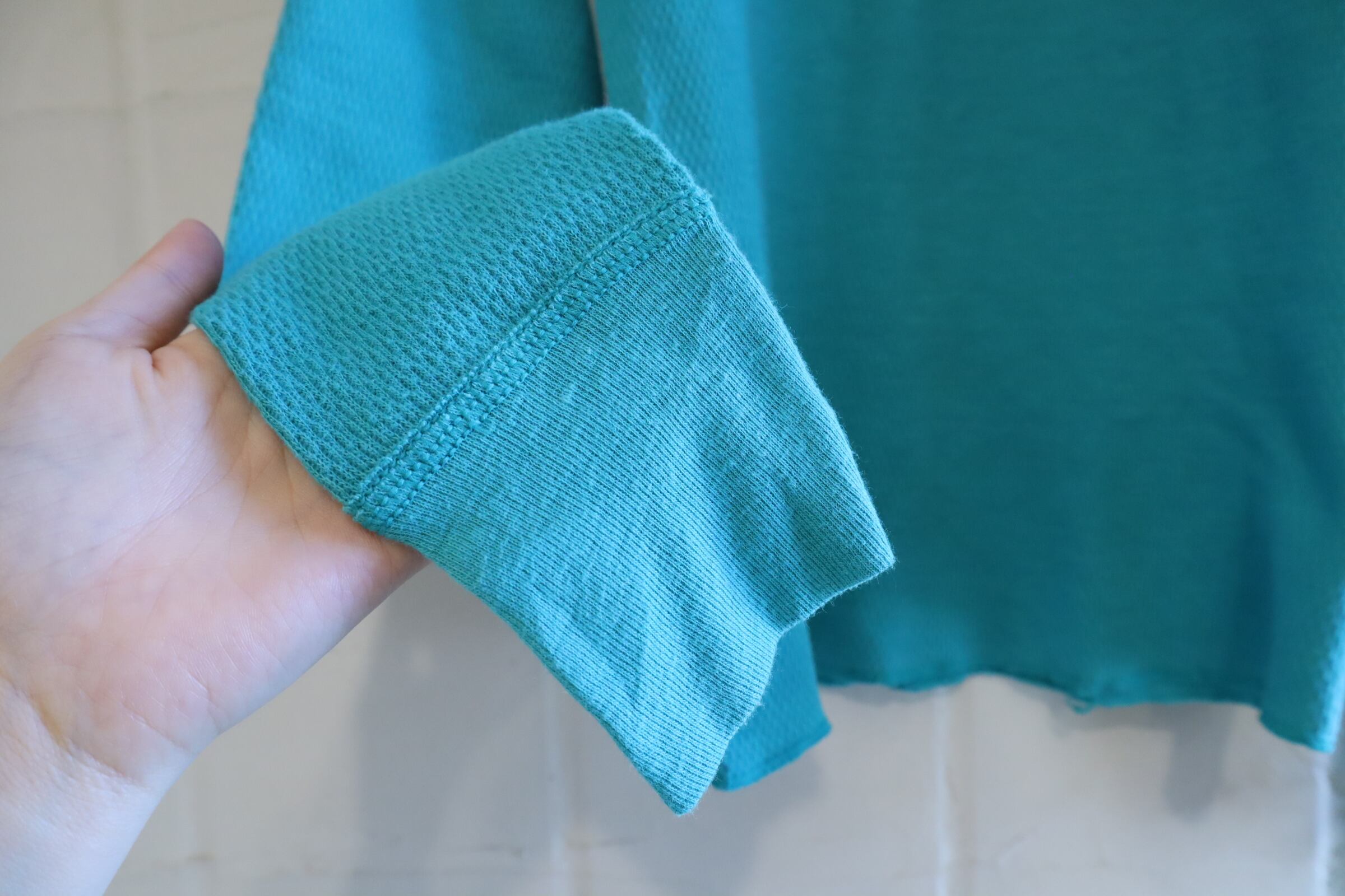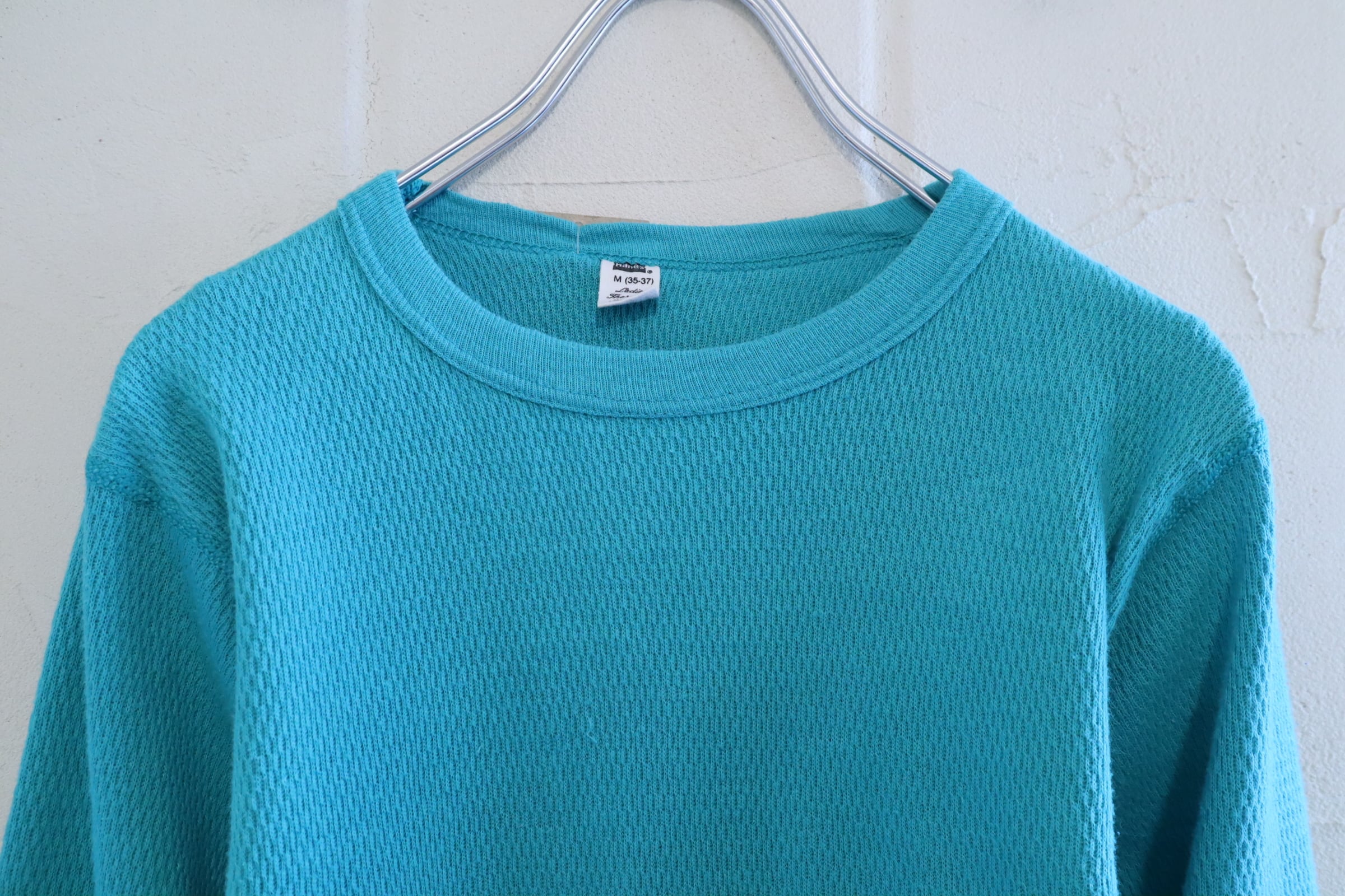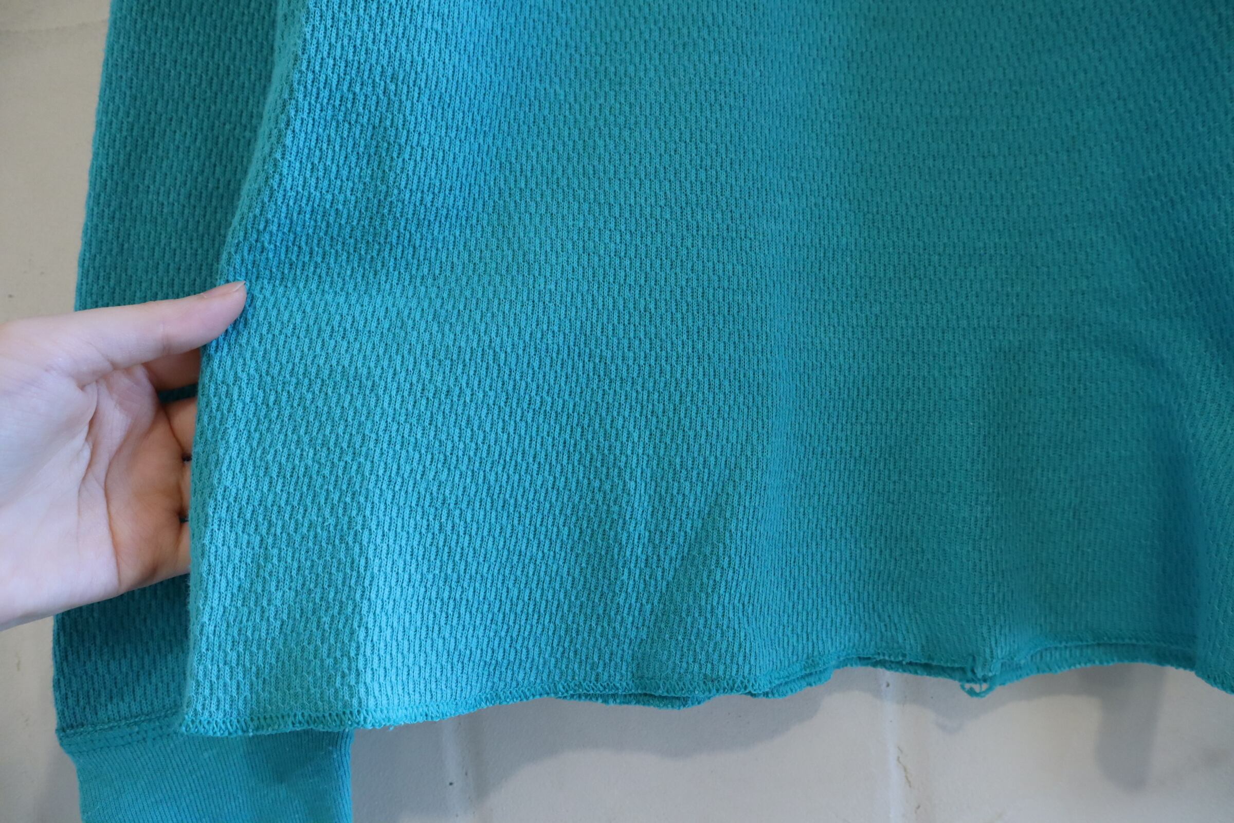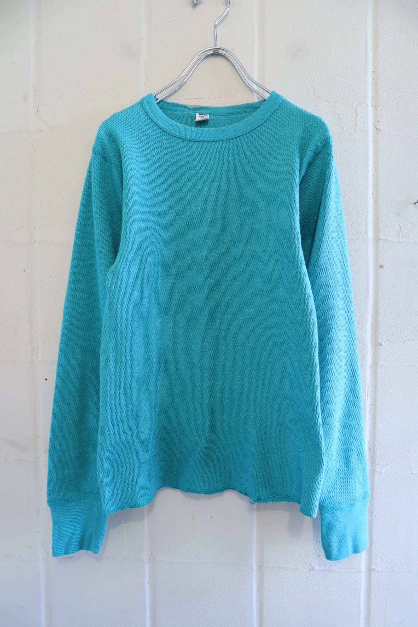 80s-90s Hanes turquoiseblue plain waffle thermal tops [l-5010]