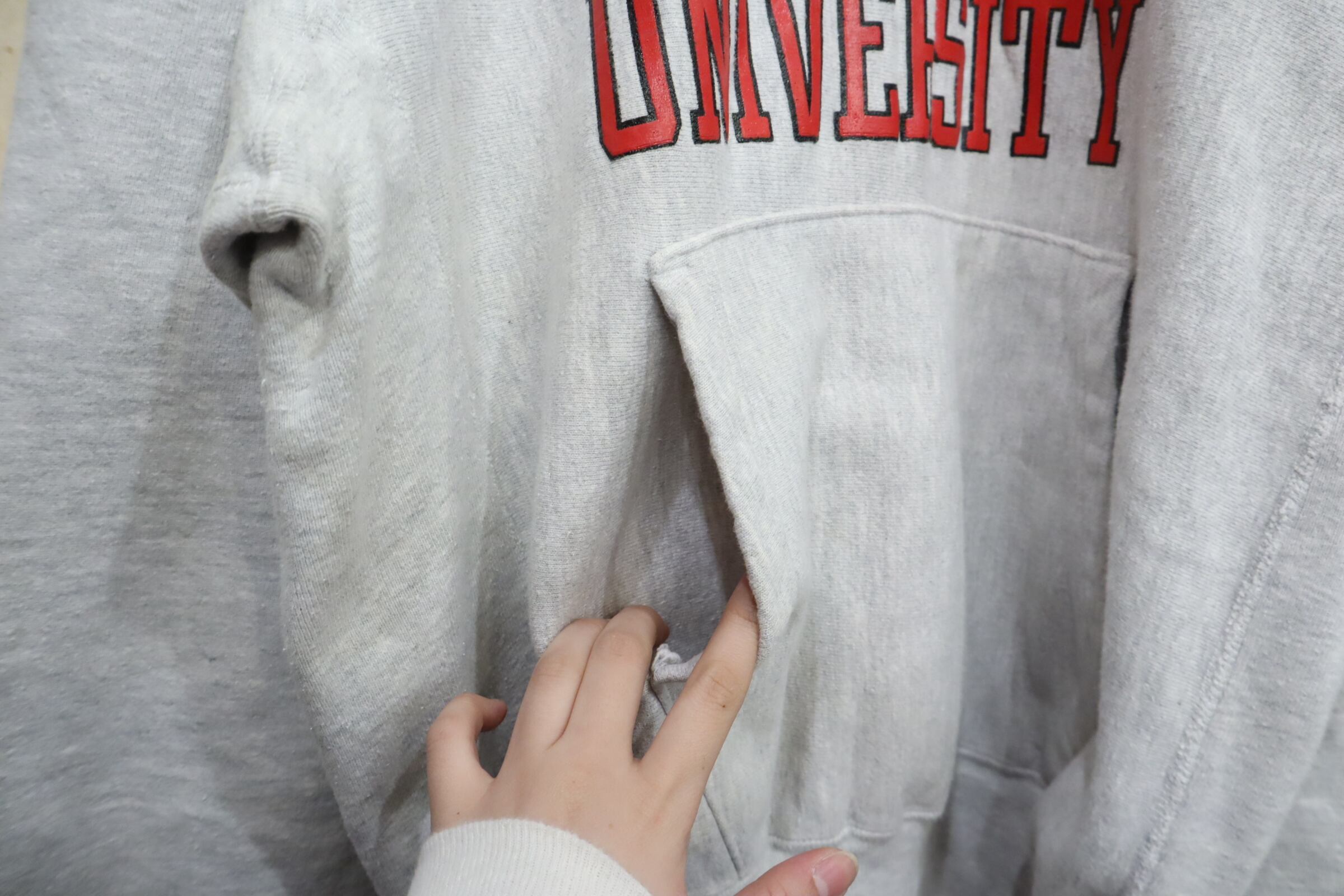 90s champion gray×red reverse weave hoodie sweat [k-5011]