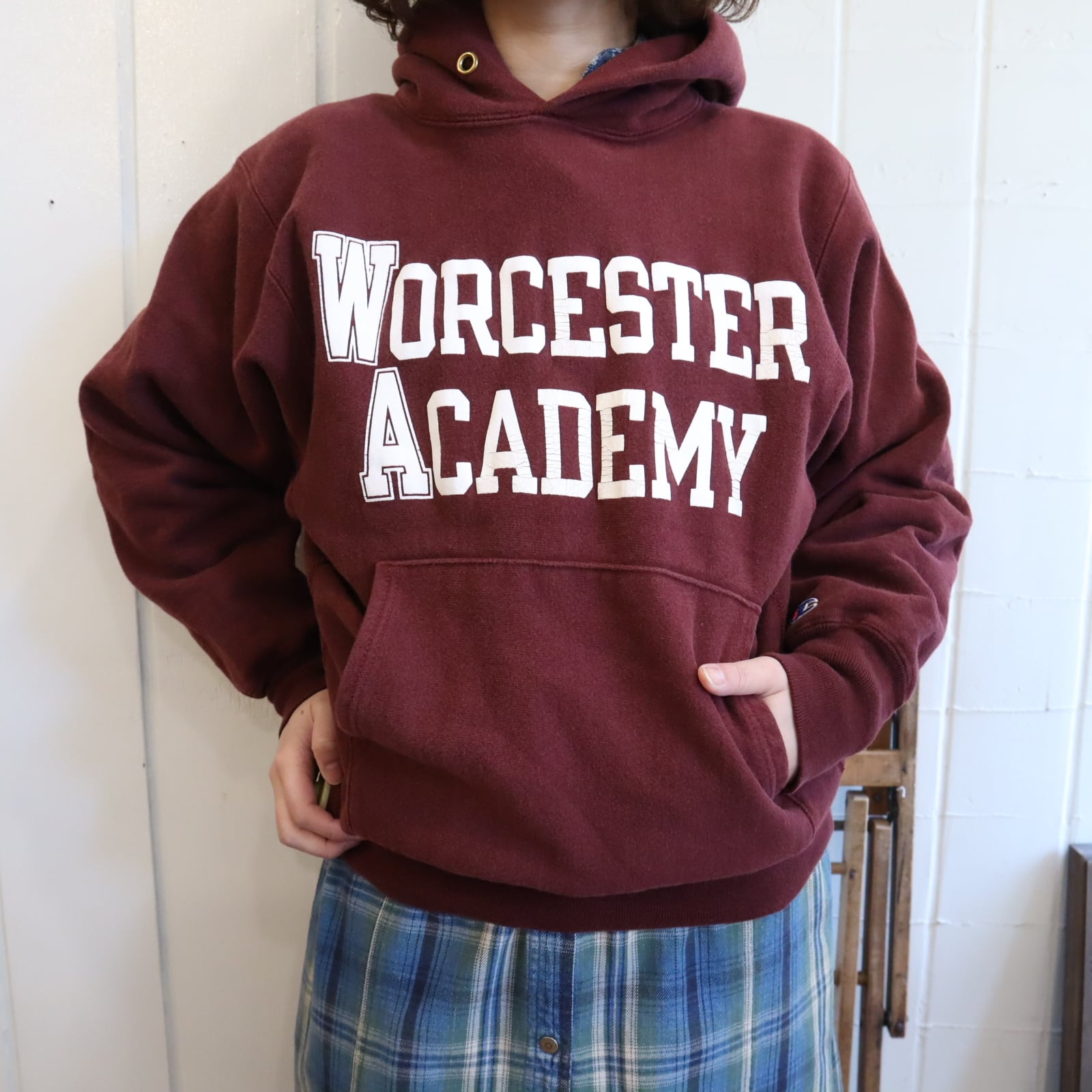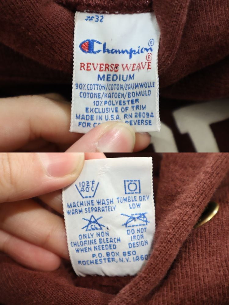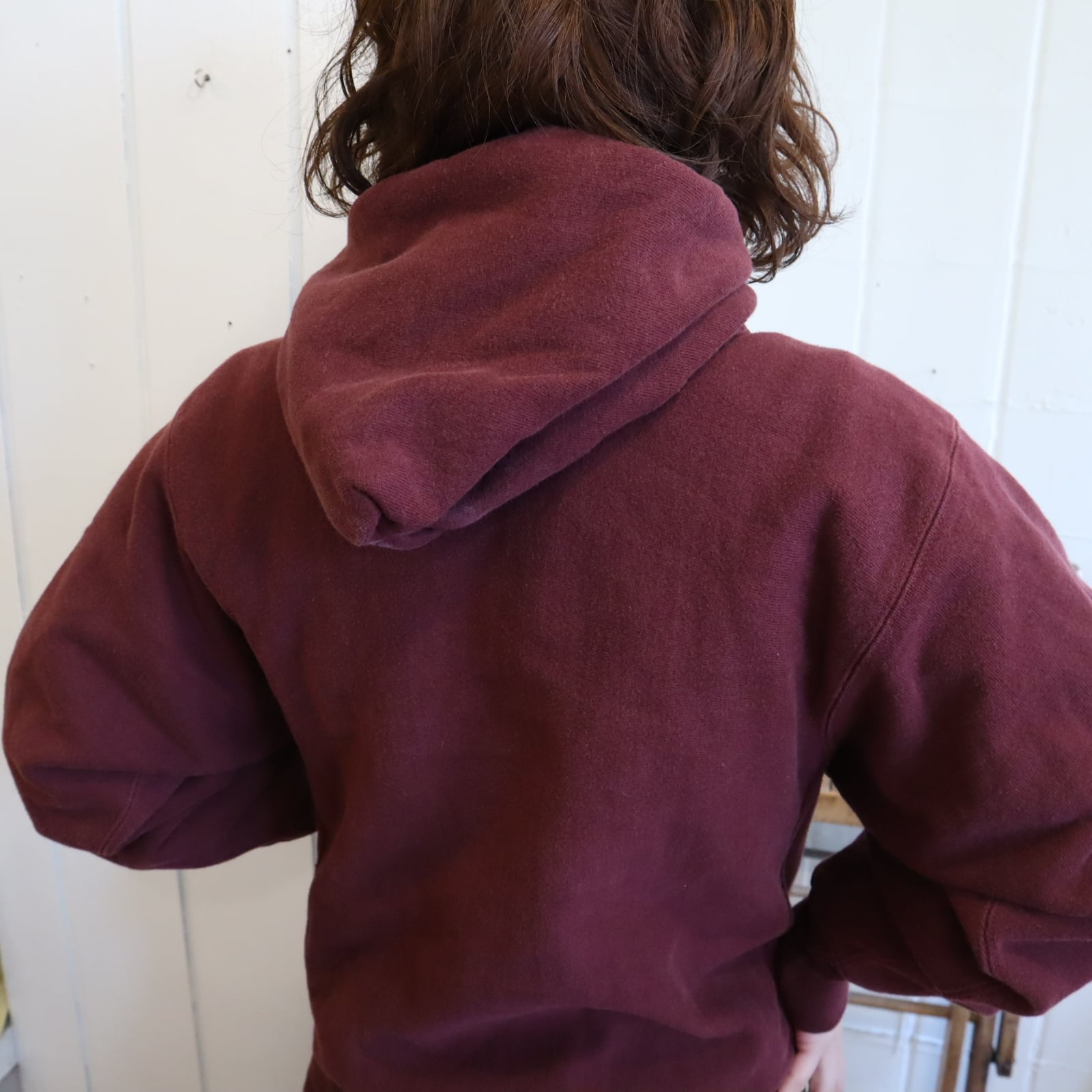 90s champion bordeaux×white reverse weave hoodie sweat [k-5012]