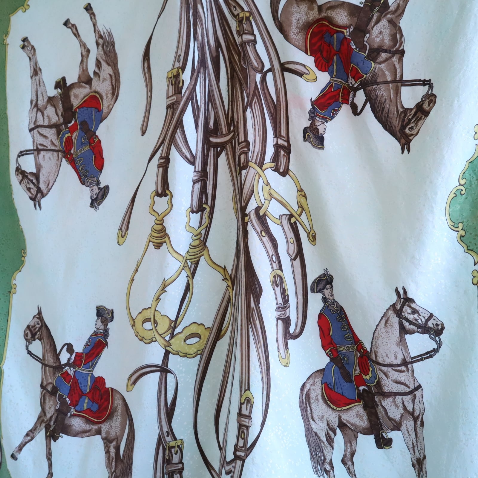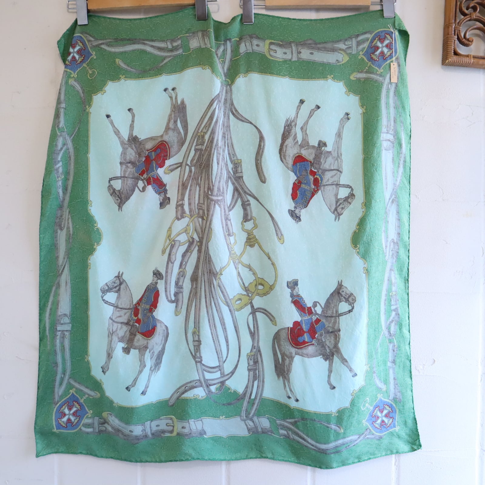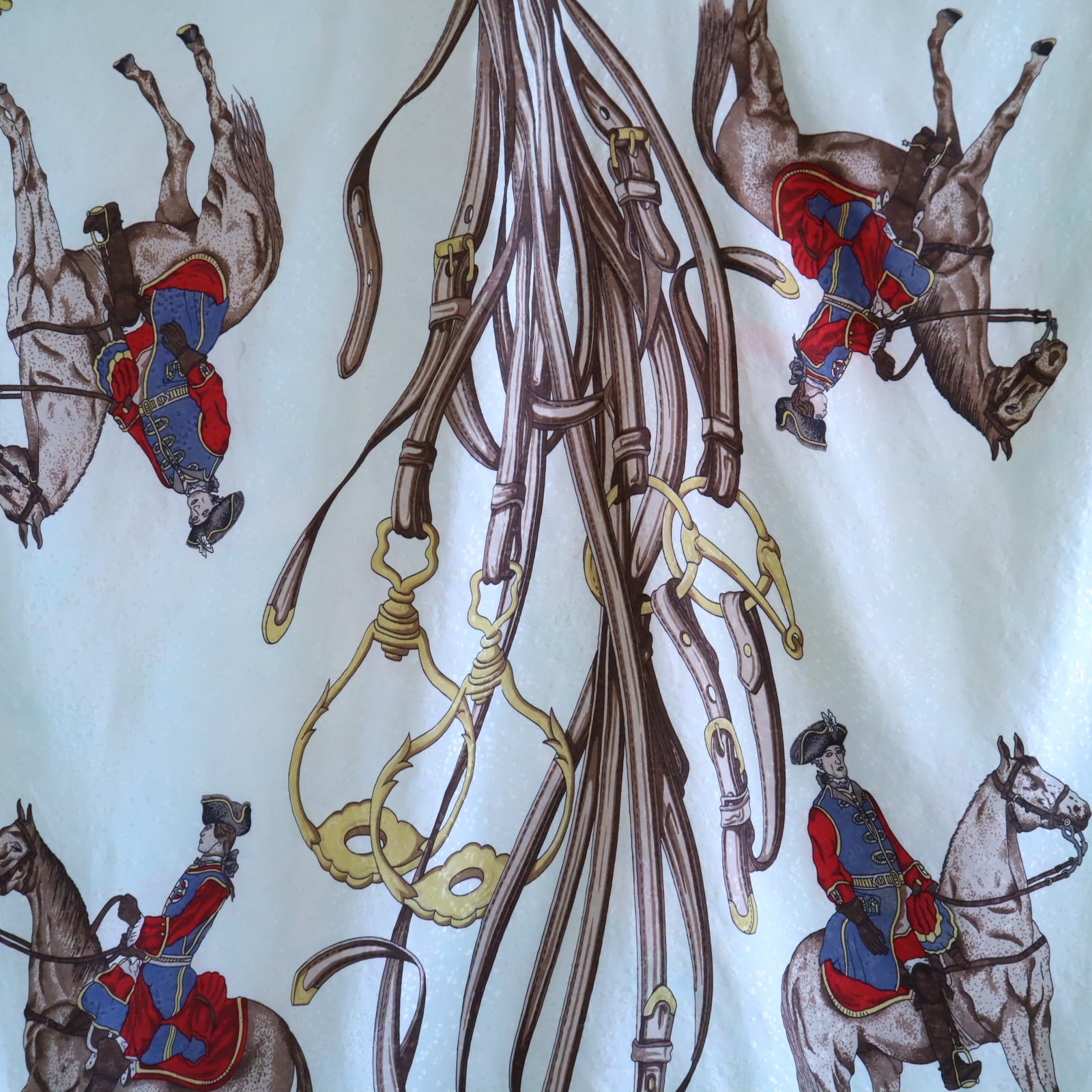 馬と馬に乗った軍人のような人の大胆なモチーフが素敵なスカーフ。