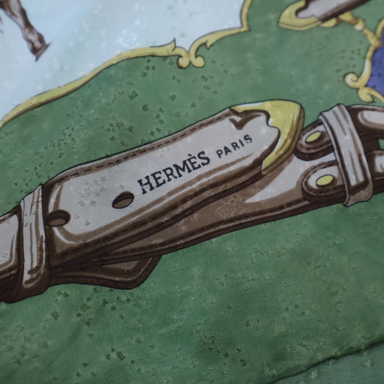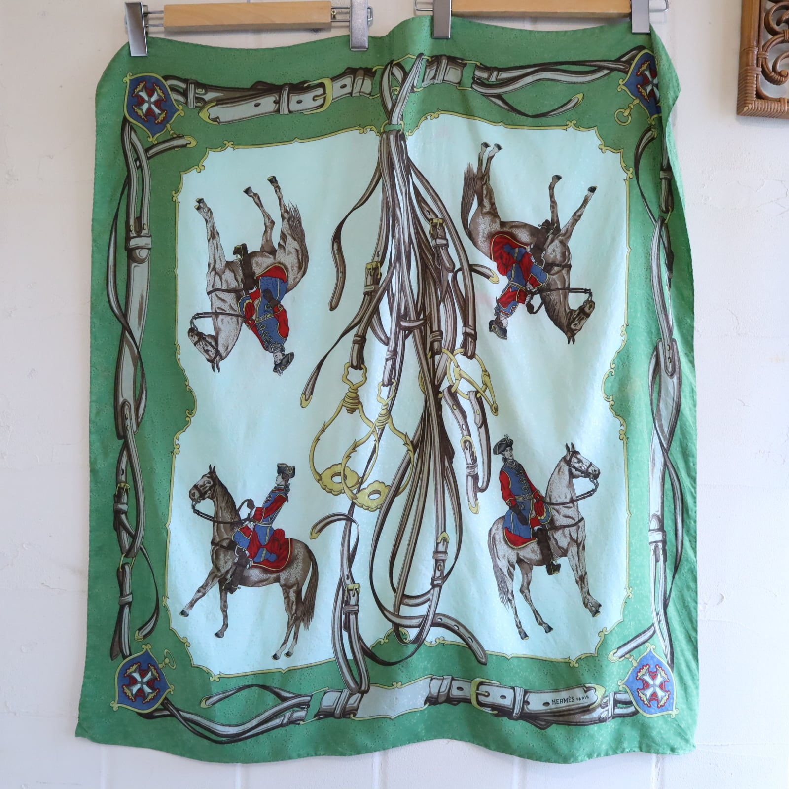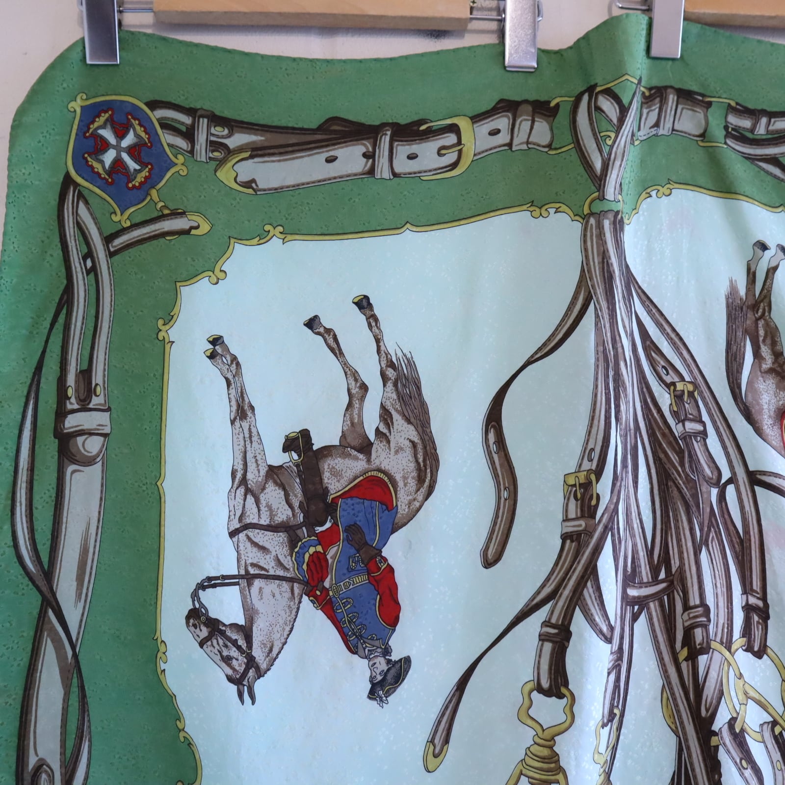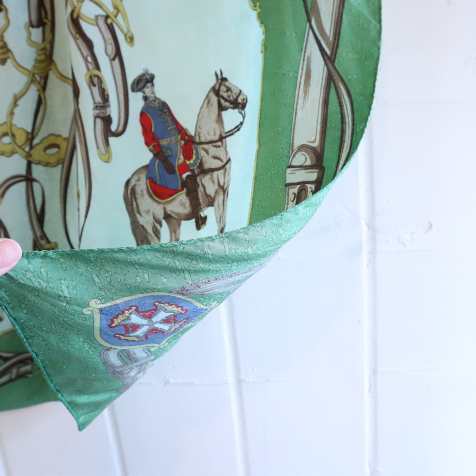 馬と馬に乗った軍人のような人の大胆なモチーフが素敵なスカーフ。