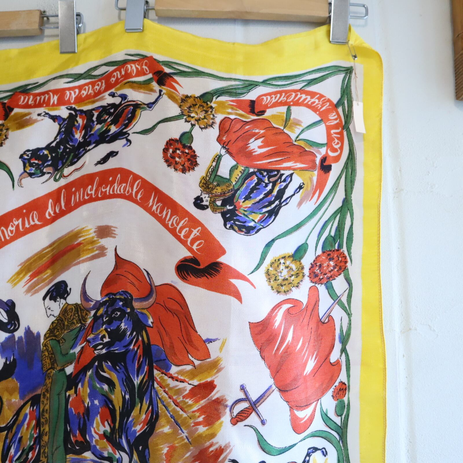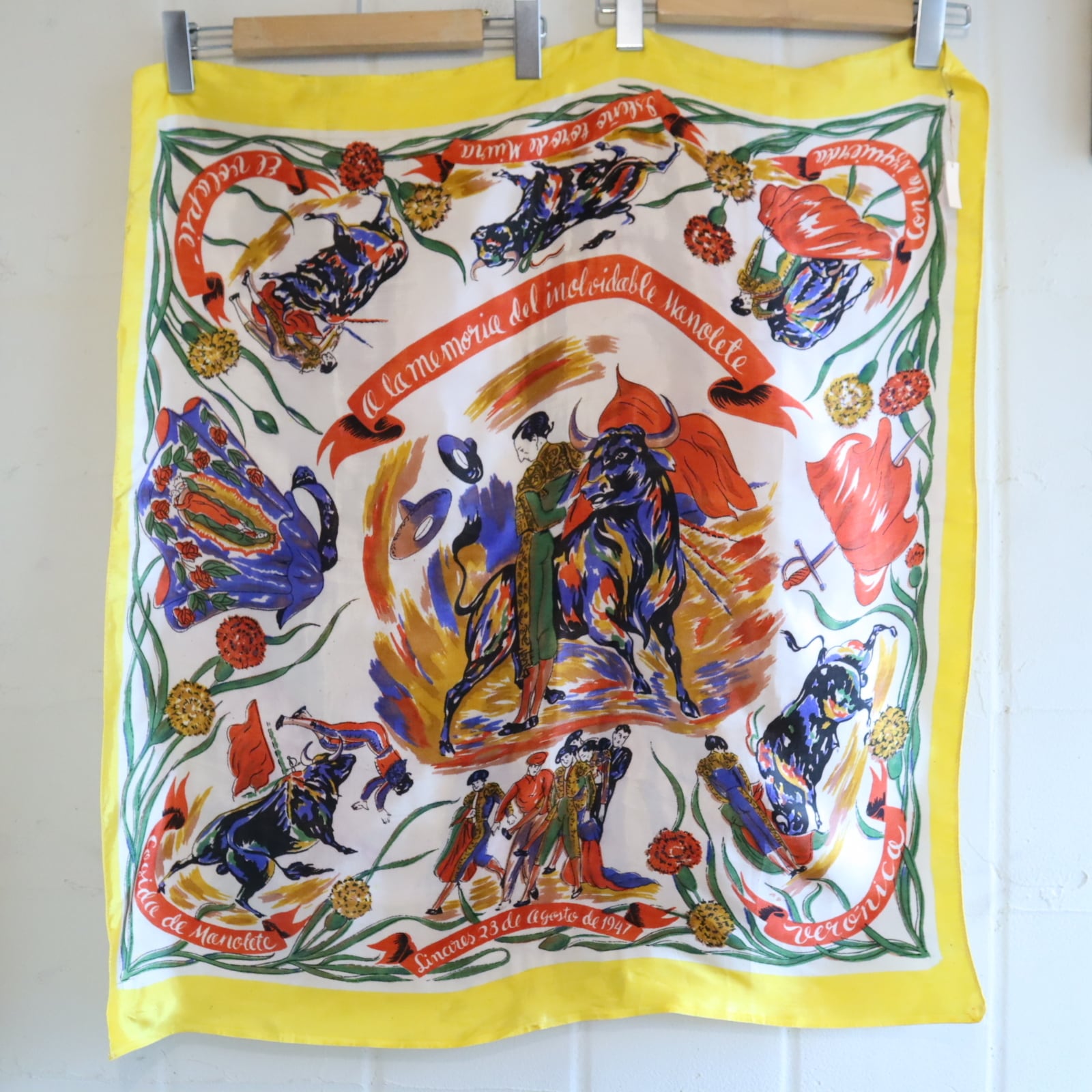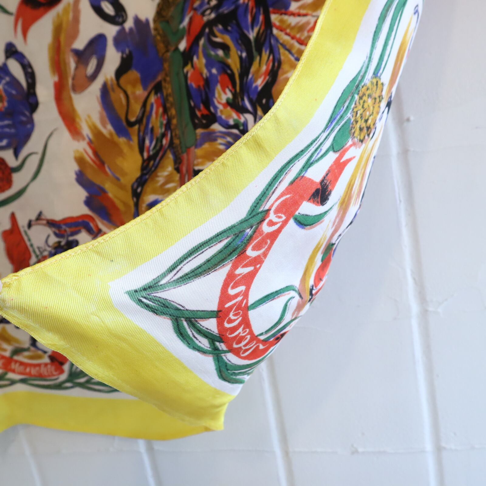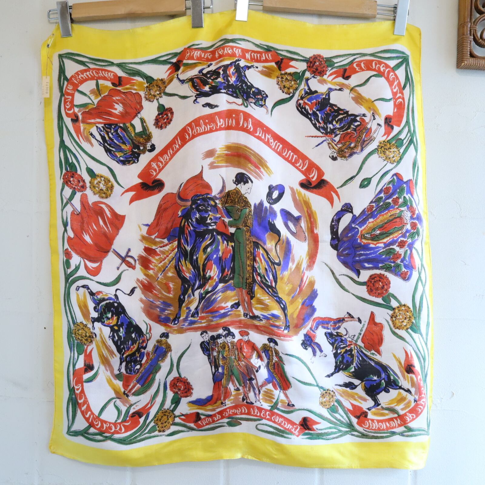 yellow×colorful rodeo motif vintage scarf [l-5014]