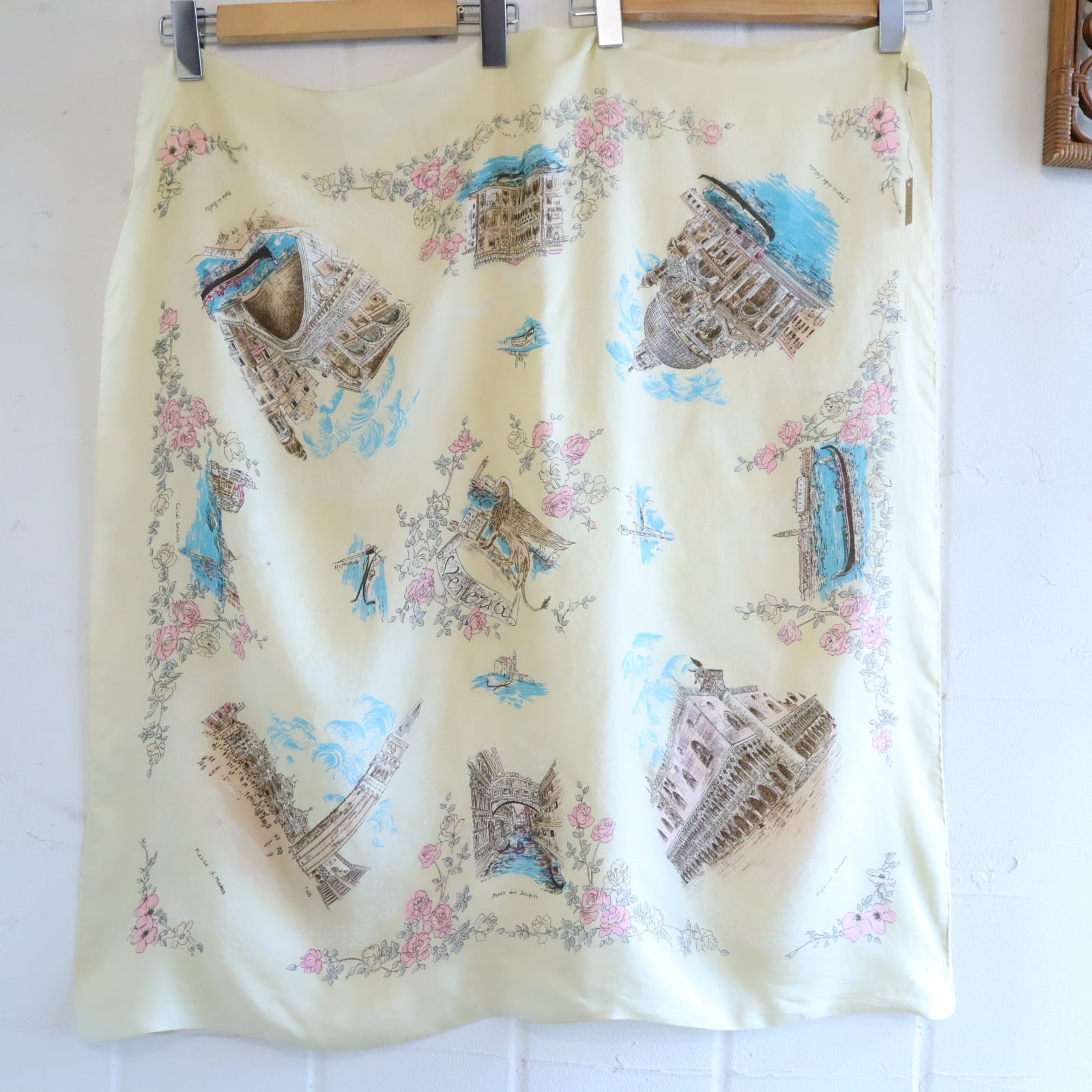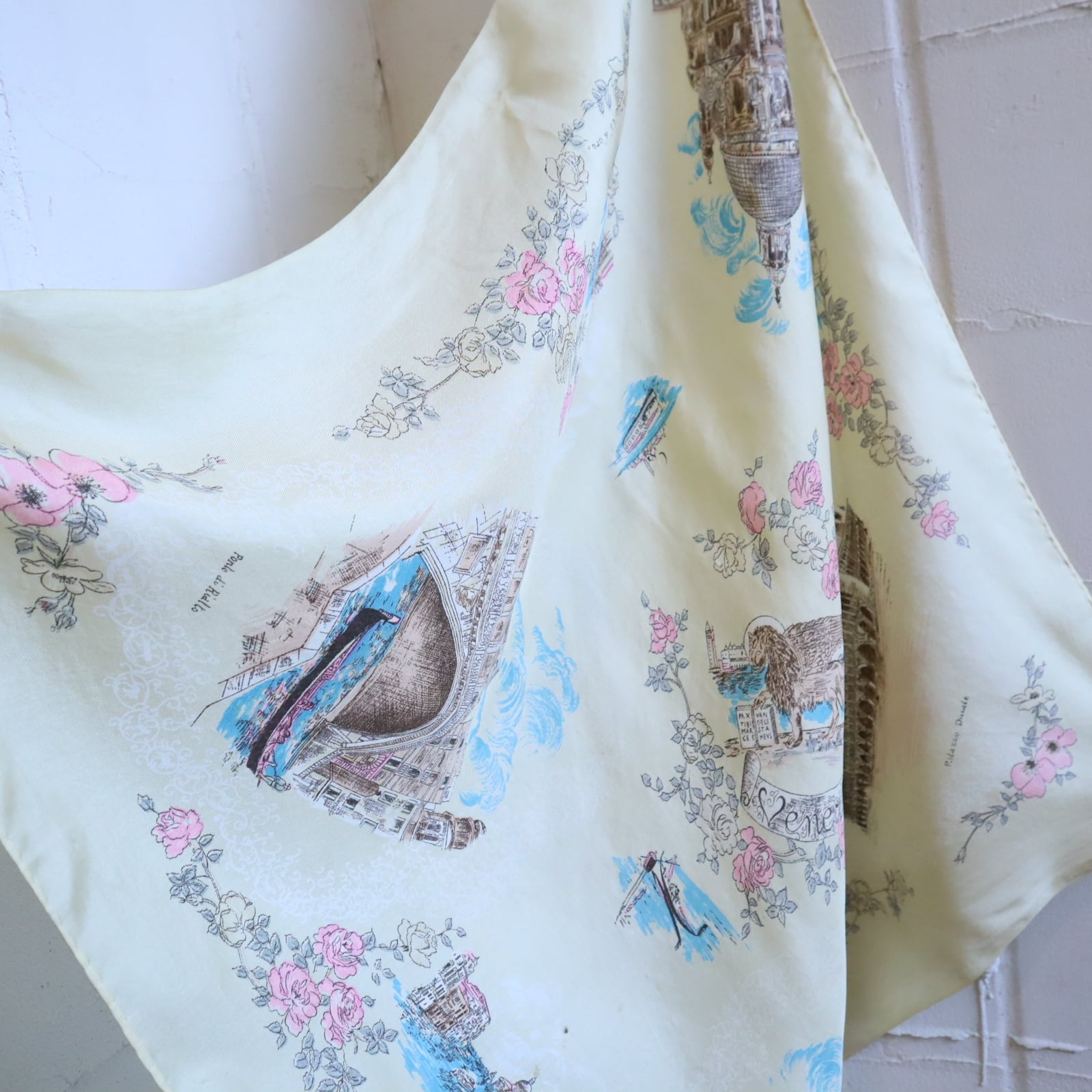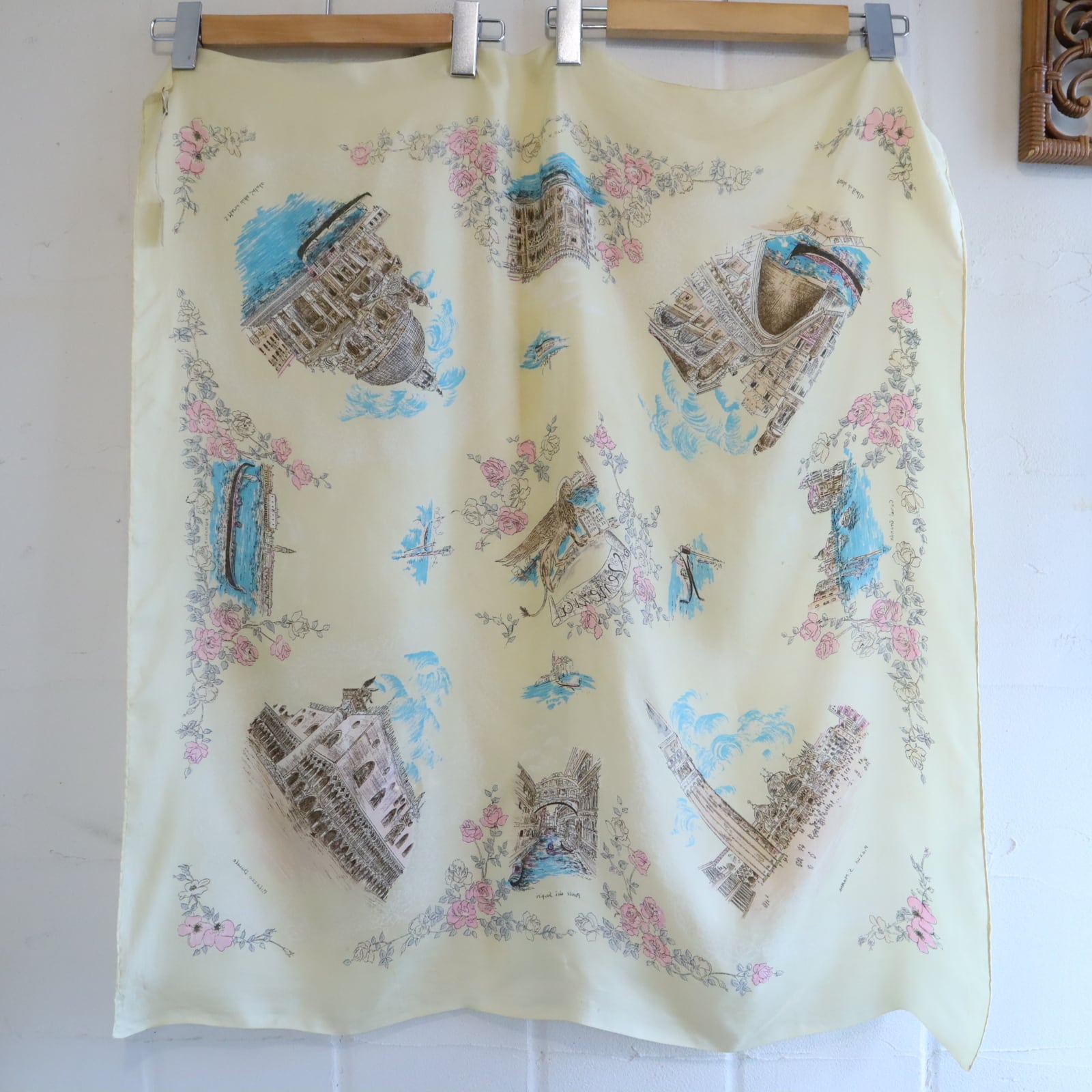 イタリアの風景がお洒落に表現されたビンテージスカーフです。