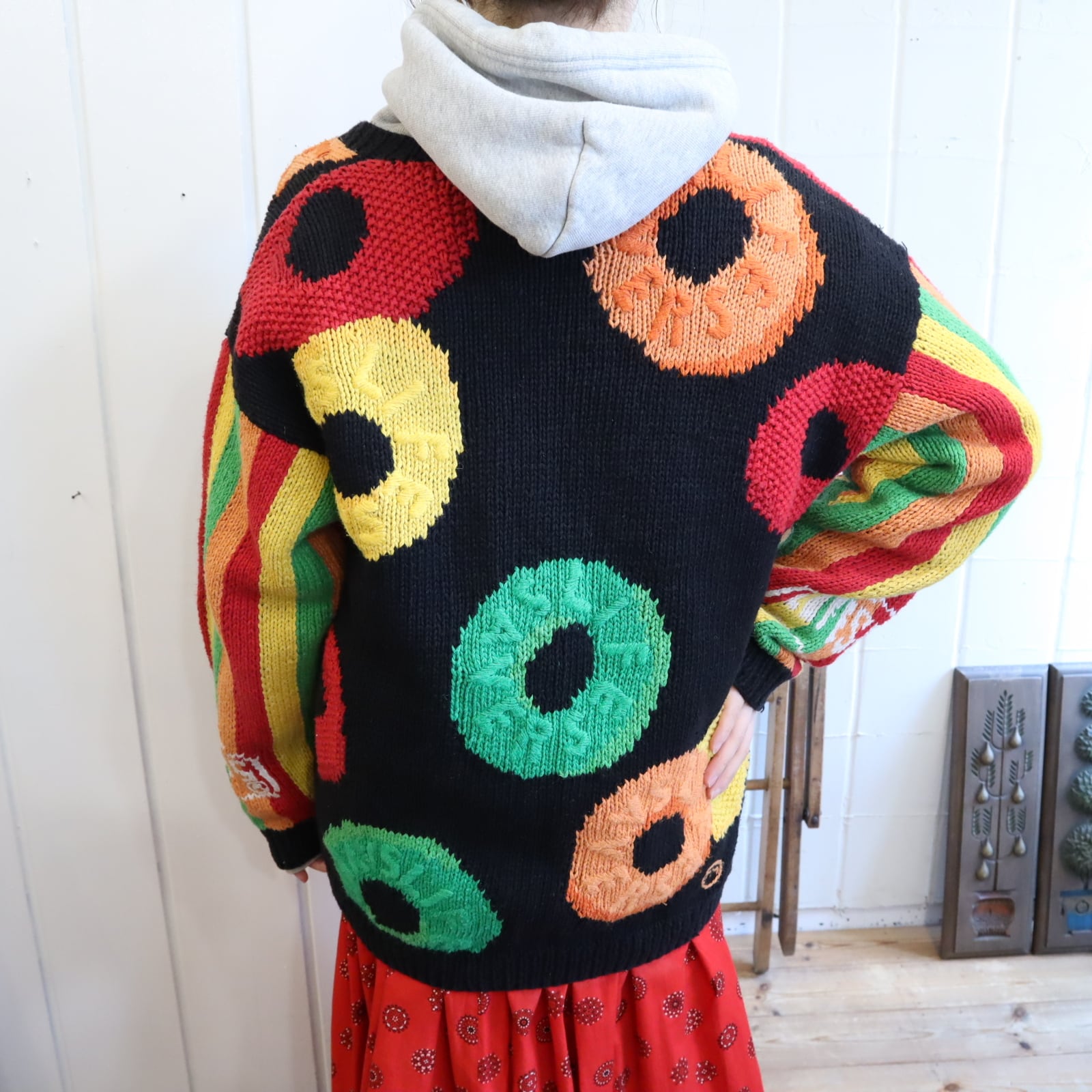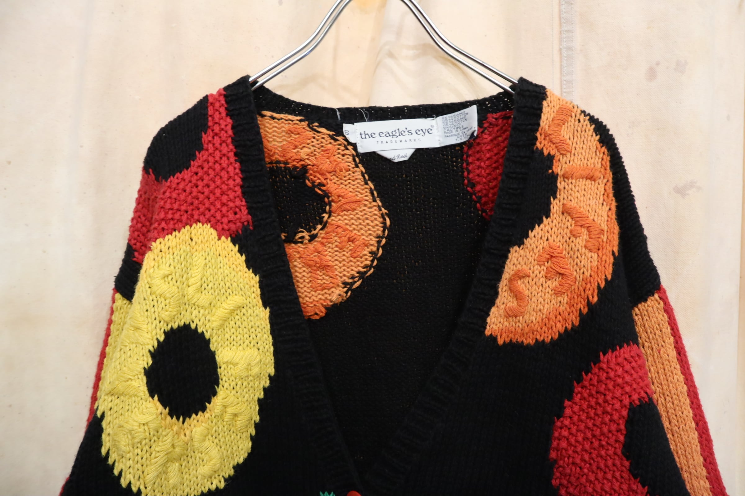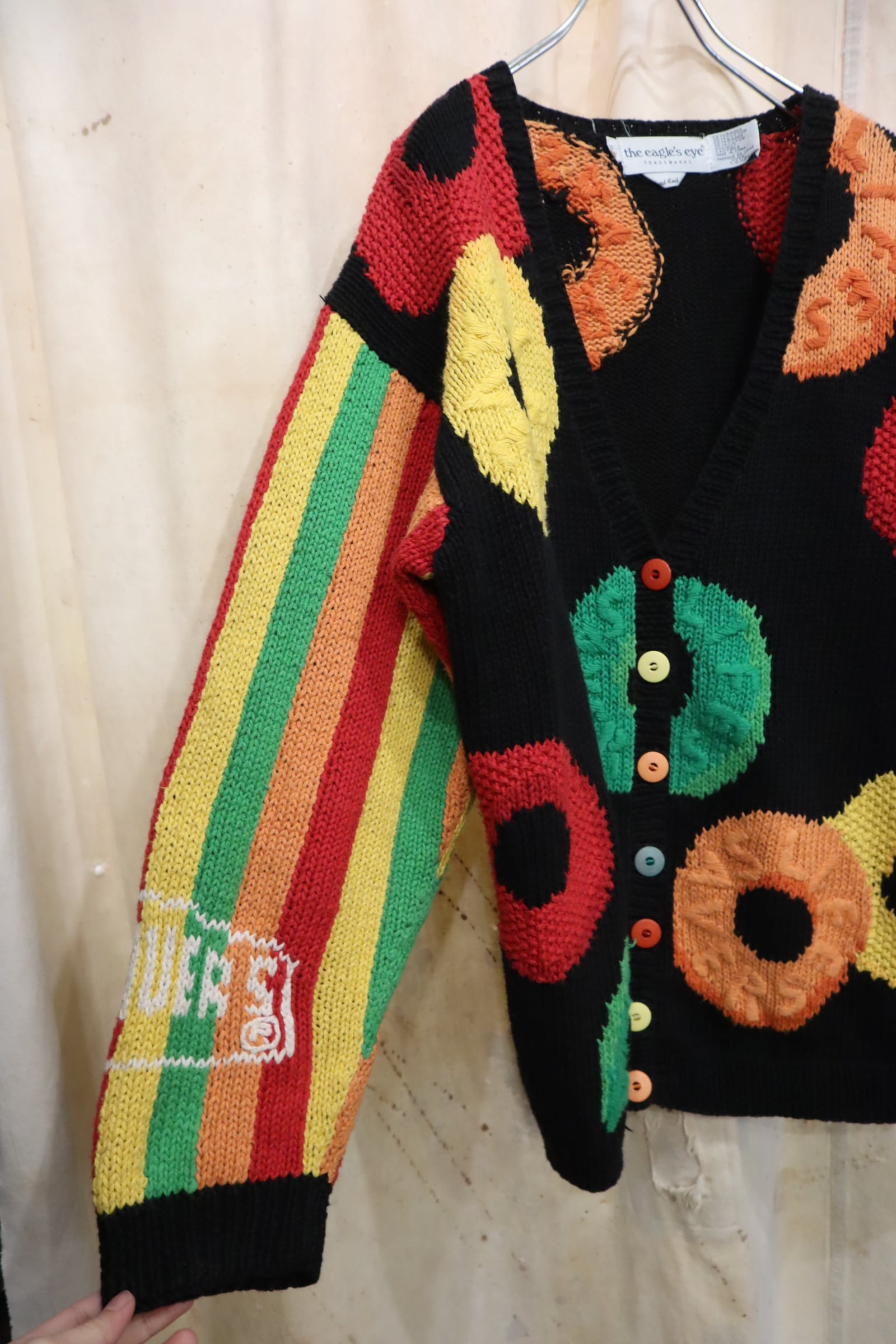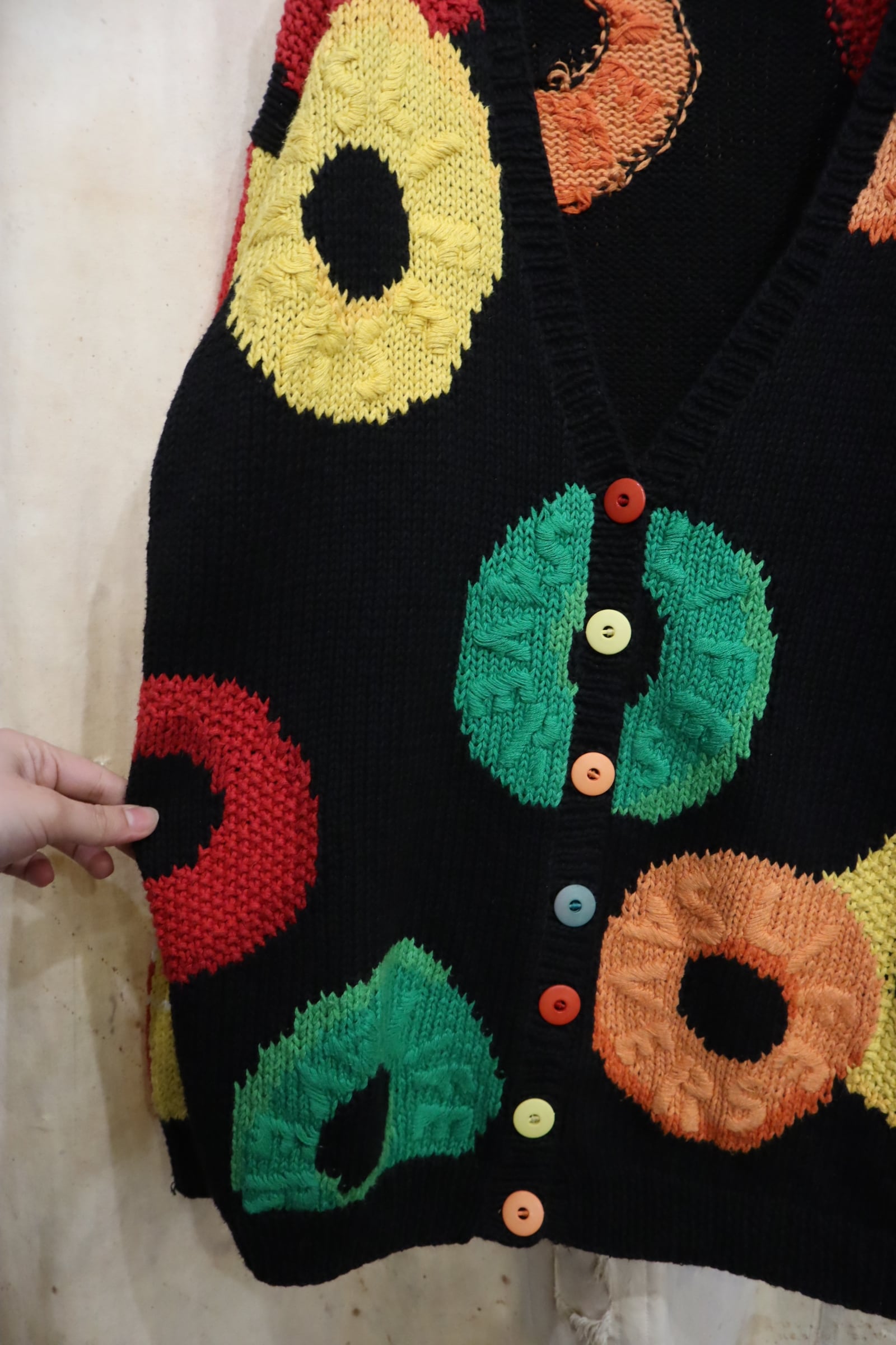 black×colorful candy pattern ramie cotton knit cardigan [l-5018]