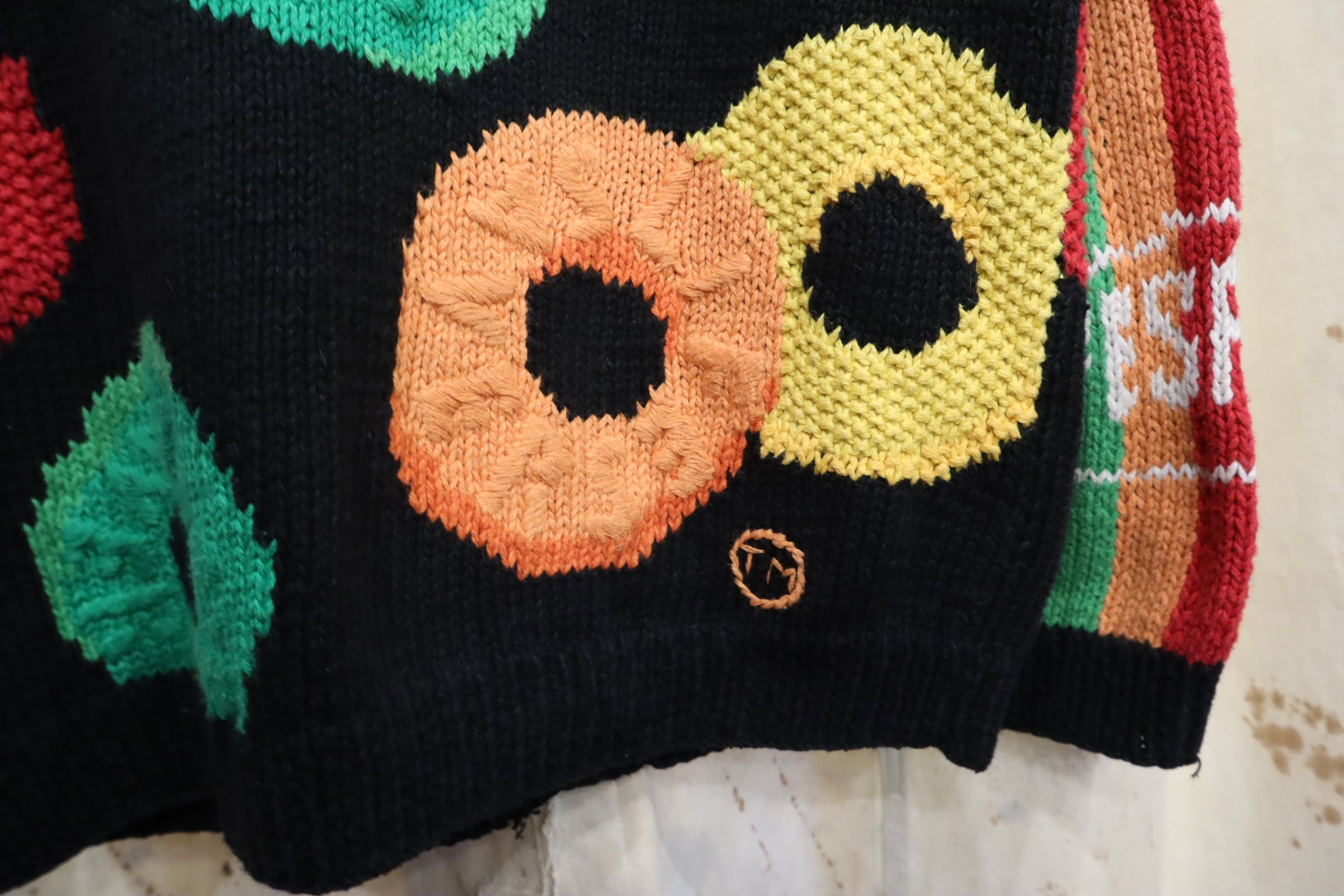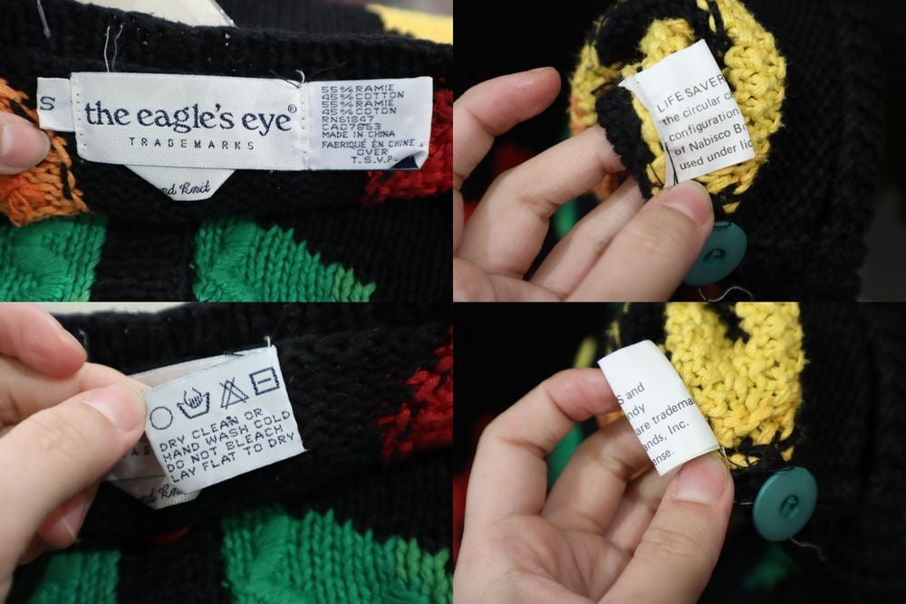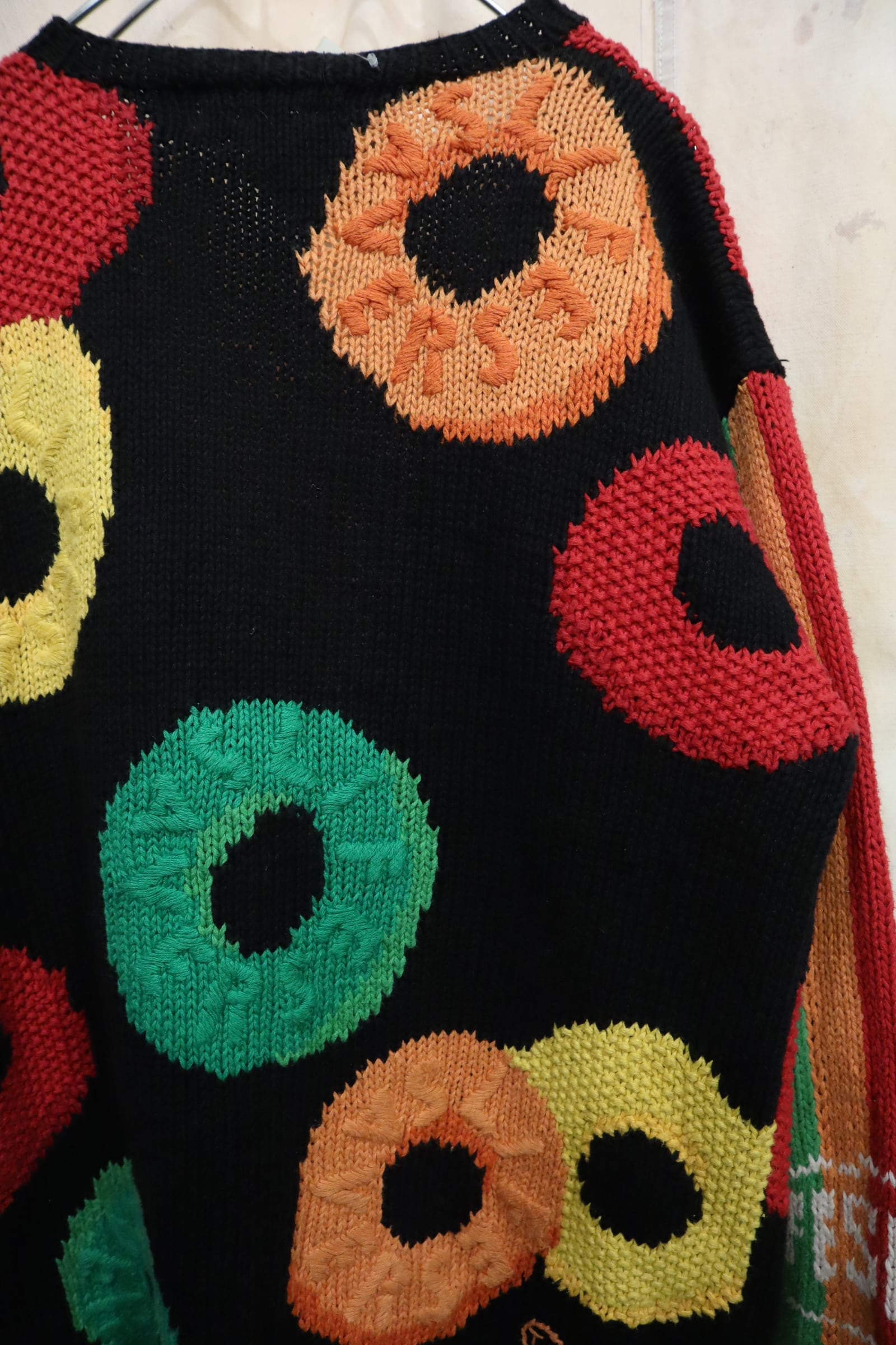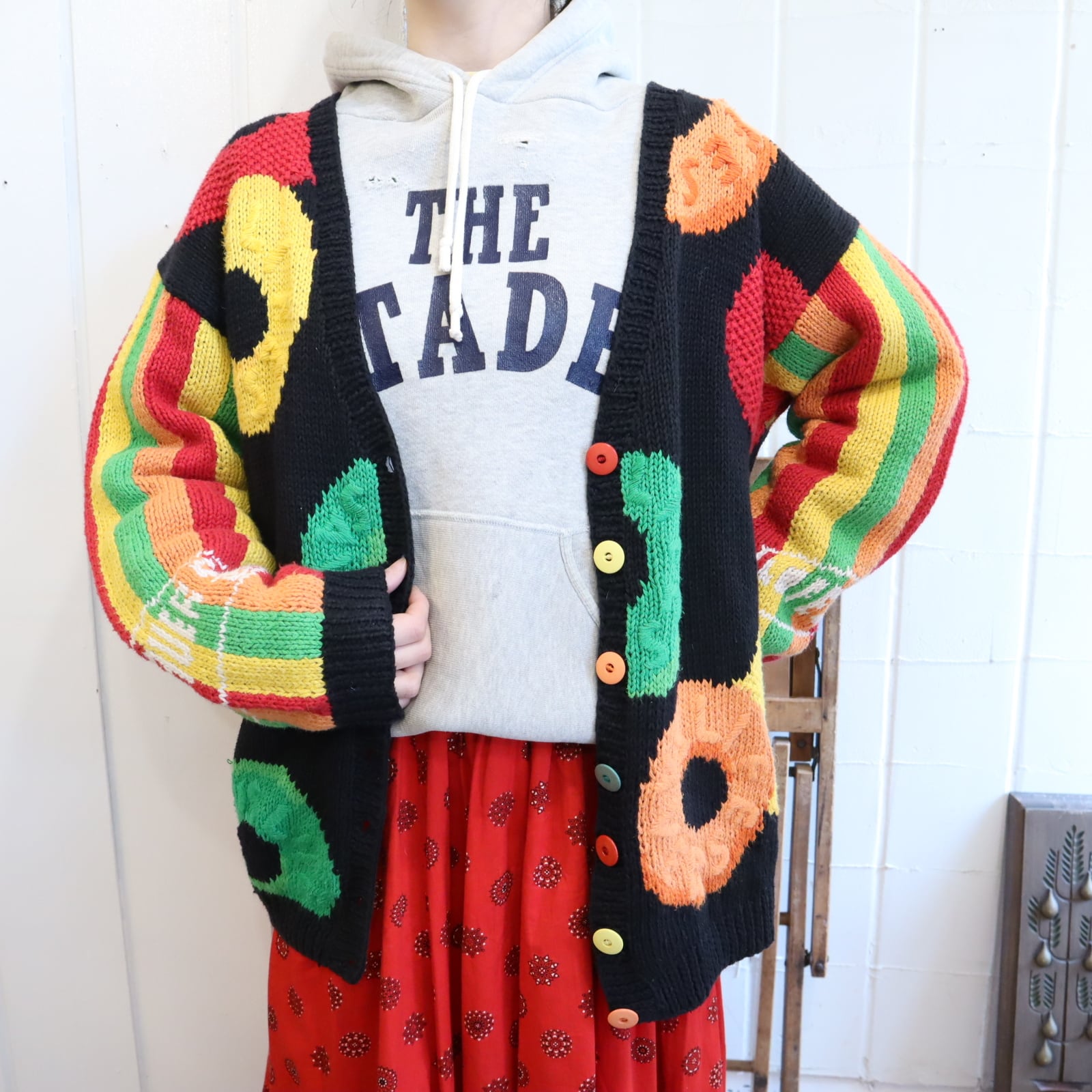 black×colorful candy pattern ramie cotton knit cardigan [l-5018]