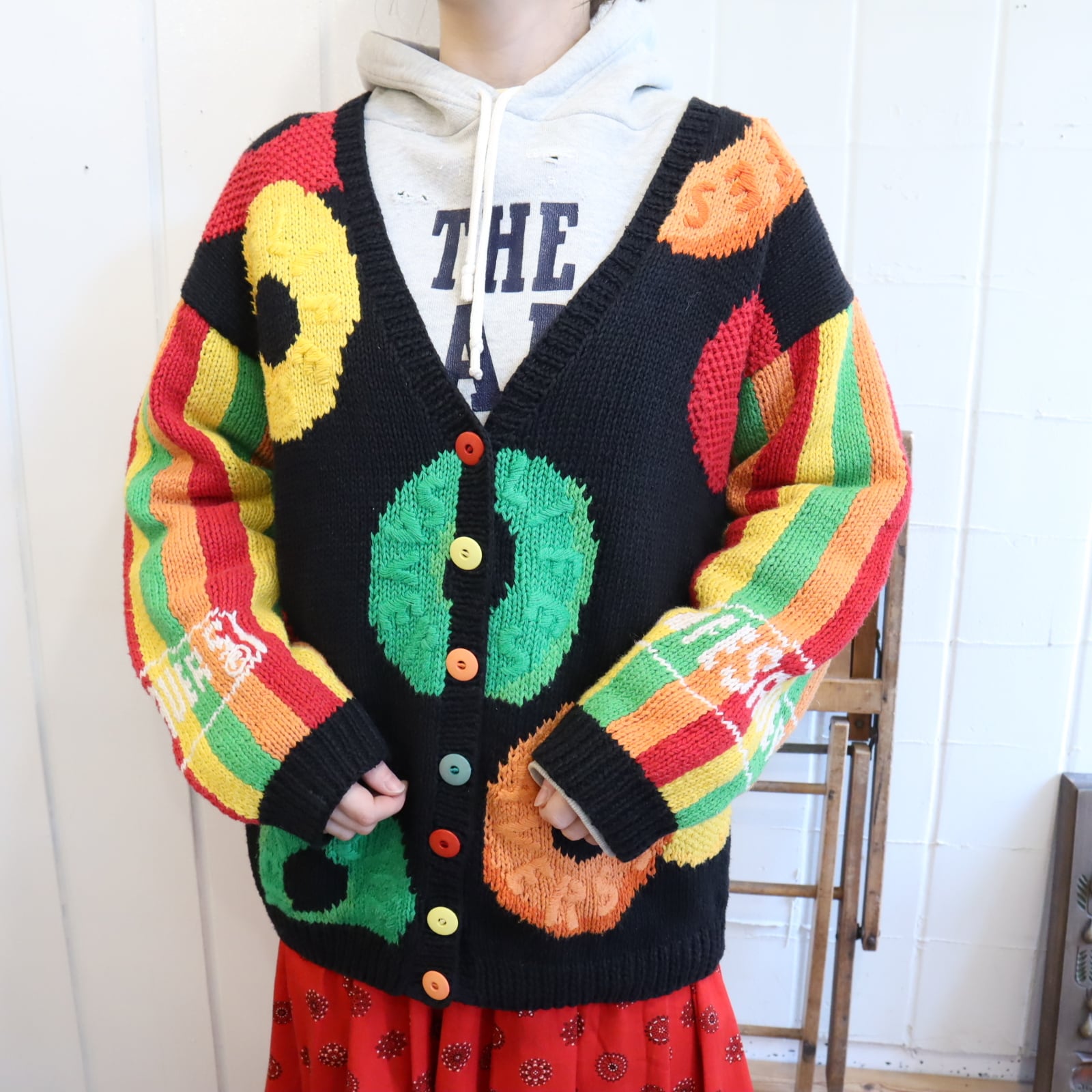 アメリカのキャンディーデザインが施されていてキュートなラミーコットンカーディガンです。