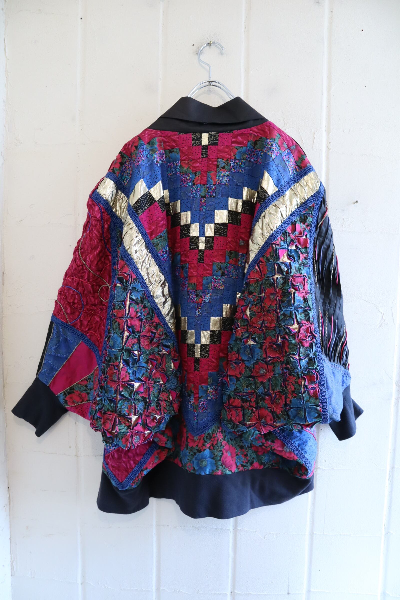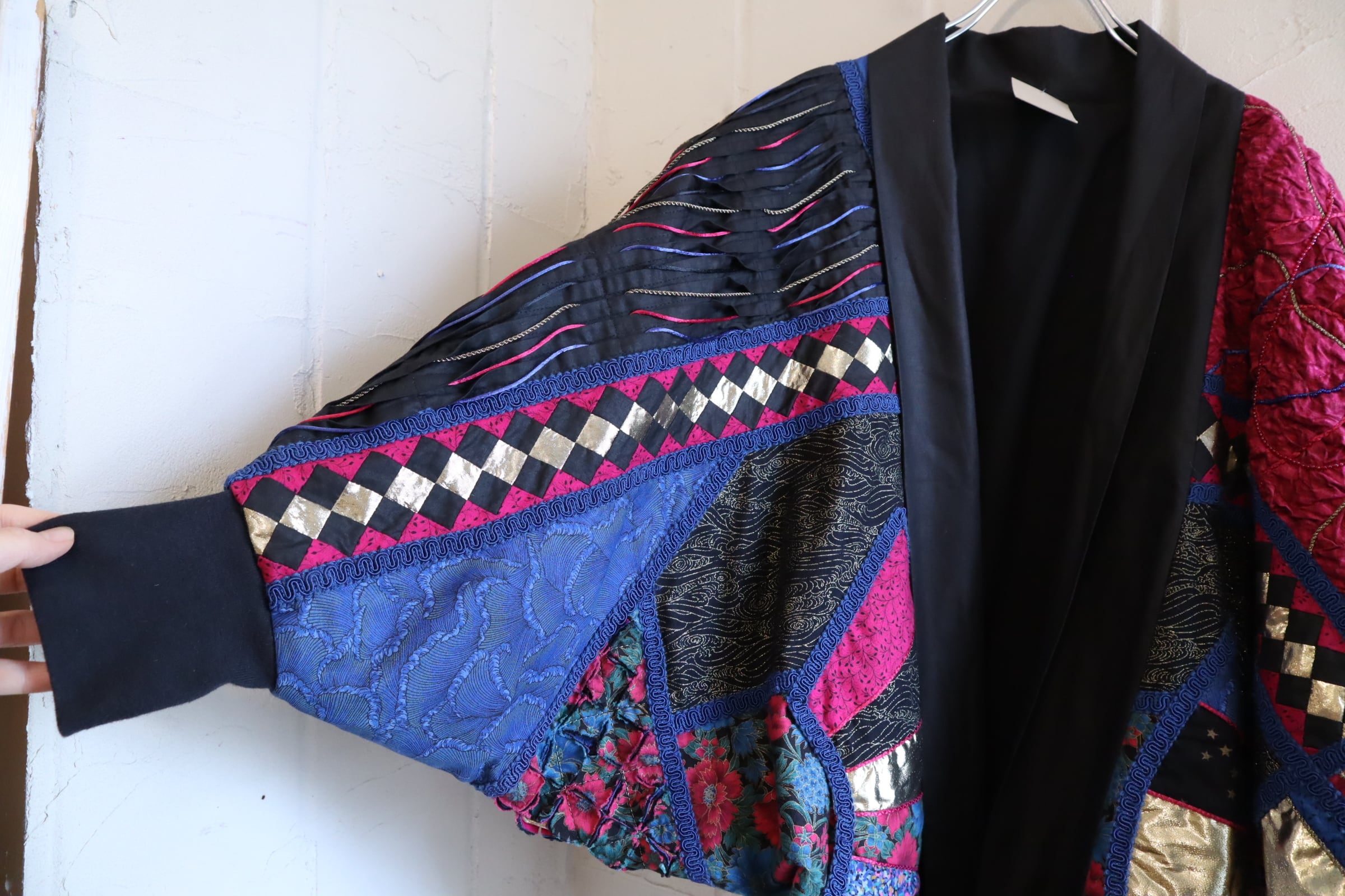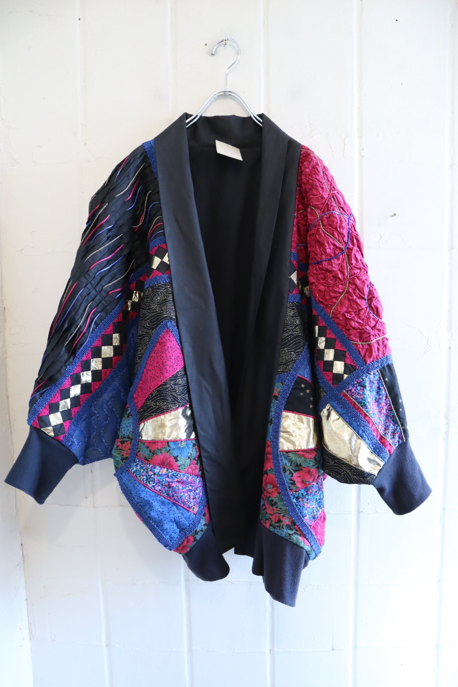 blue×pink dolman sleeve patchwork jacket [l-5026]