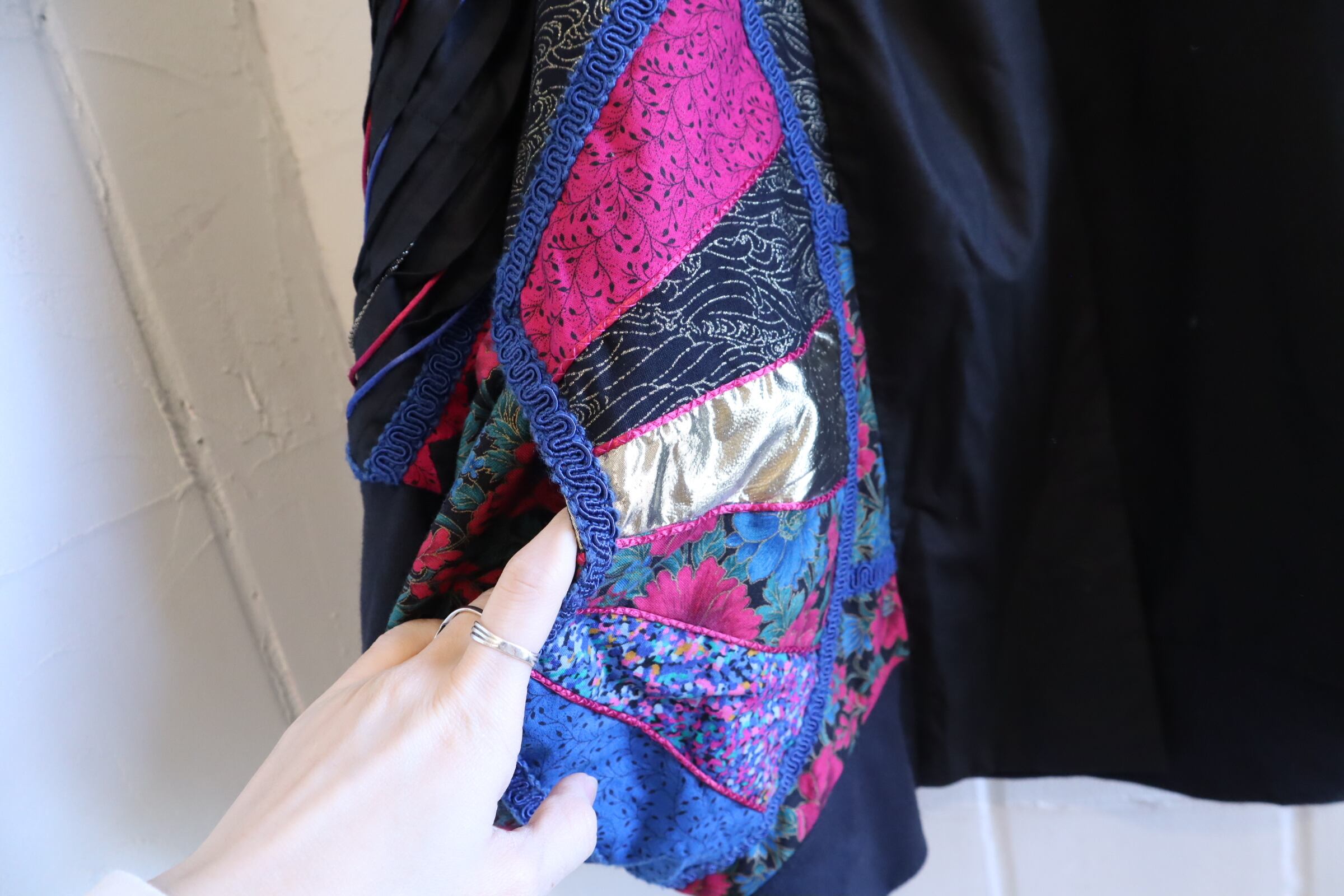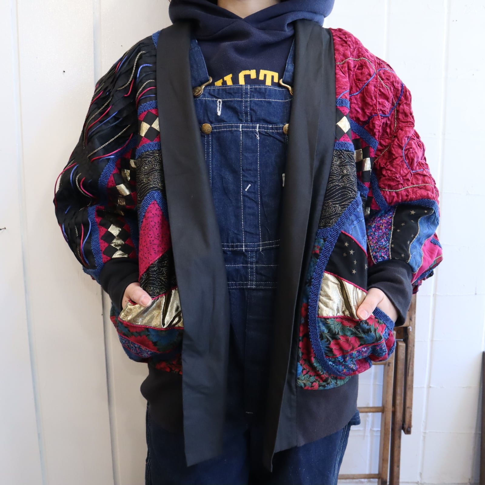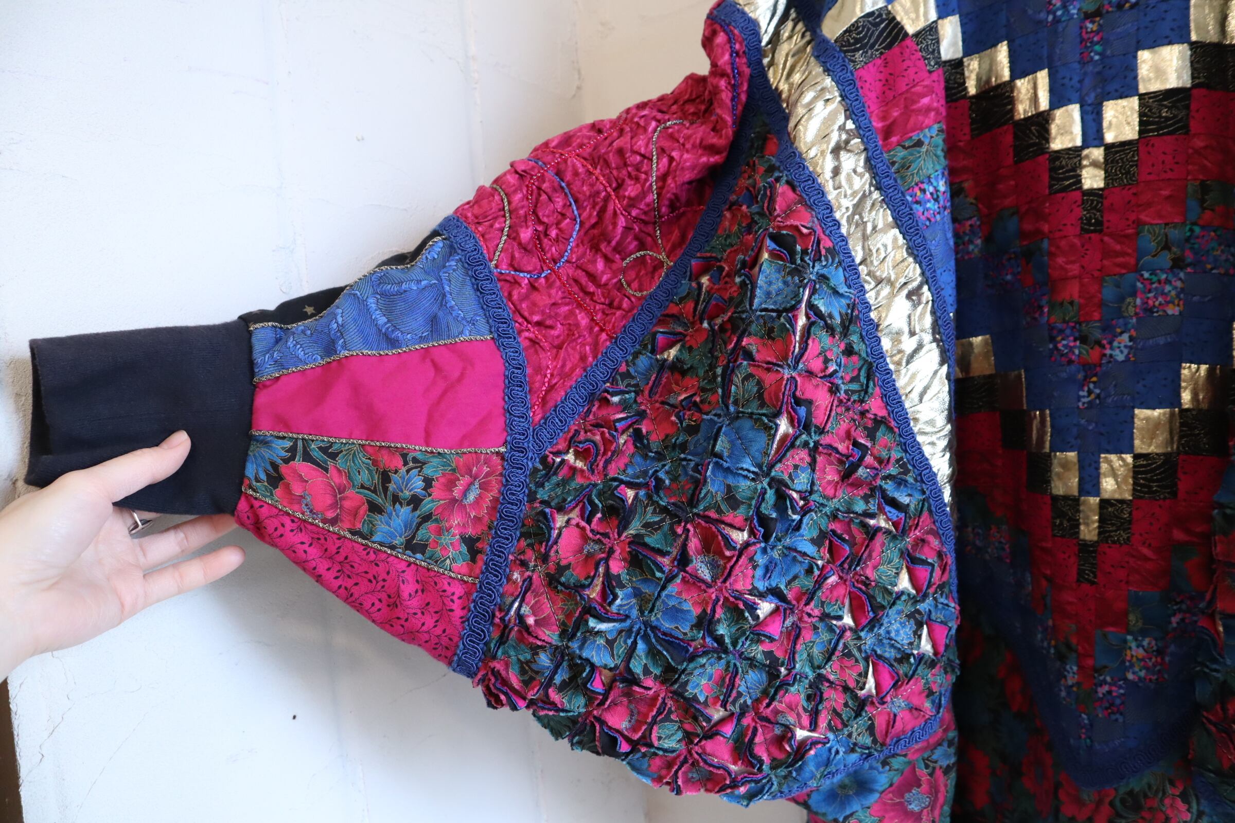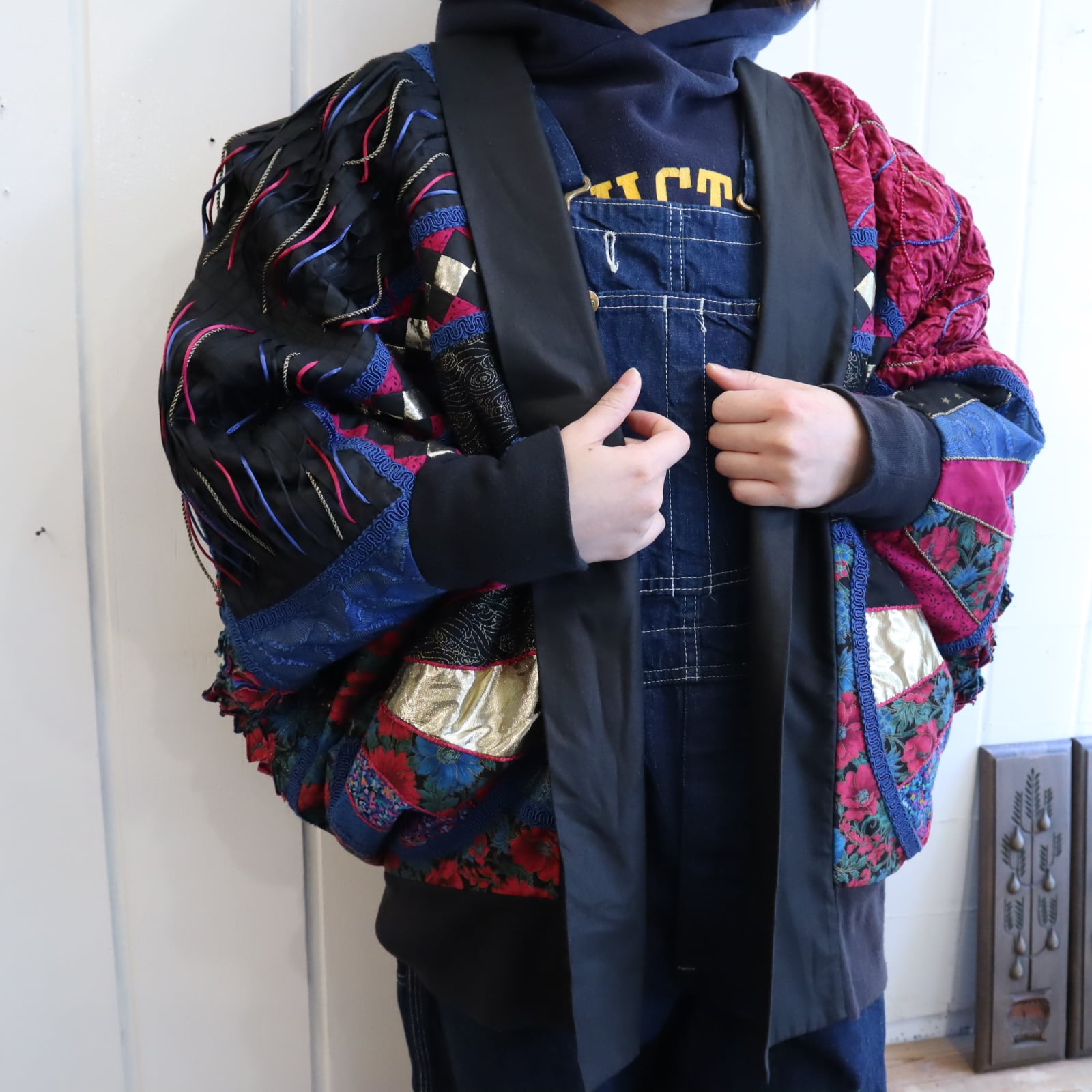 ユニークなシルエットが素敵なパッチワークジャケット。