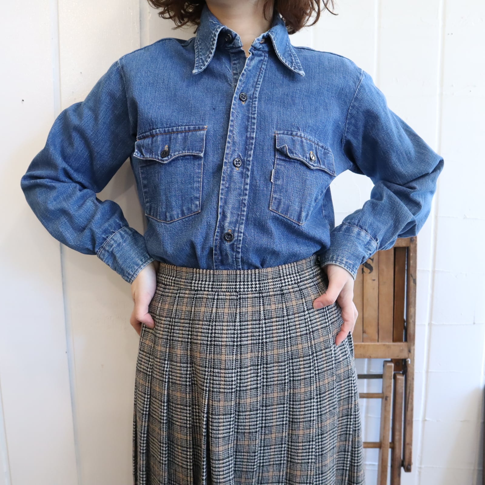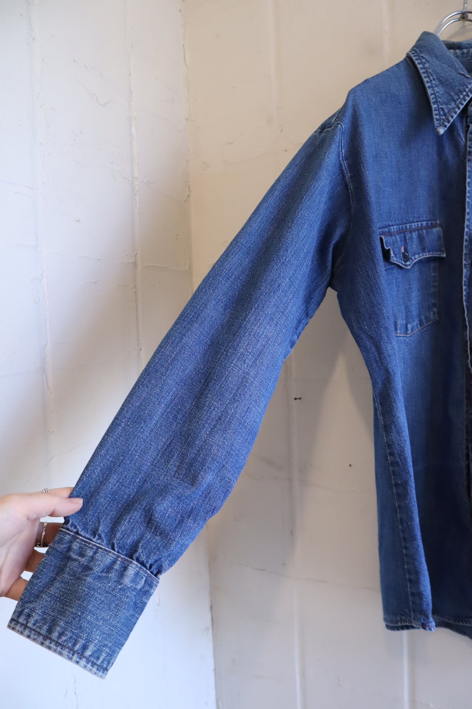 70s Levi's indigoblue plain denim shirt [l-5028]