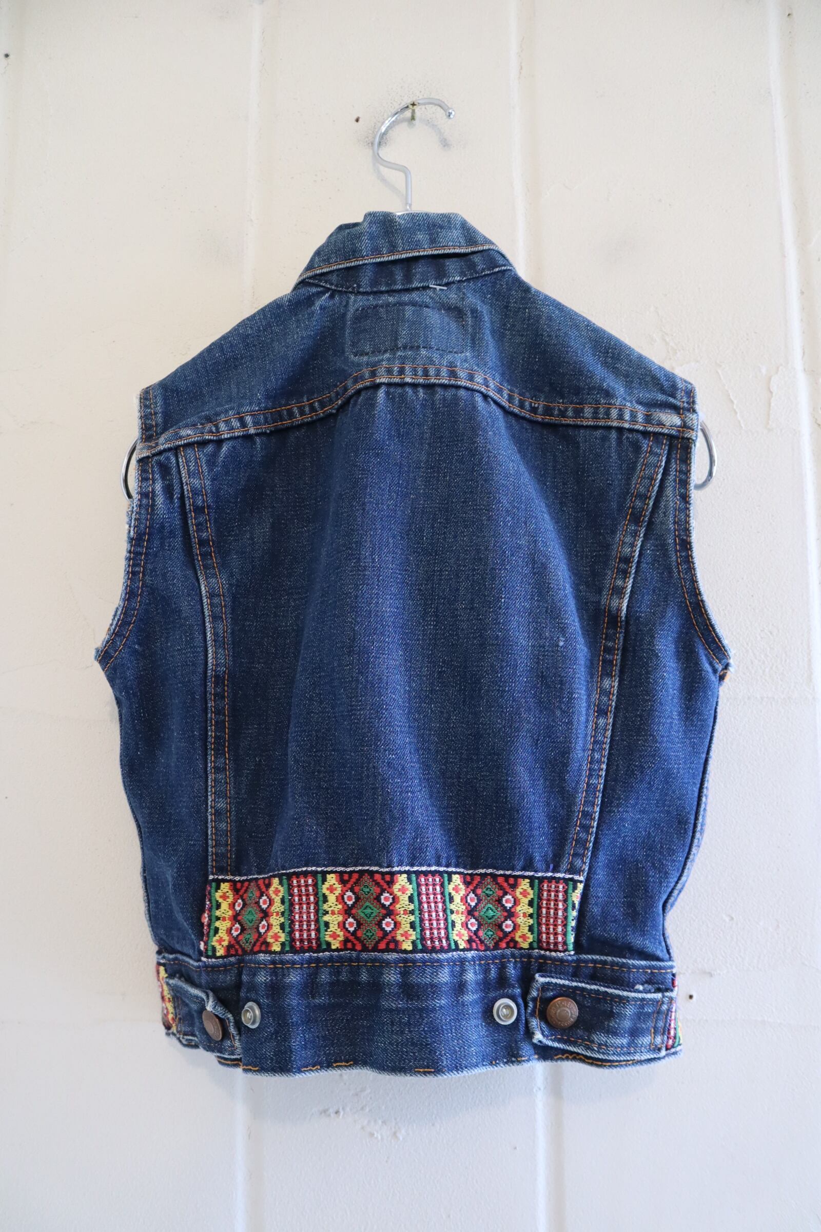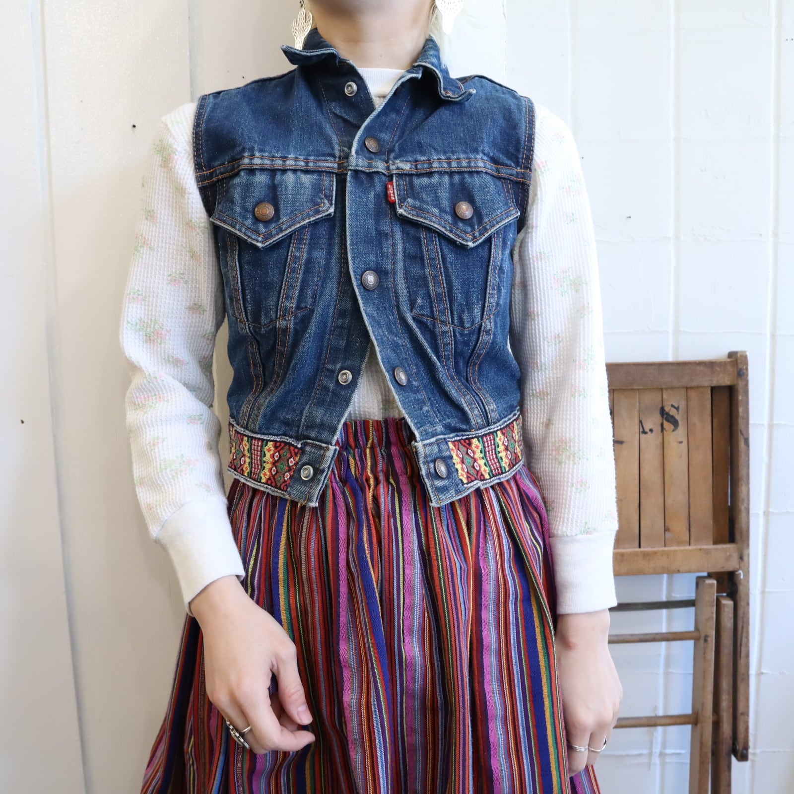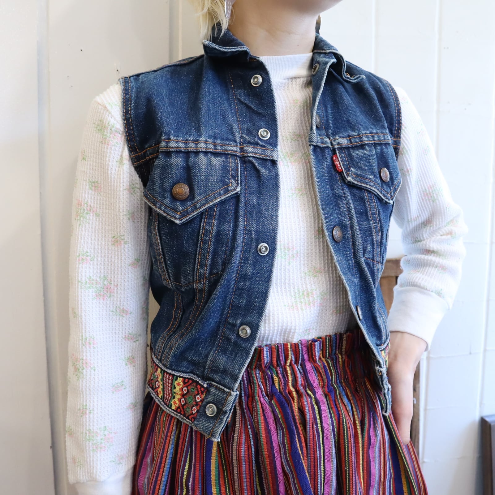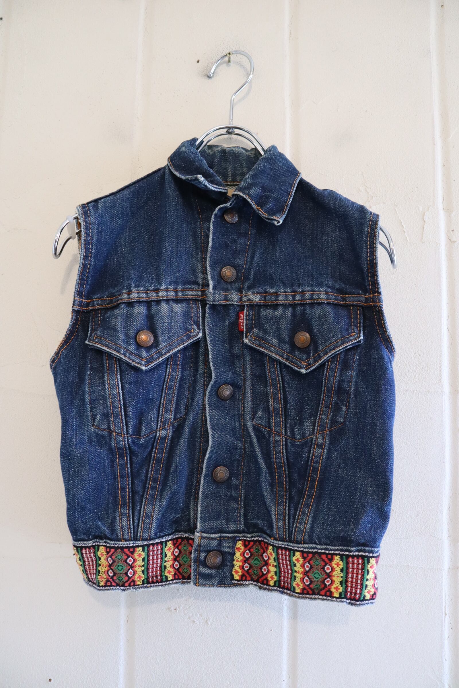 恐らくボーイズサイズと思われる、コンパクトなサイズのLevi's big E リメイクデニムベスト。