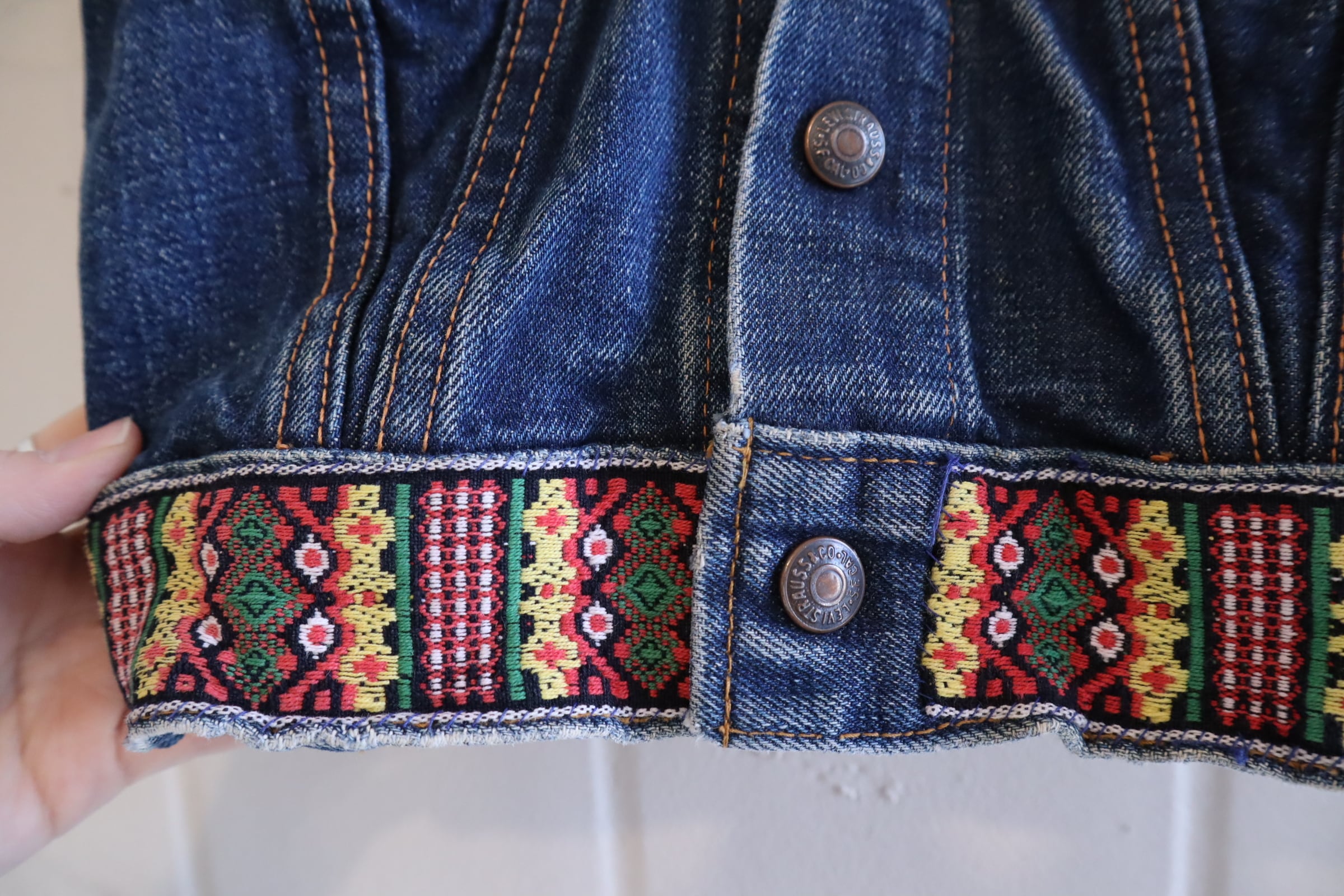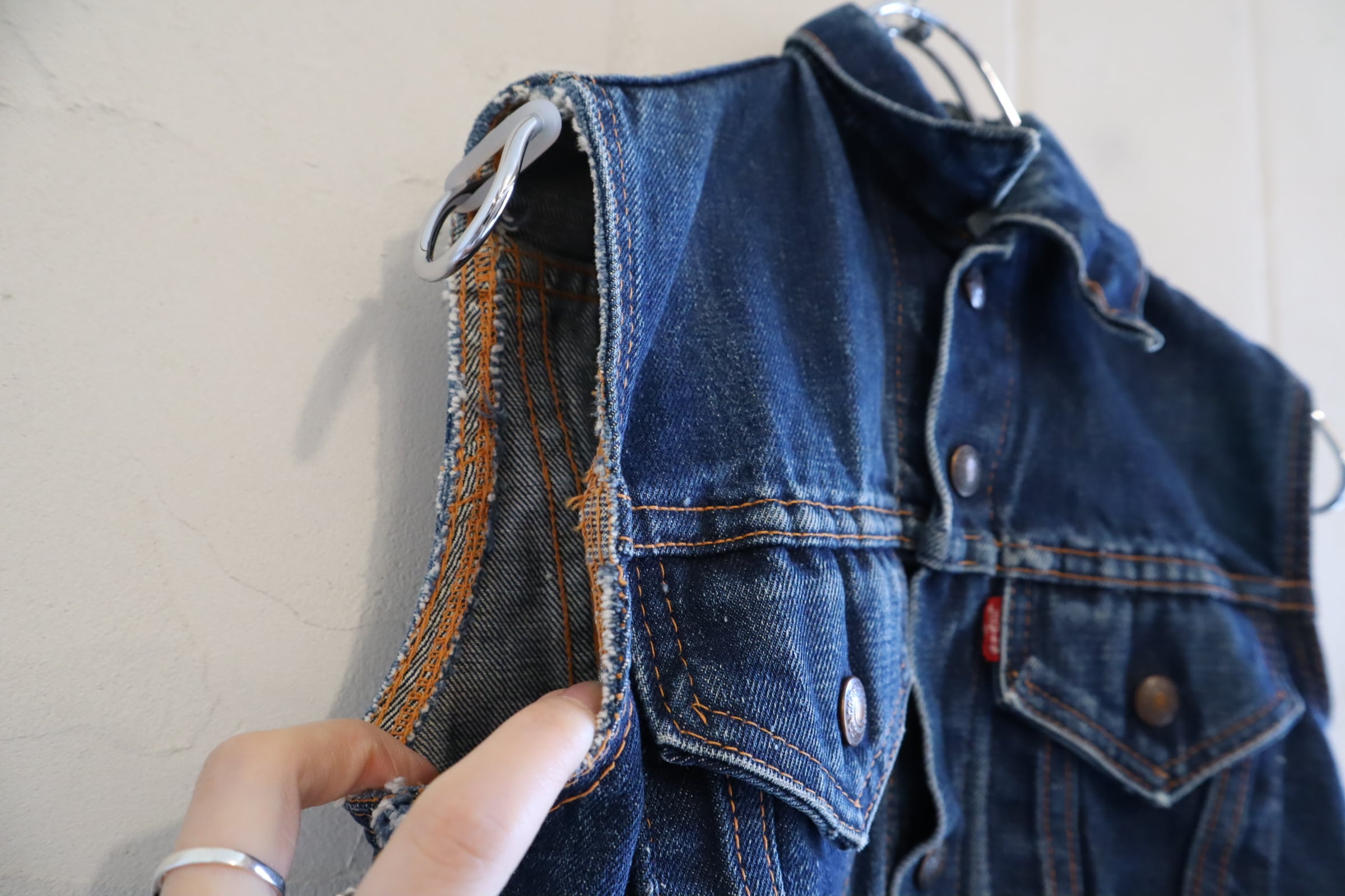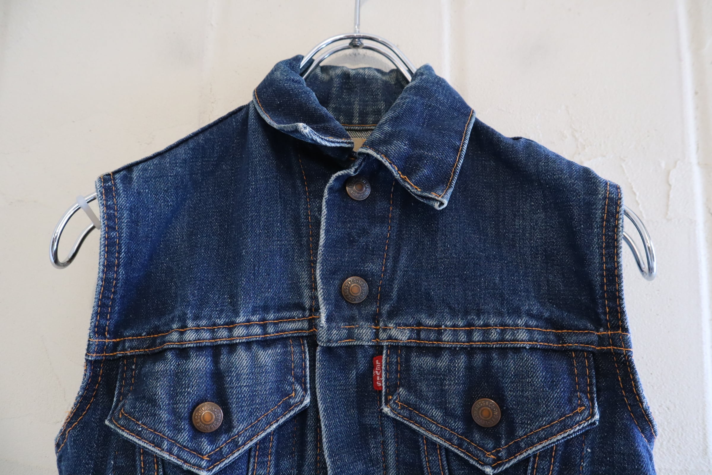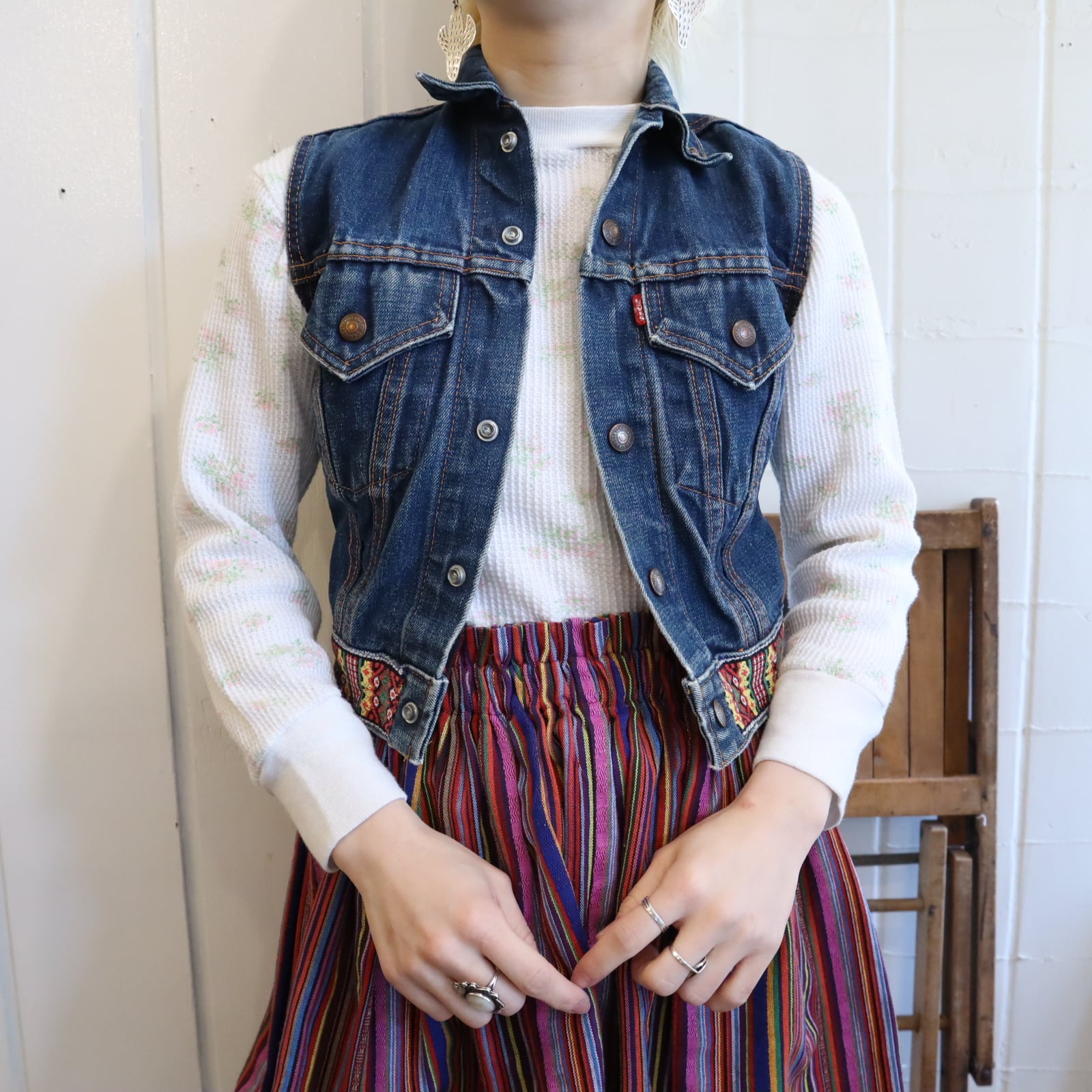 恐らくボーイズサイズと思われる、コンパクトなサイズのLevi's big E リメイクデニムベスト。