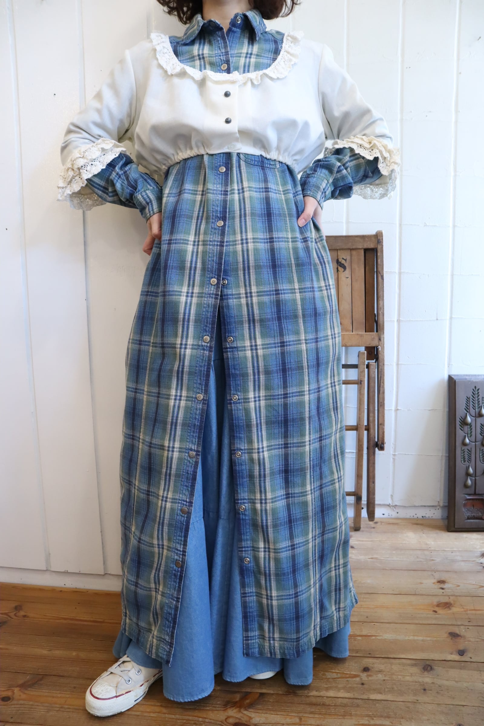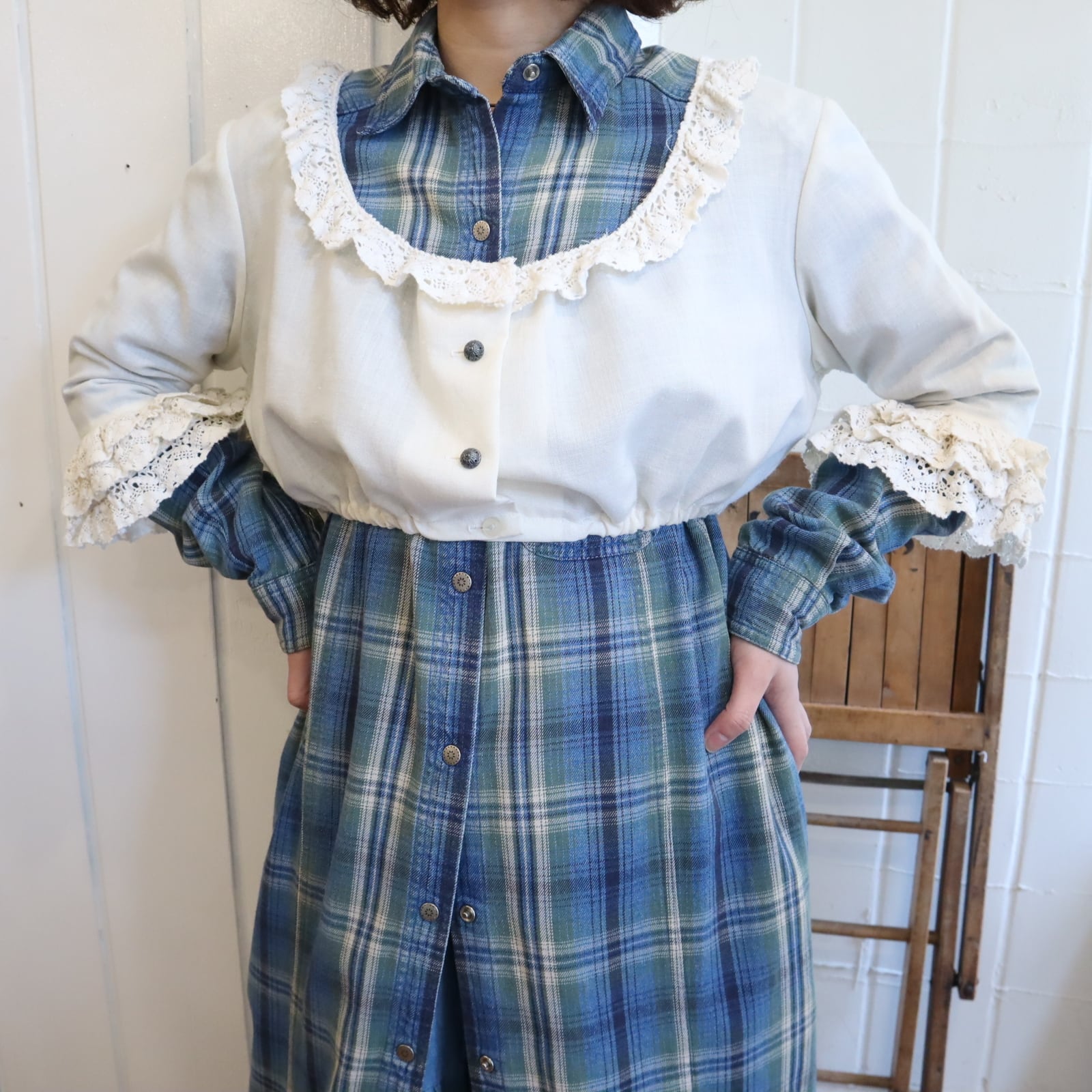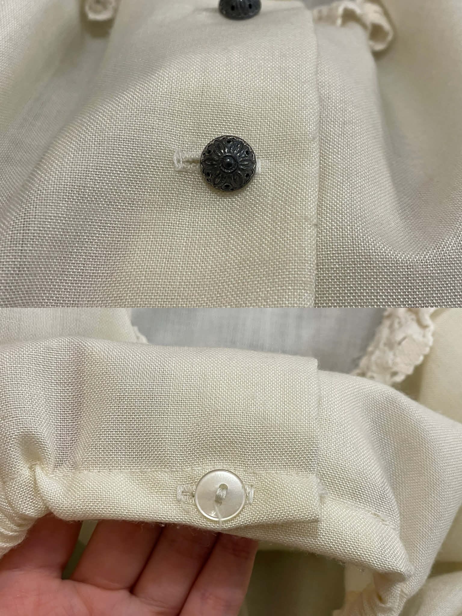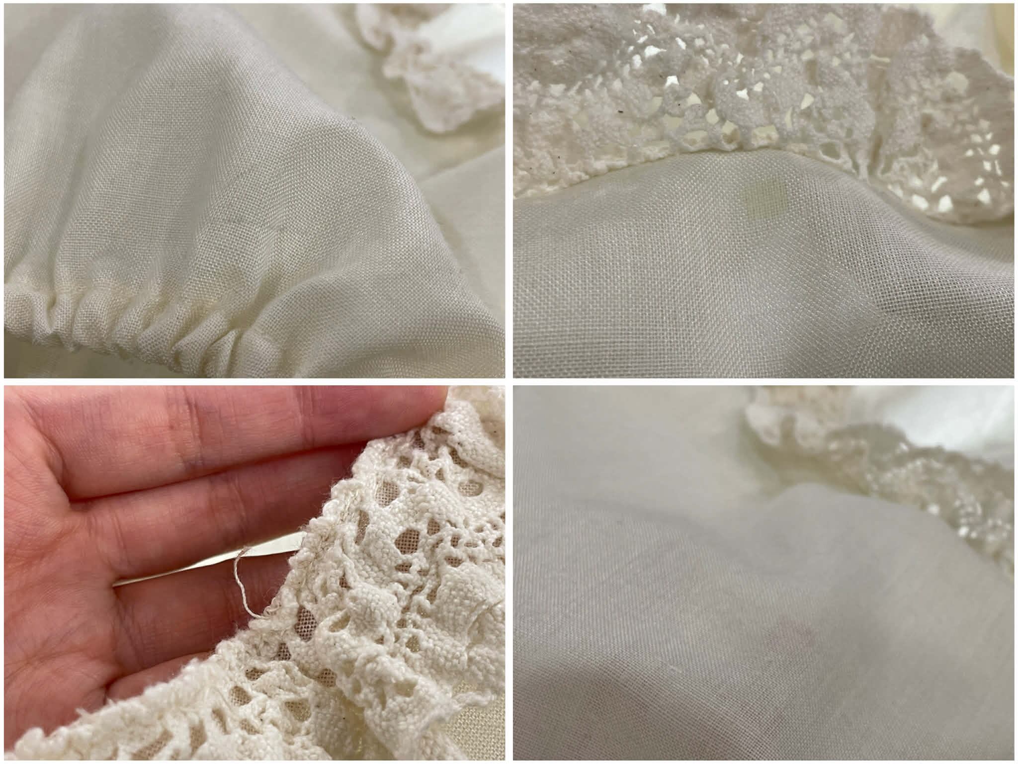 一部薄汚れやシミ、レースから糸の飛び出し、若干毛羽立ちがございますが、ほとんど気にならないかと思います。