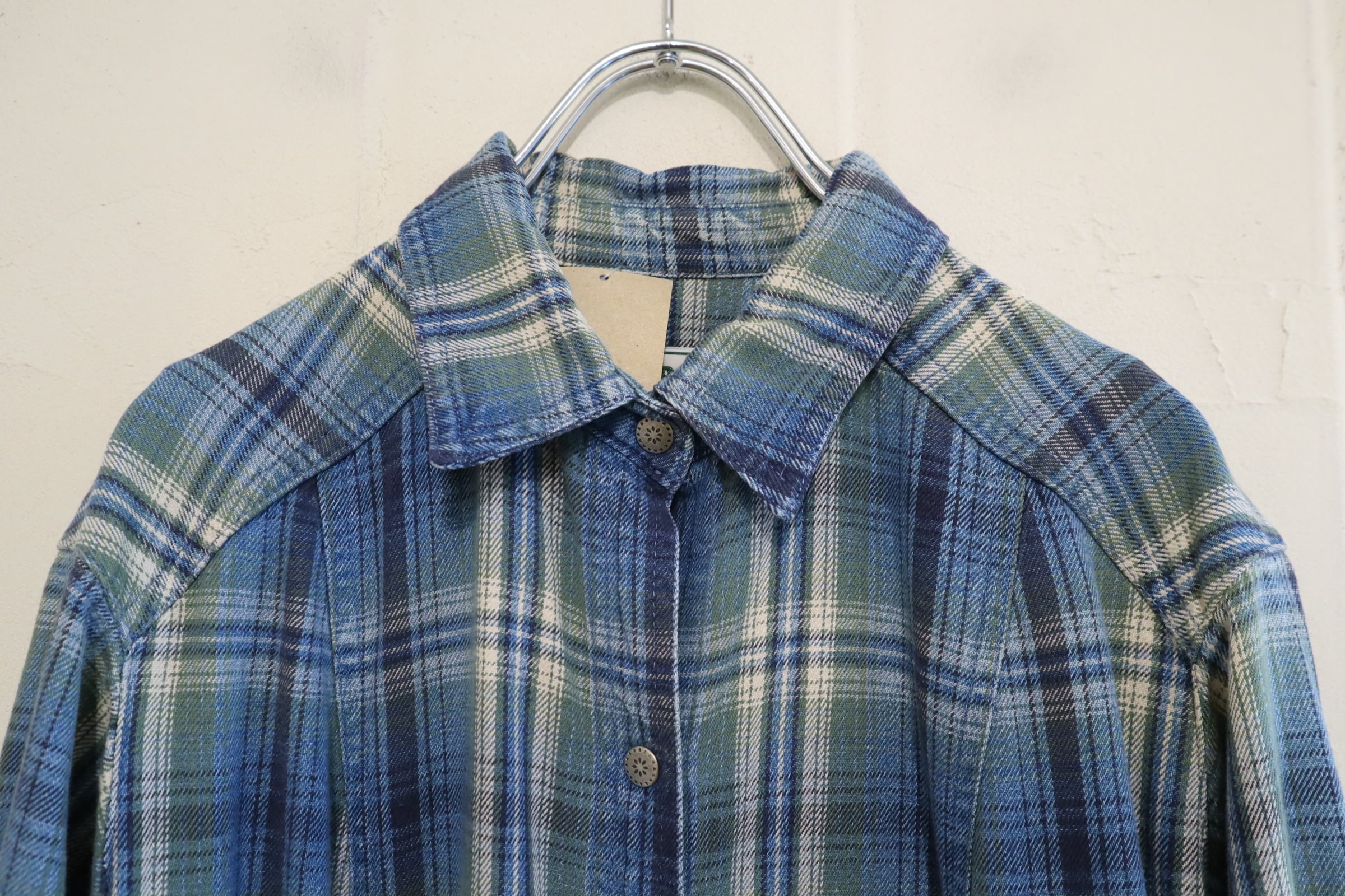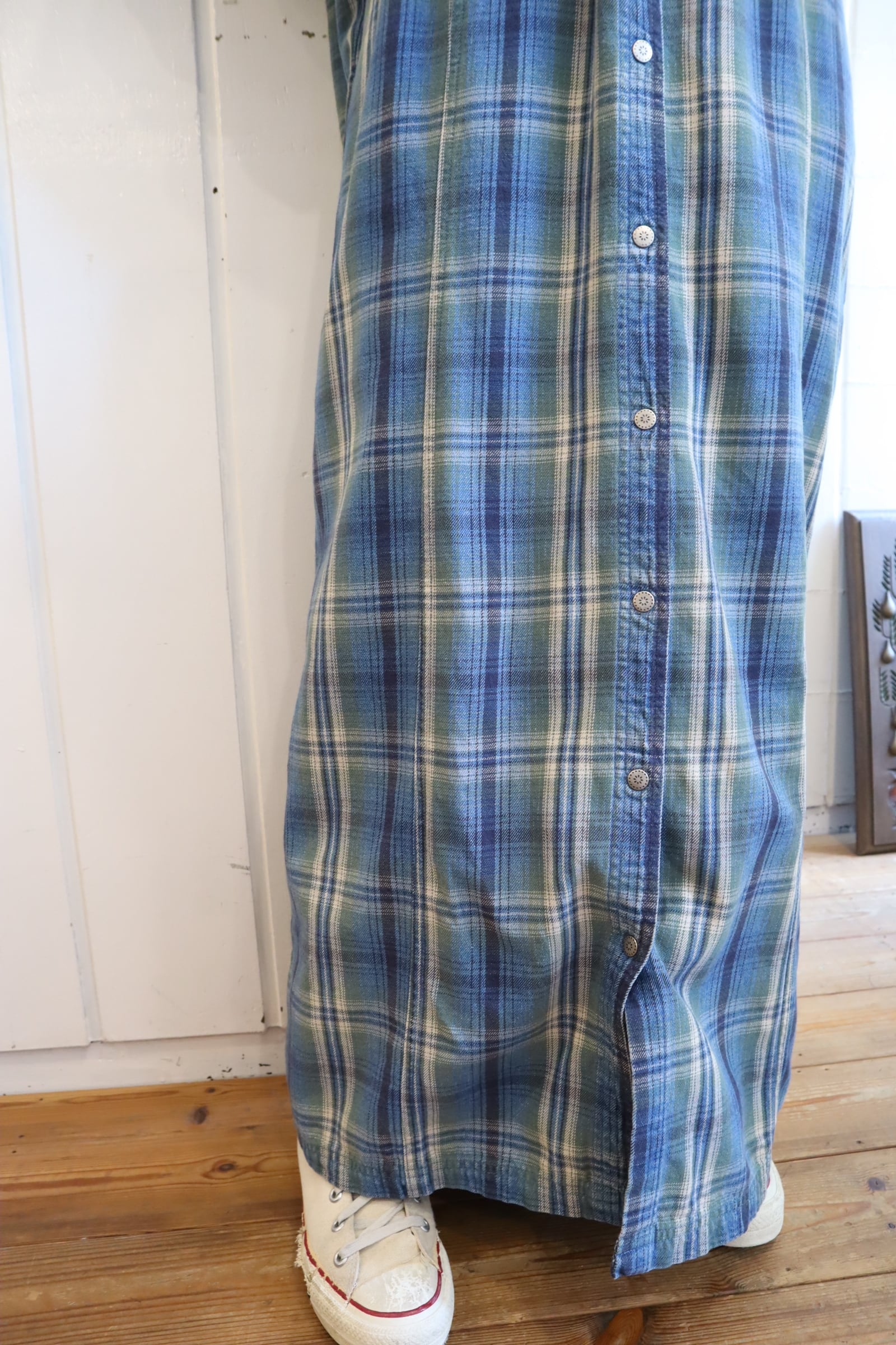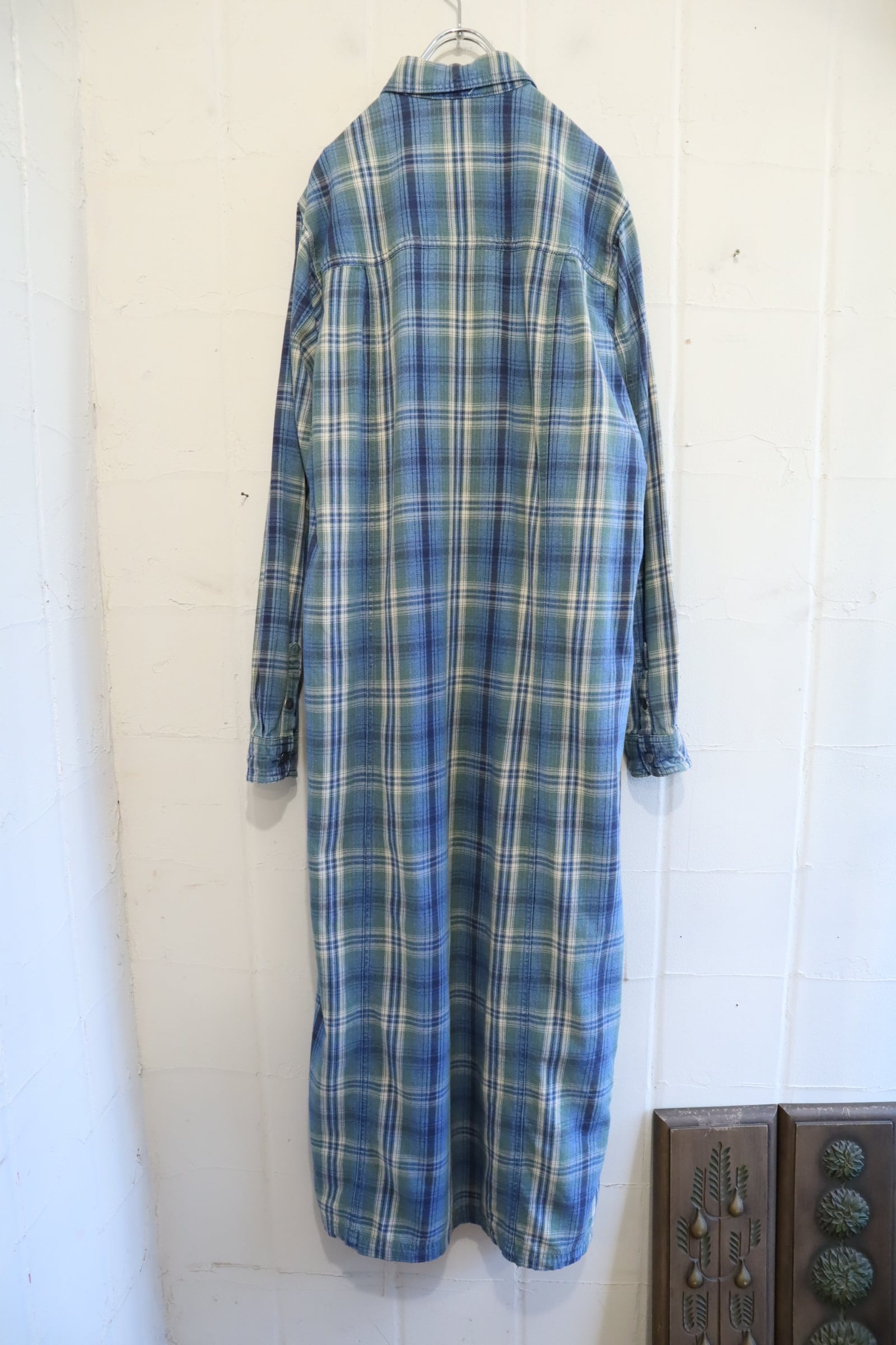 L.L.Bean blue×green plaid shirt dress [l-5040]