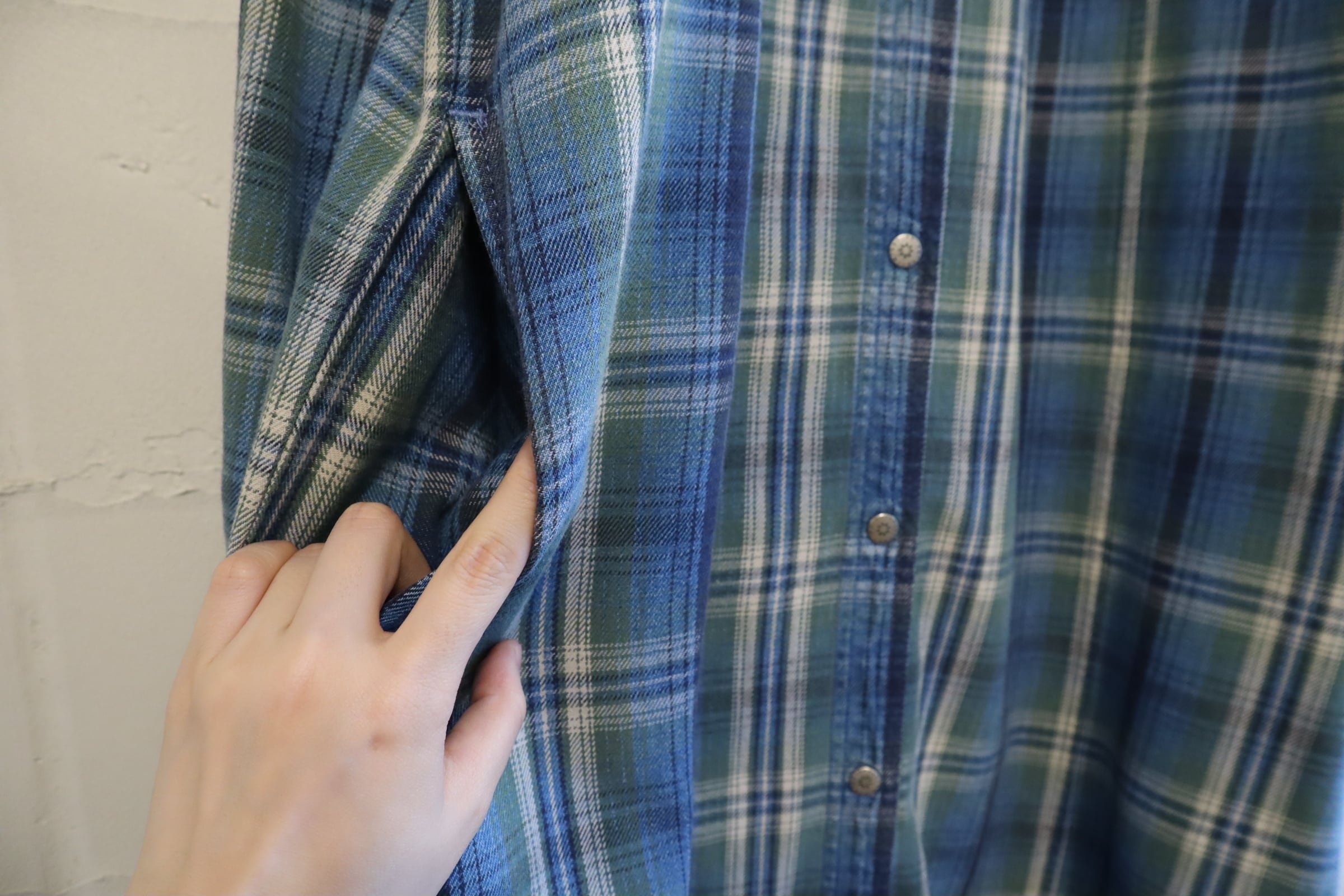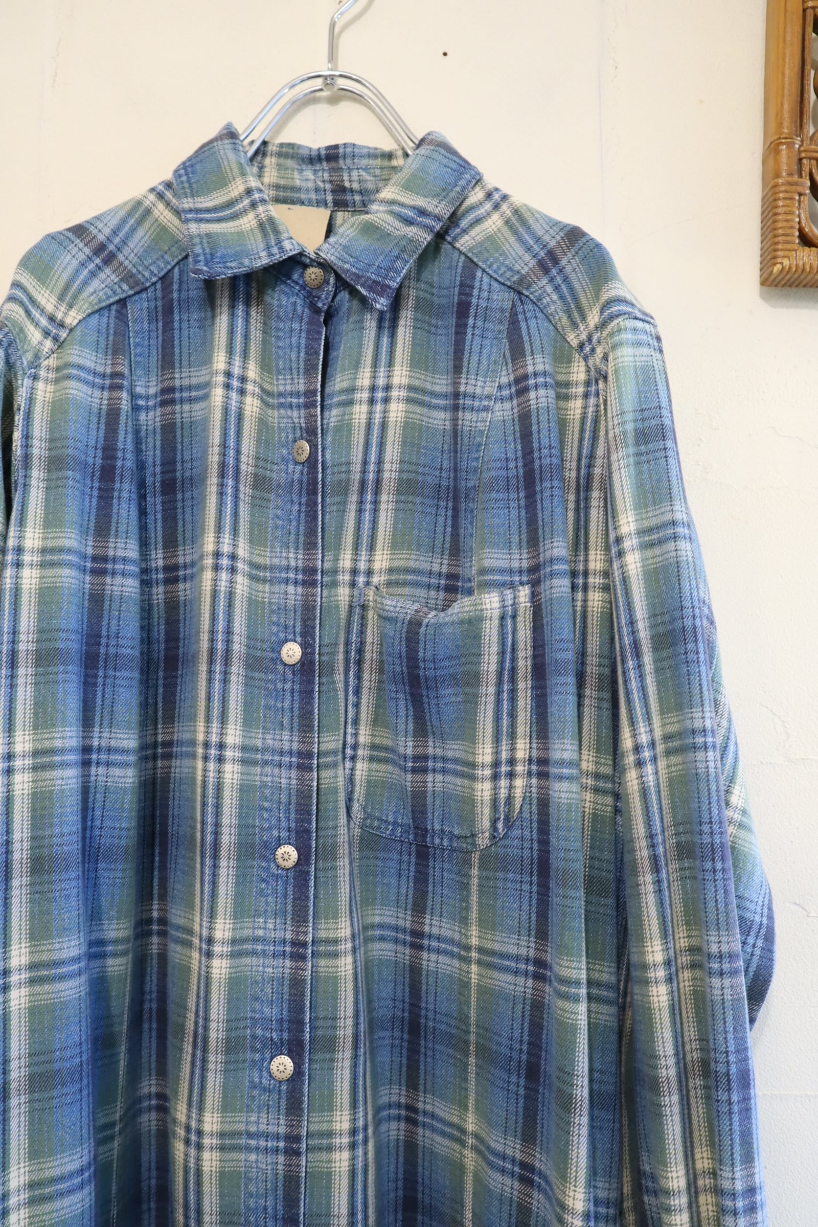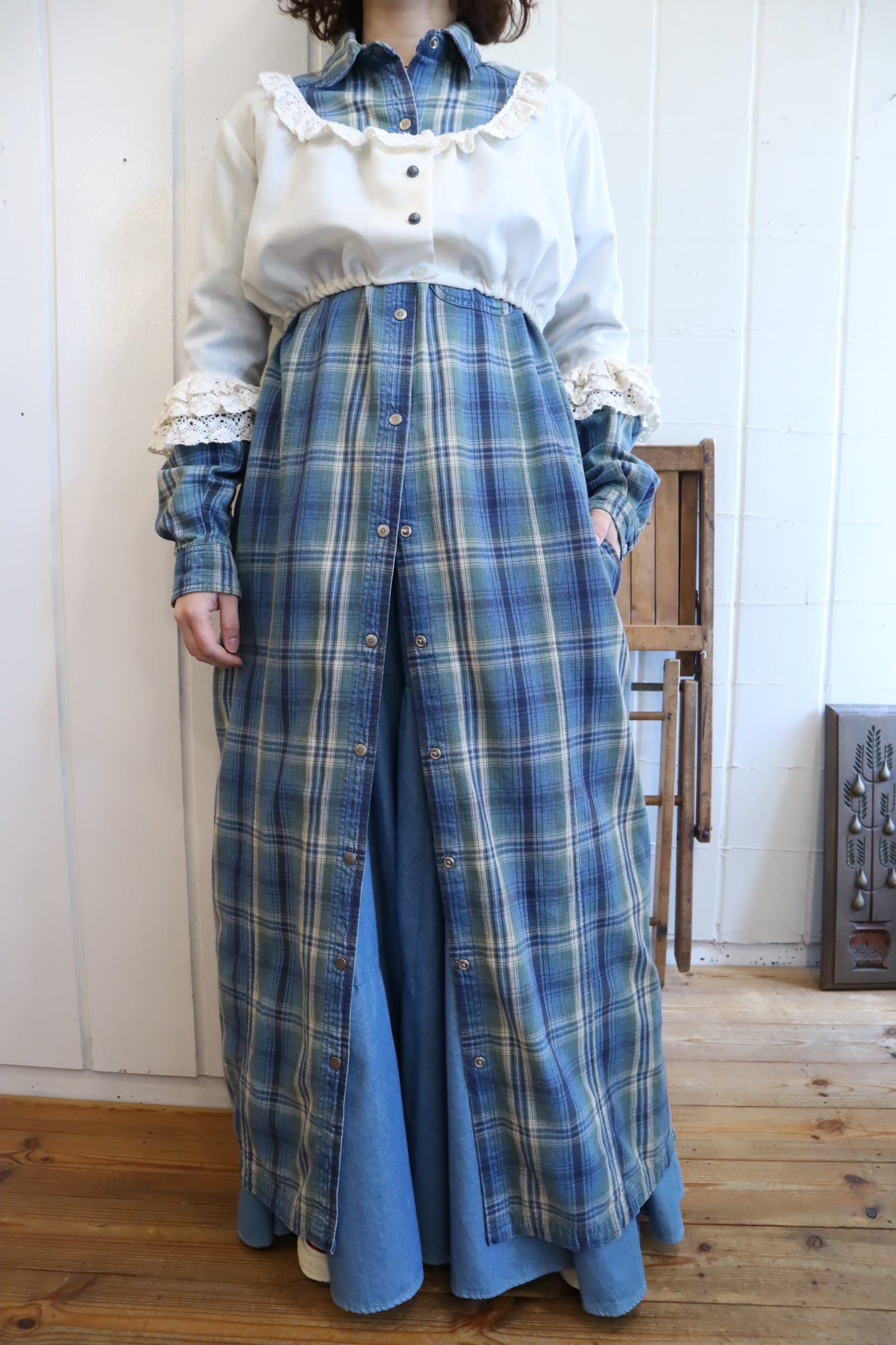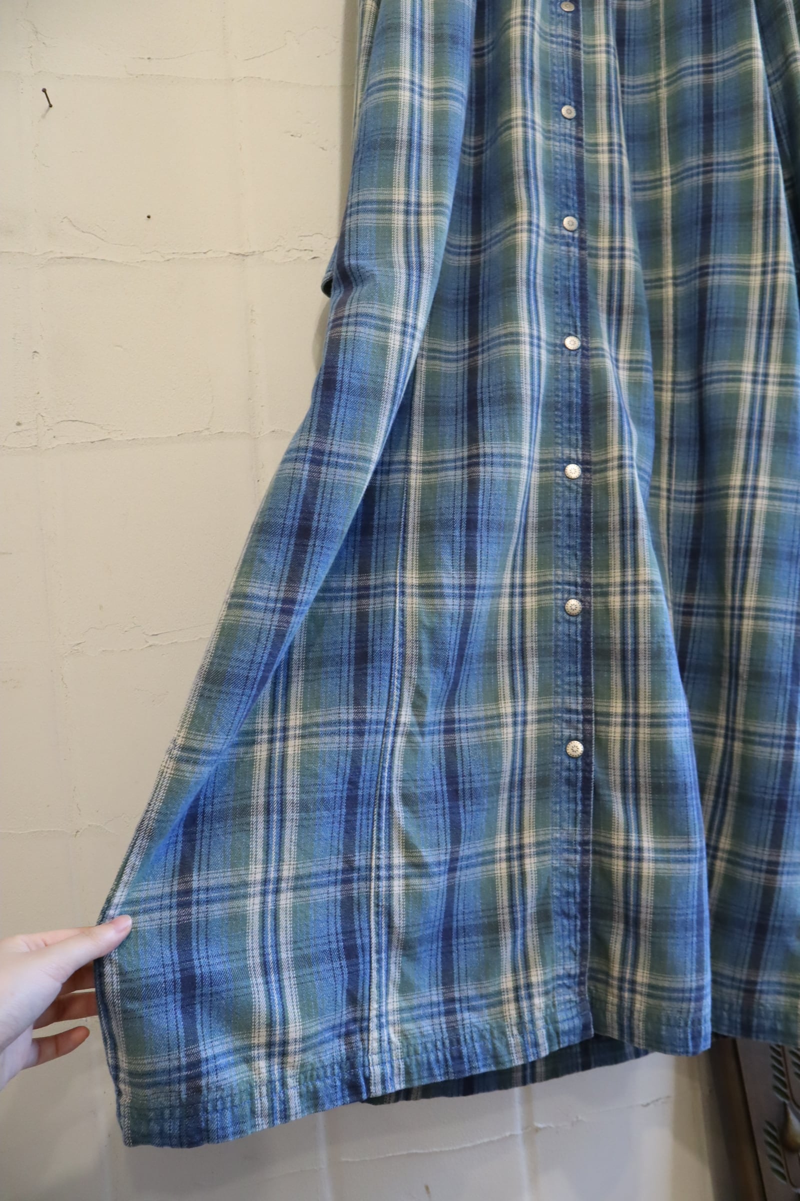 L.L.Bean blue×green plaid shirt dress [l-5040]