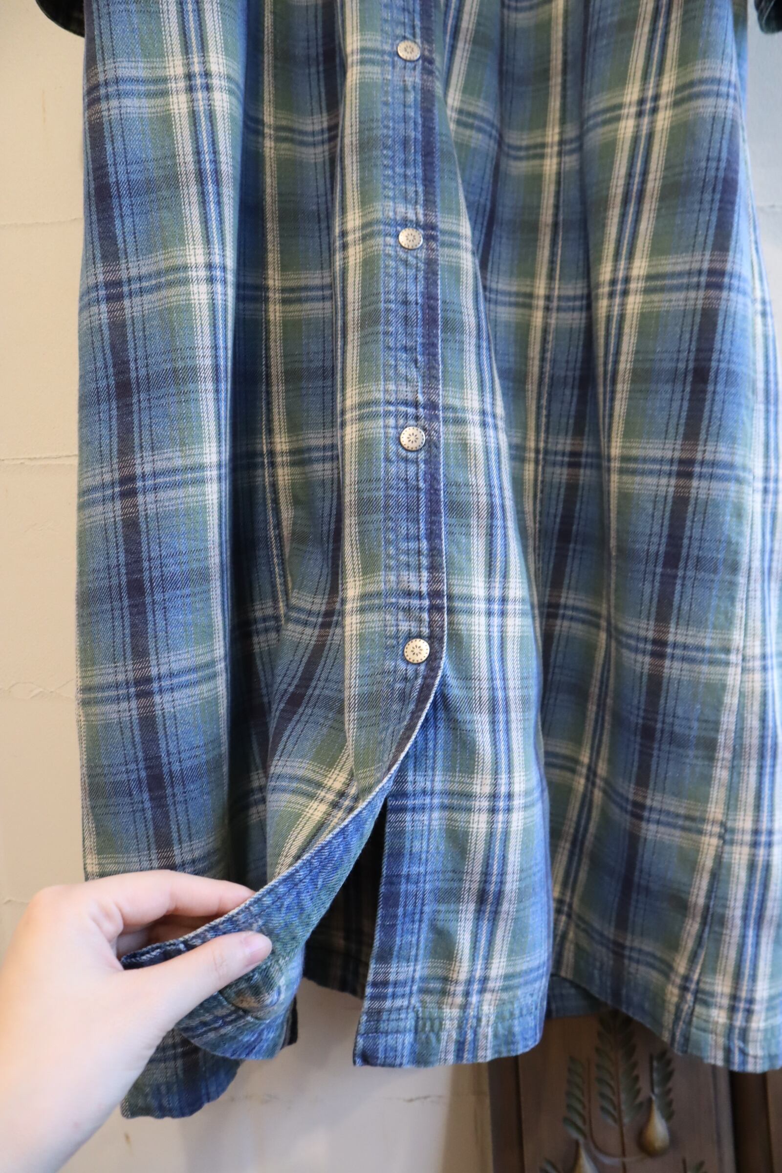 スナップボタン開閉で着脱も楽ちんなUSA製L.L.Beanのシャツドレスです。