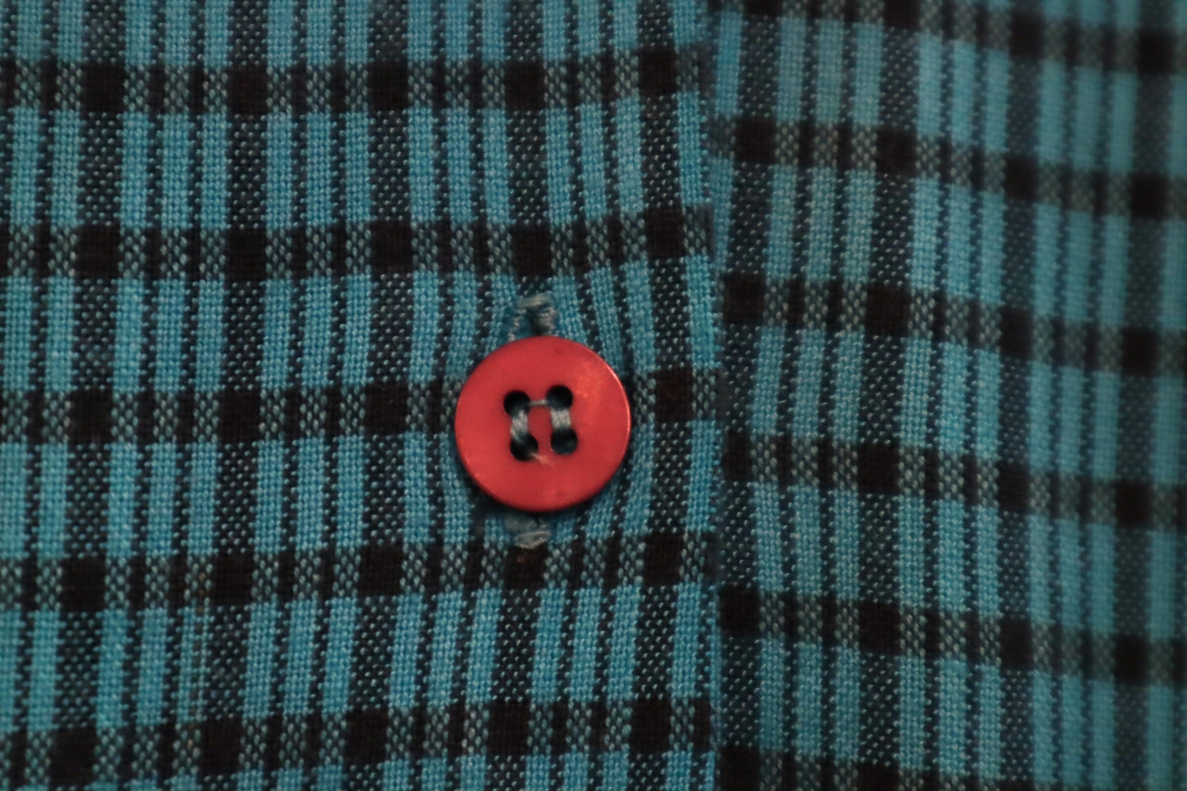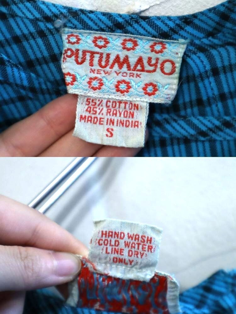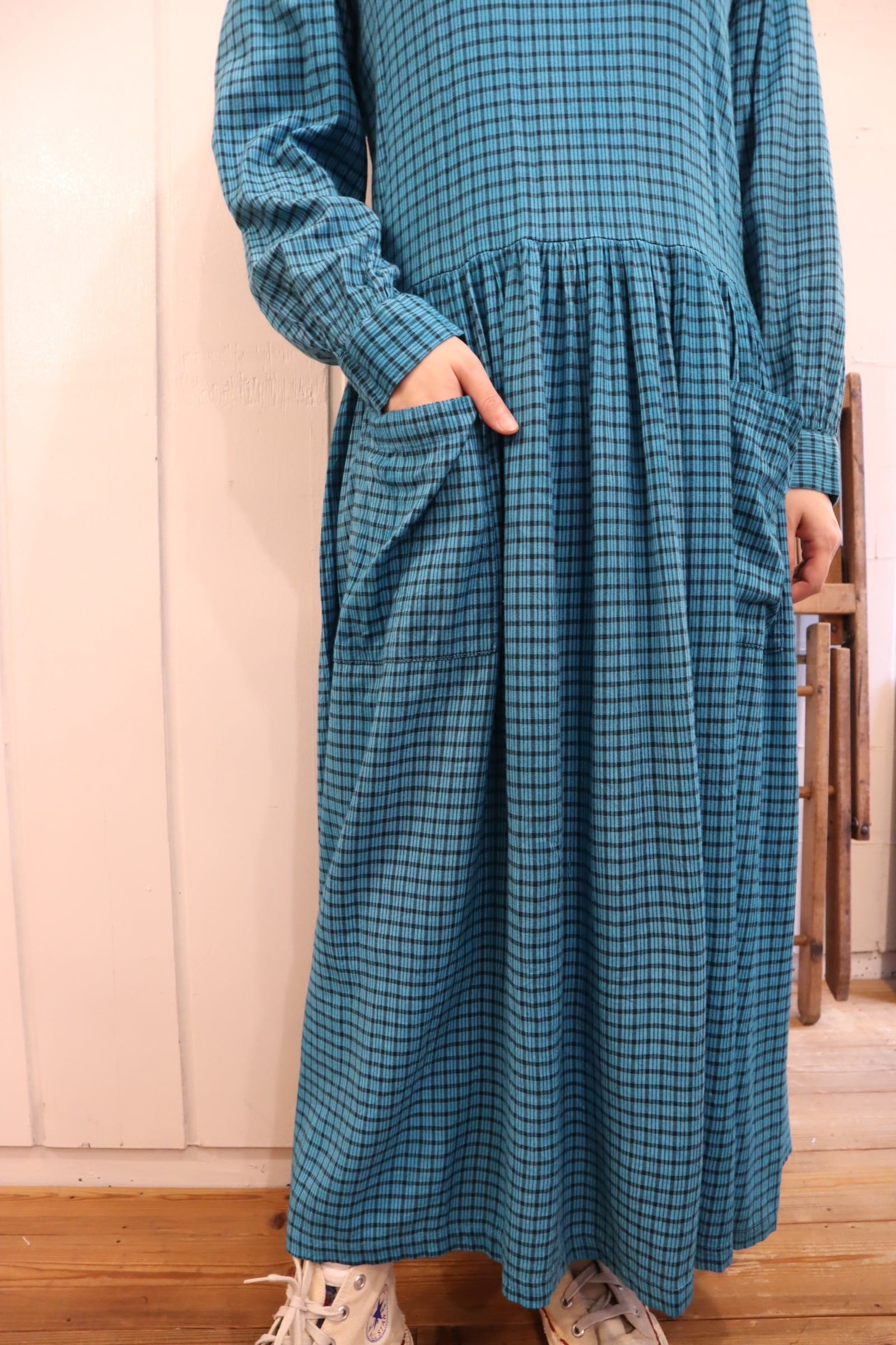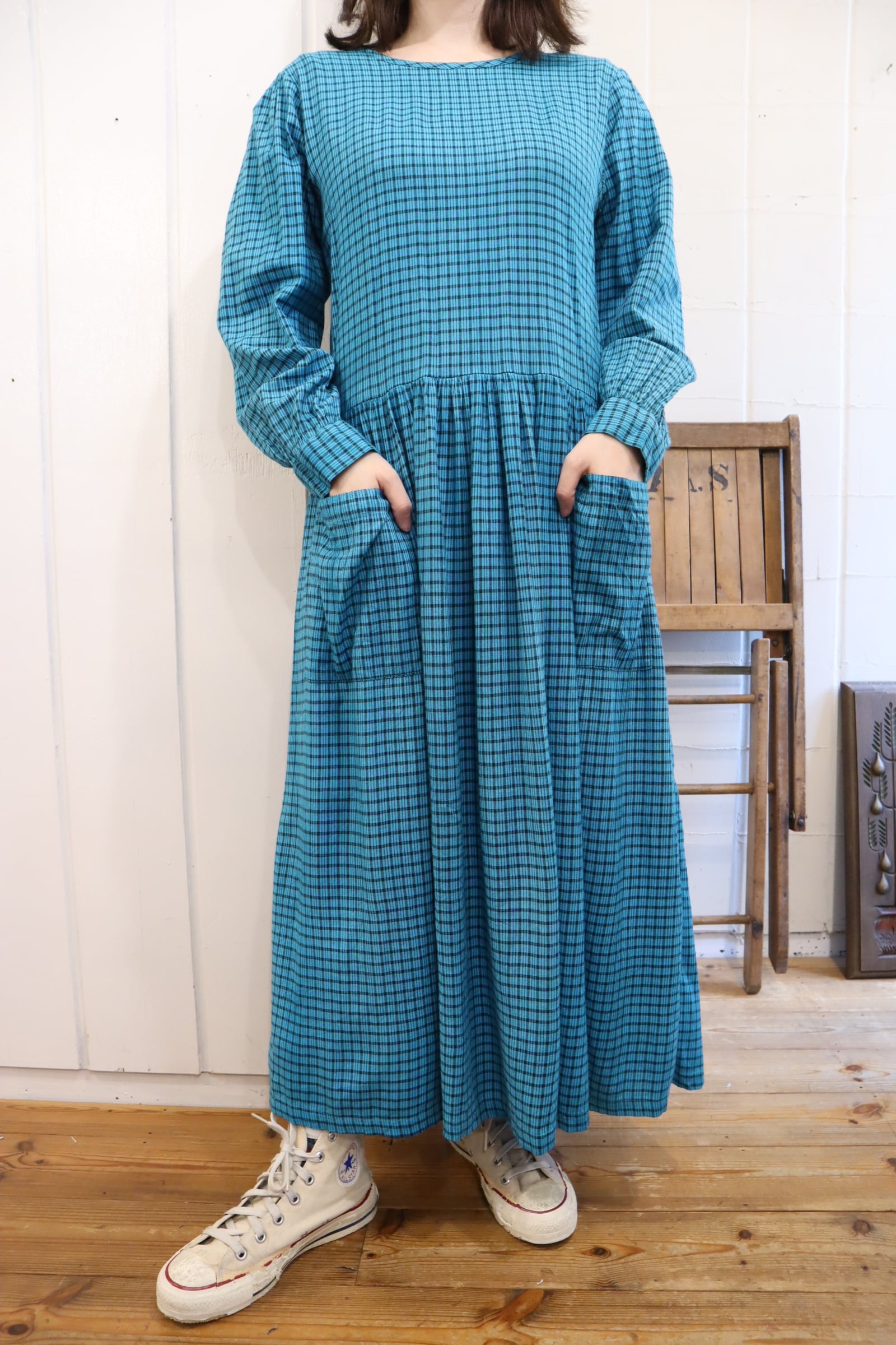 ‐80s blue×black plaid India cotton rayon dress [l-5041]