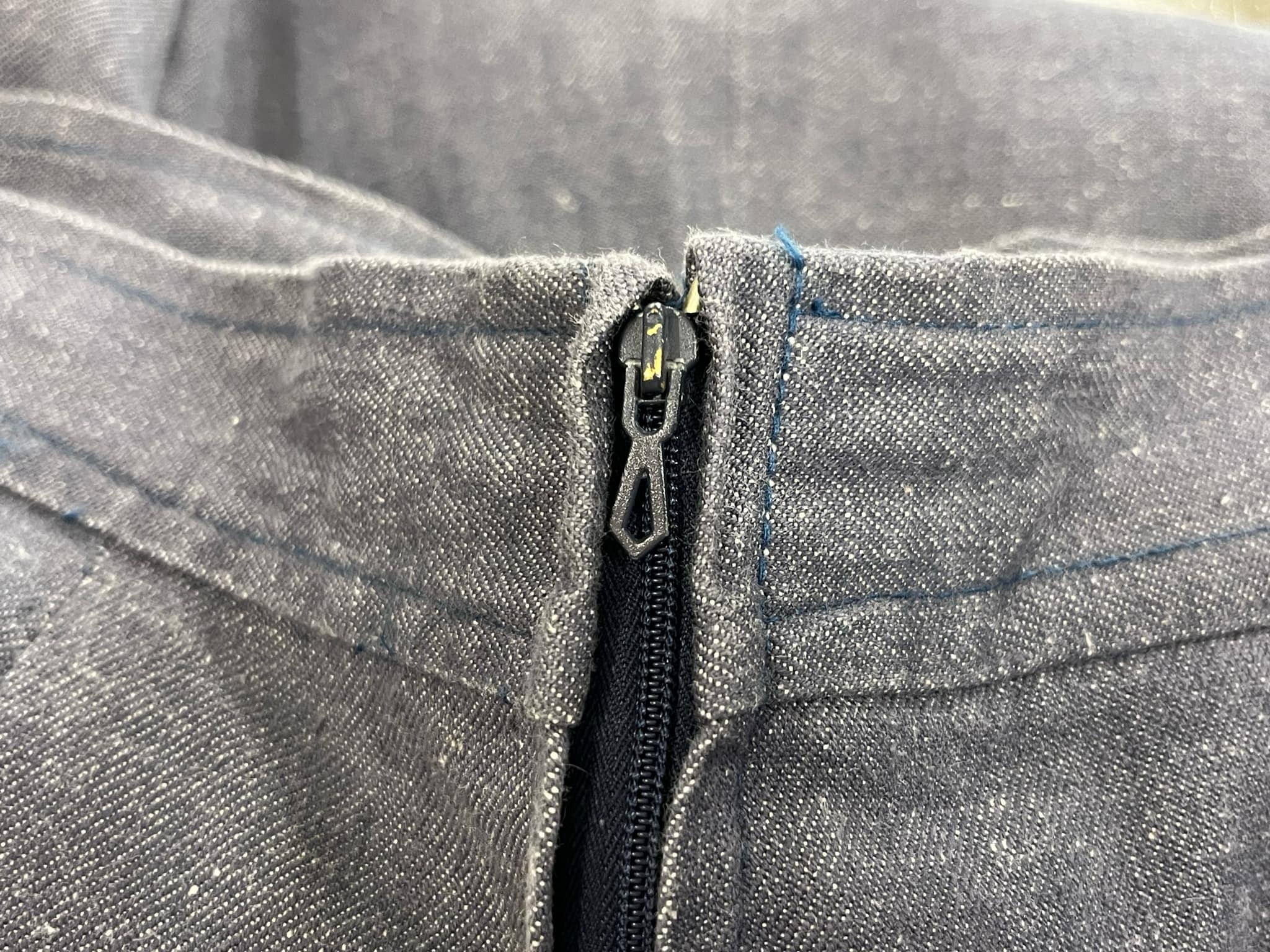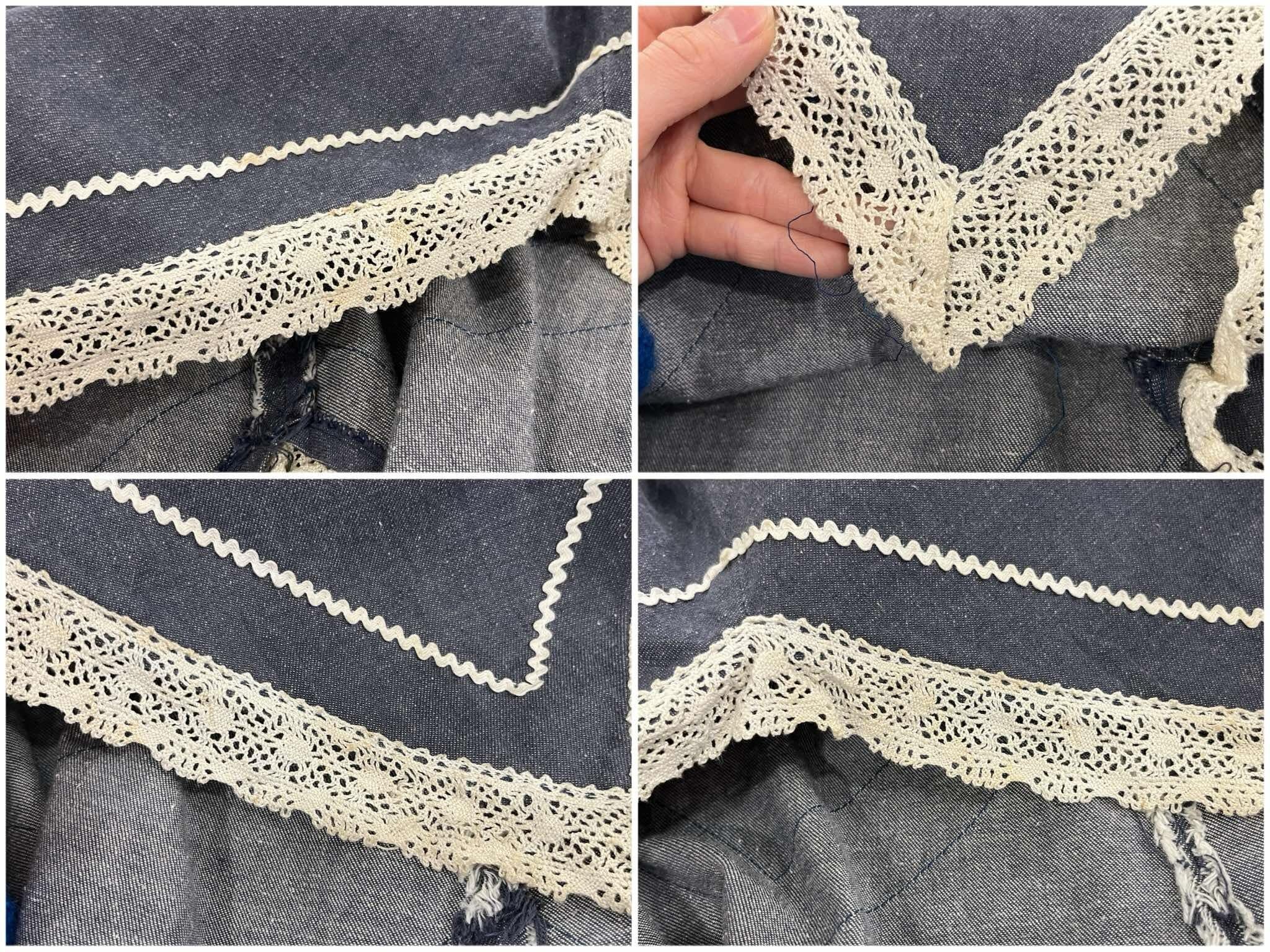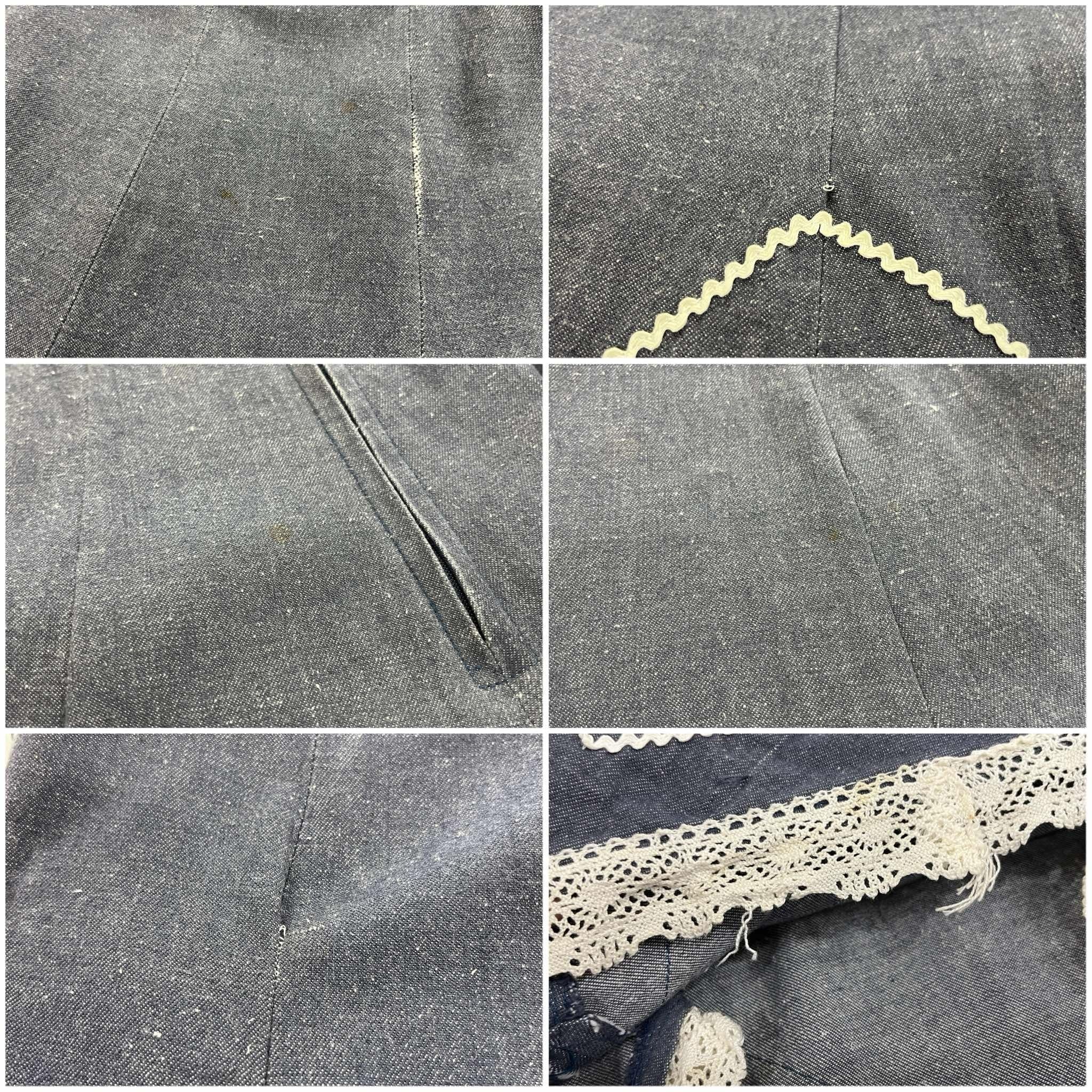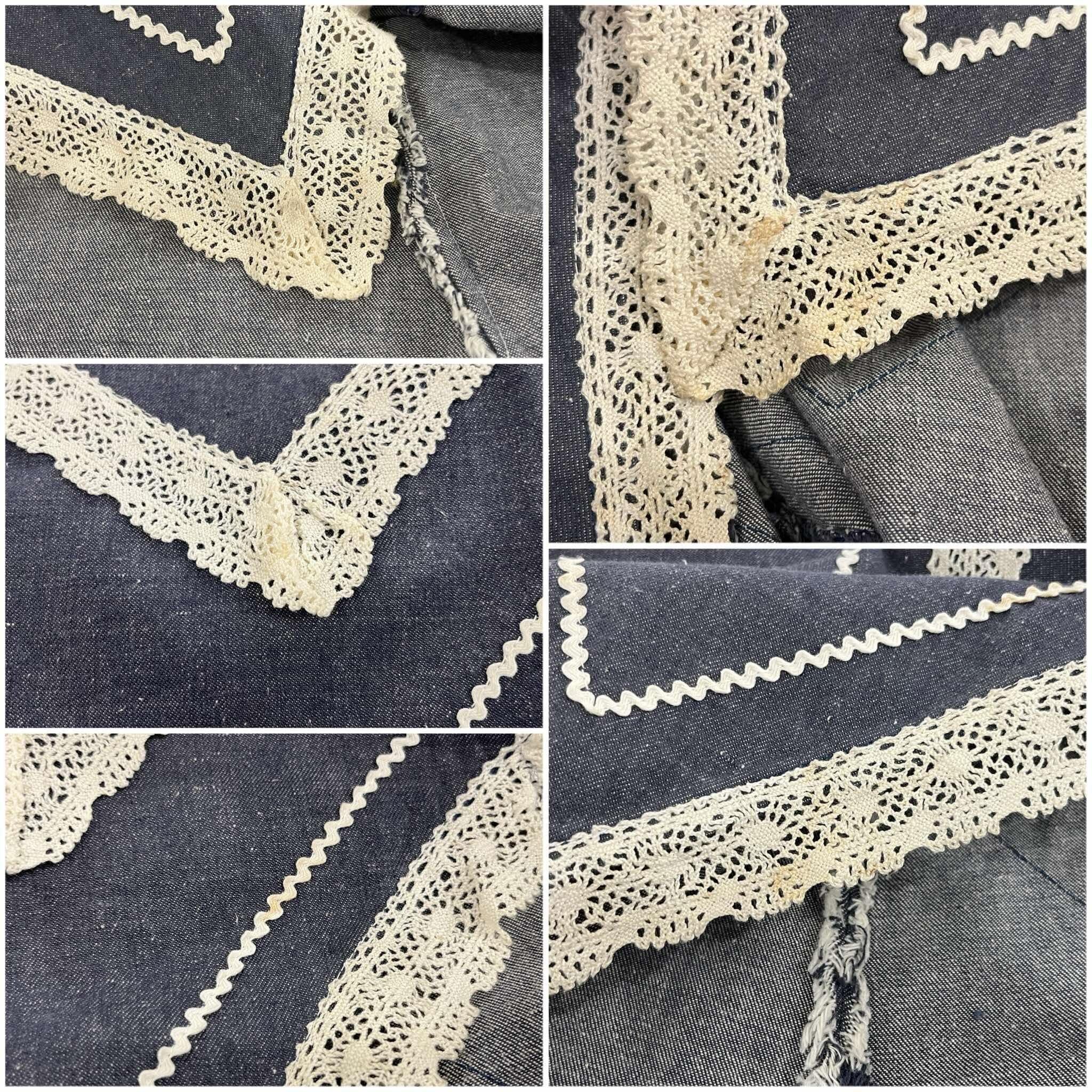 70s blue×white gizagiza lace design denim skirt [l-5046]