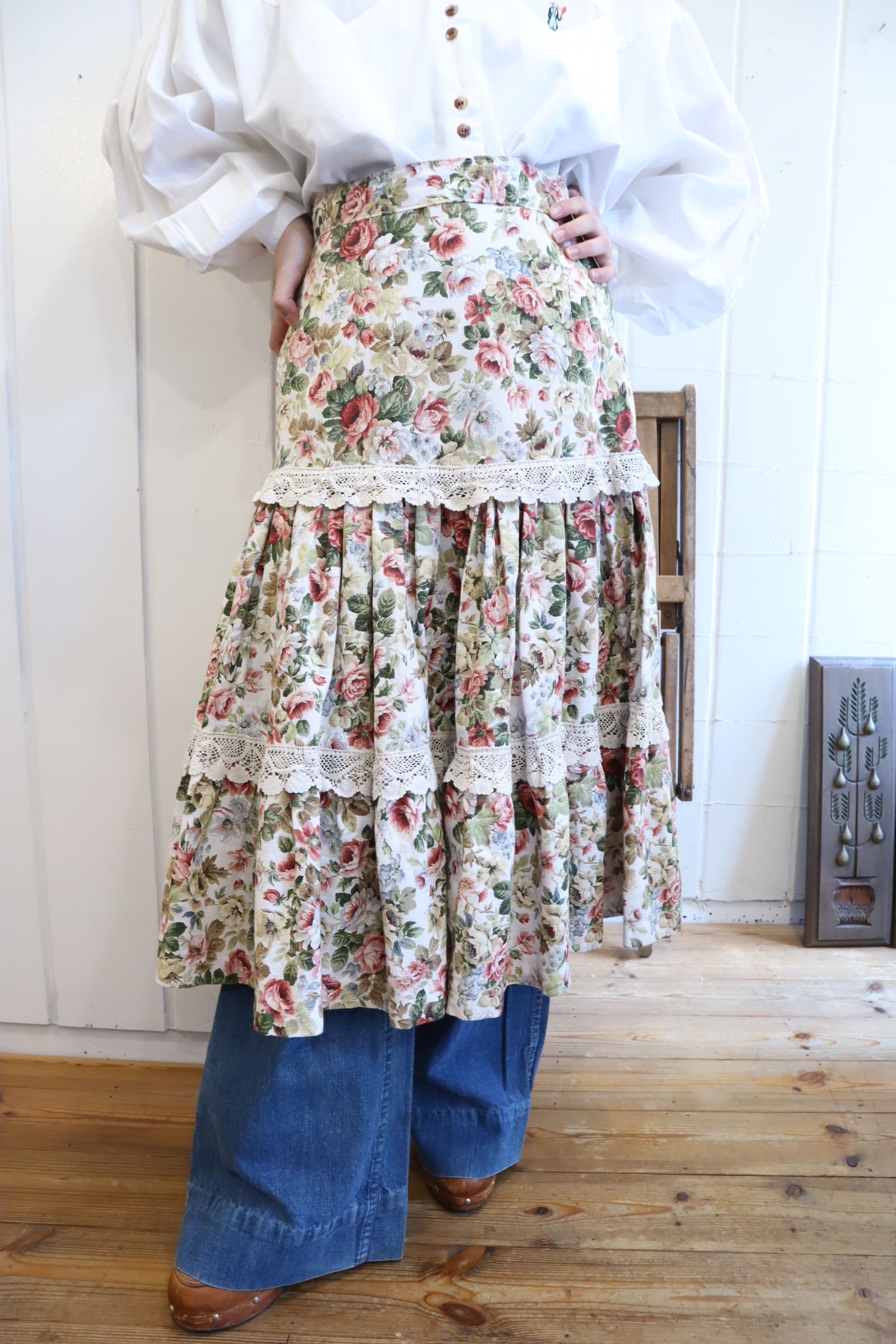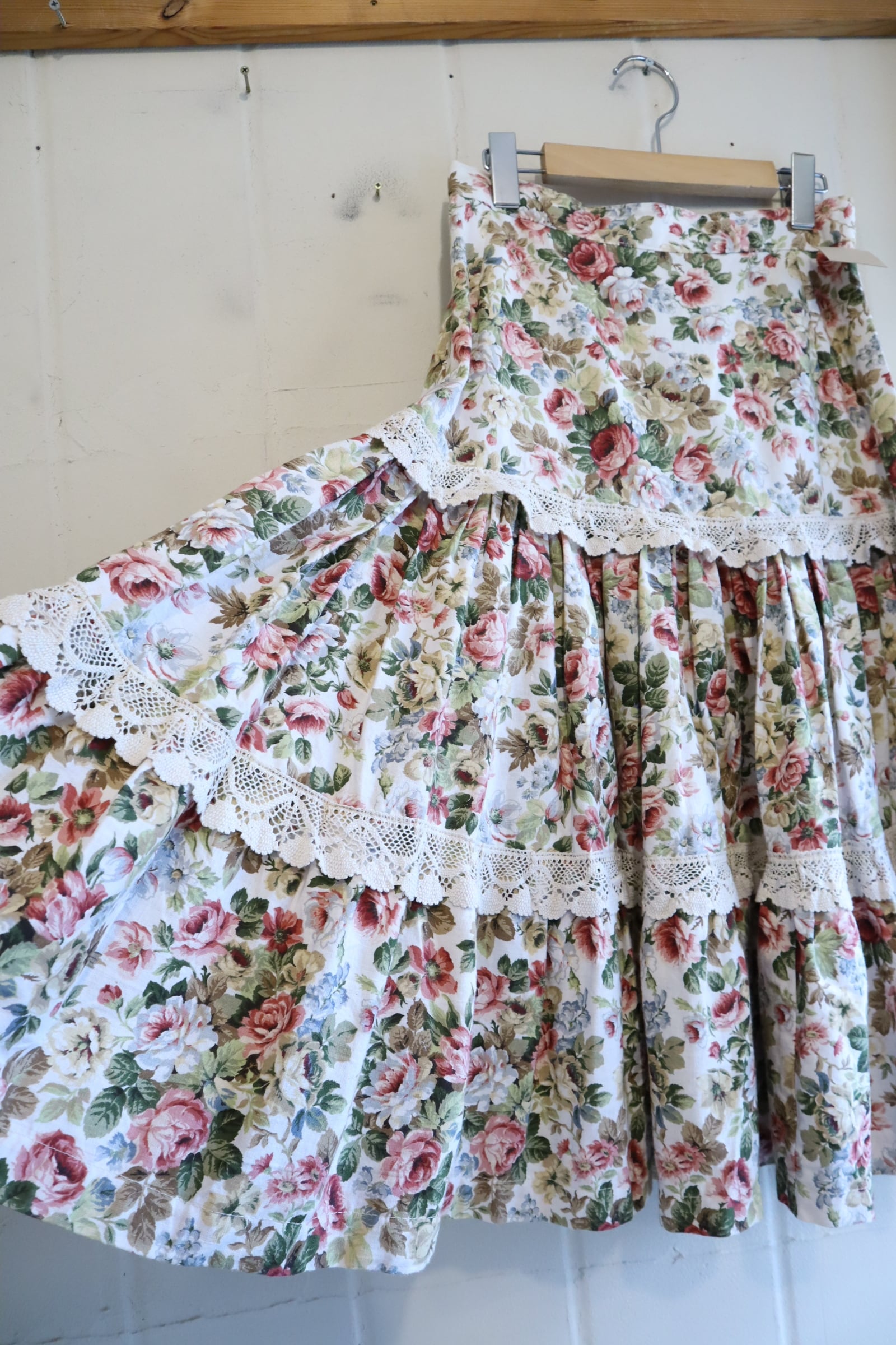 ティアードの切替にレースの装飾が可愛いチロルスカート。