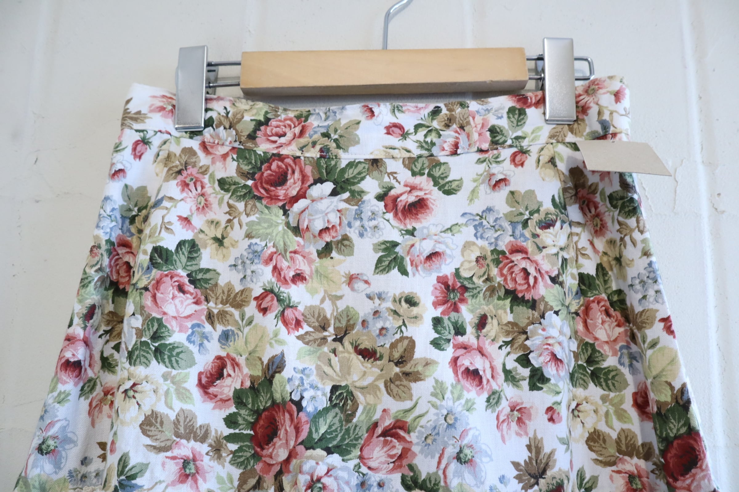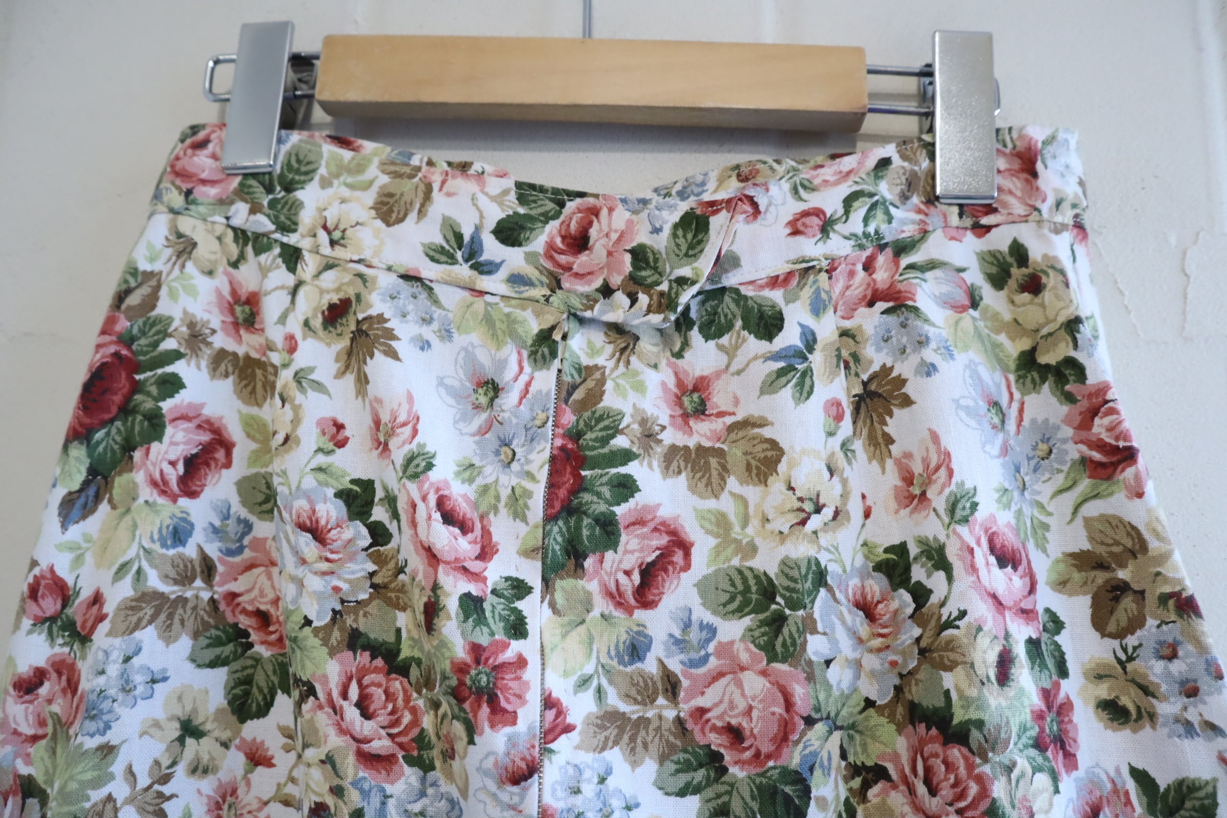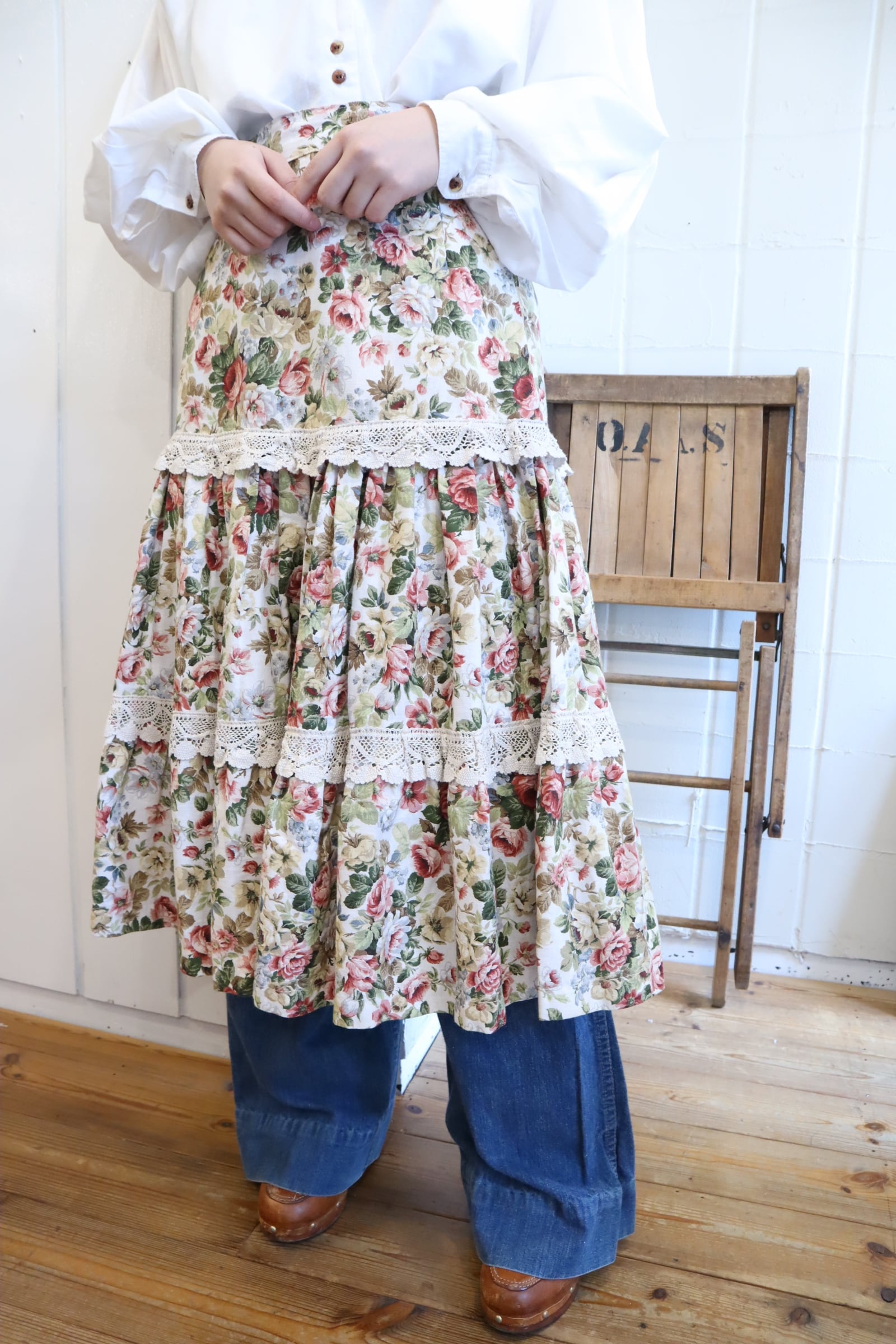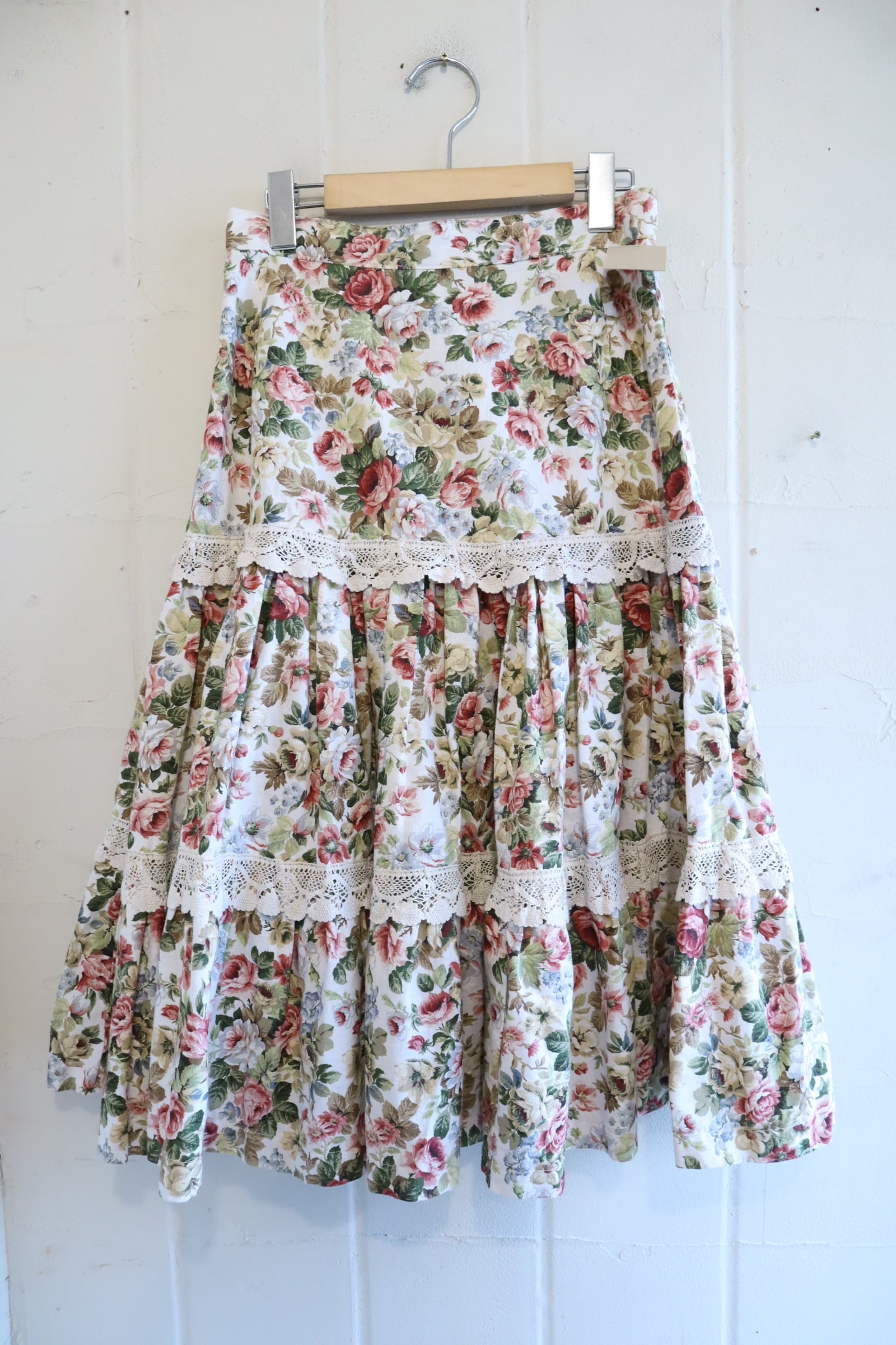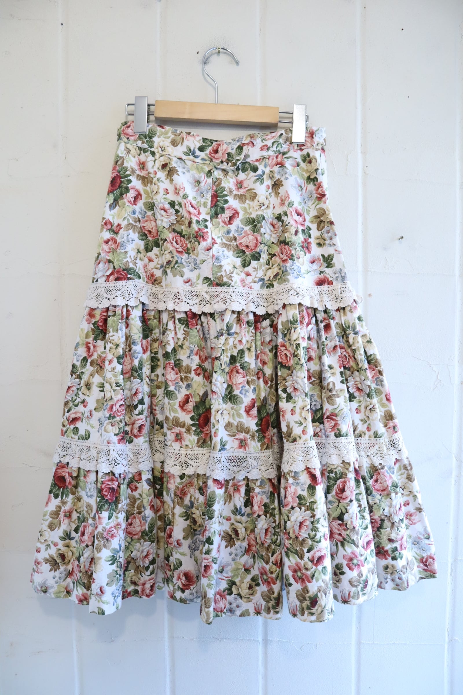 beige×pink flower pattern tiered tyrol skirt [l-5047]