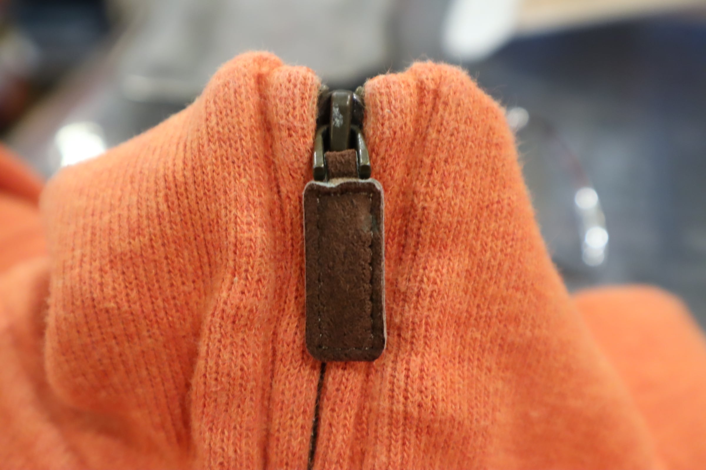 パキっとしたオレンジが目を惹くハーフジップスウェットです。