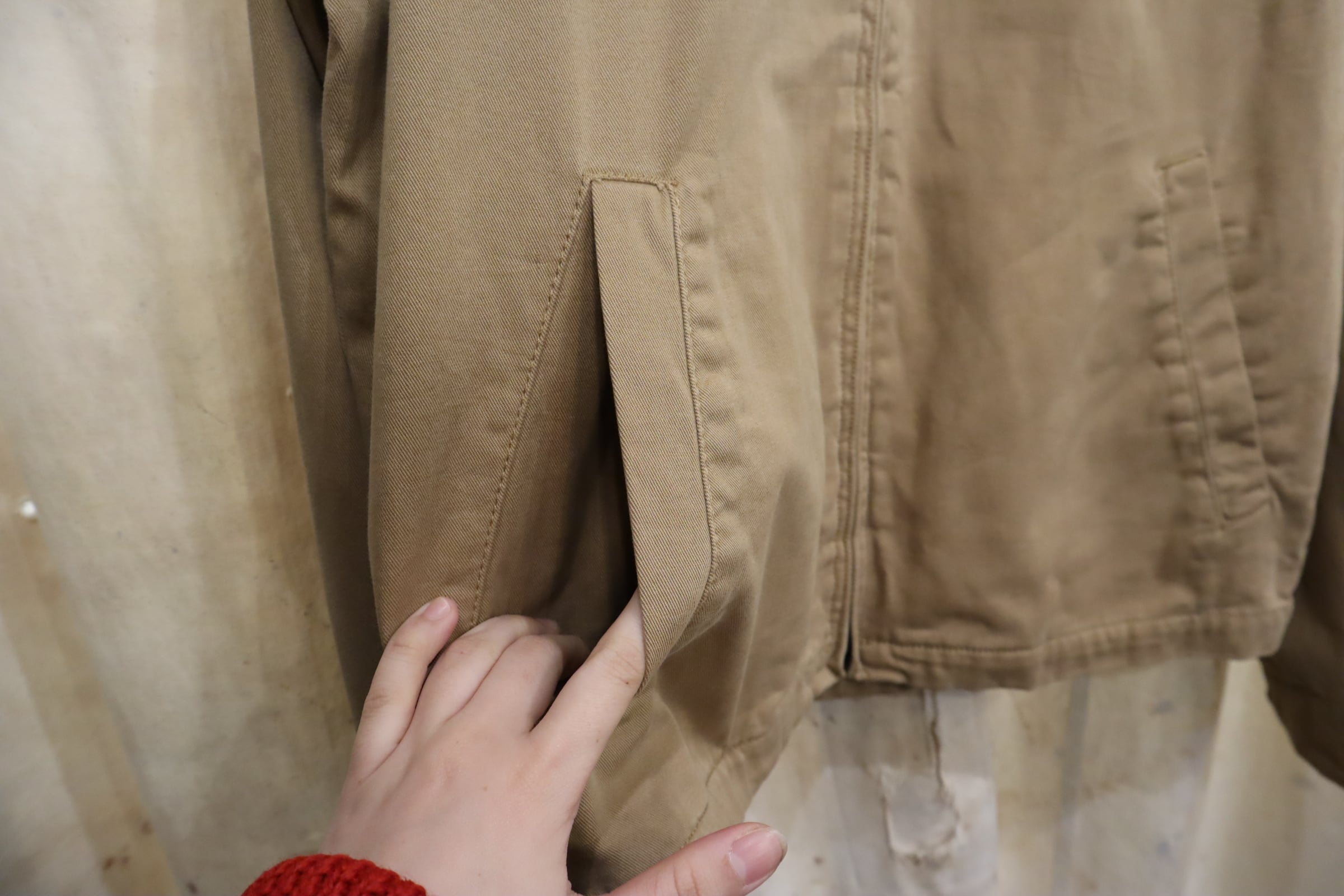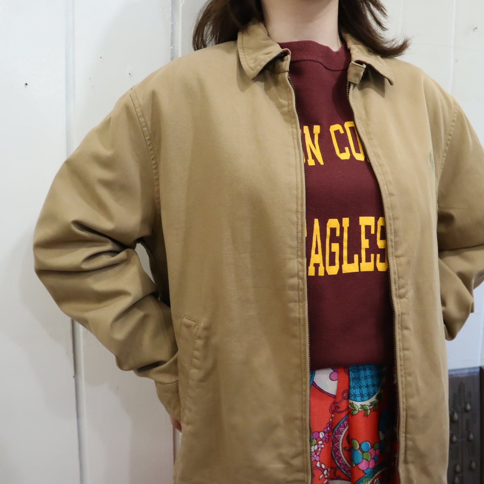 合わせやすいカラーのスウィングジャケットです。