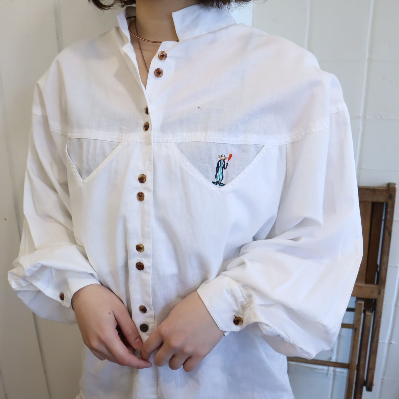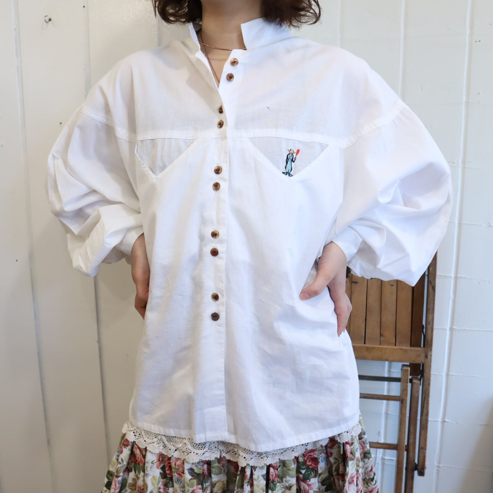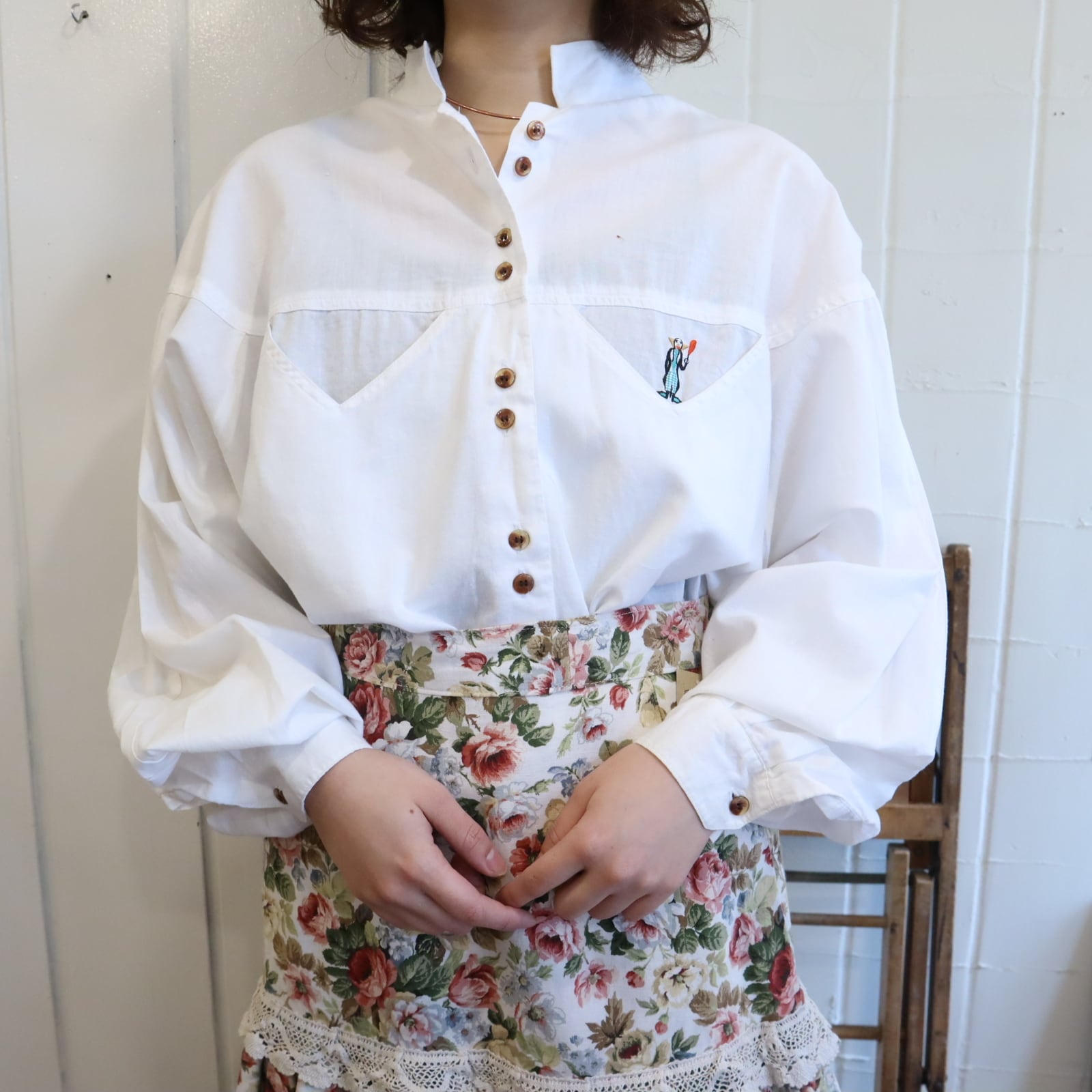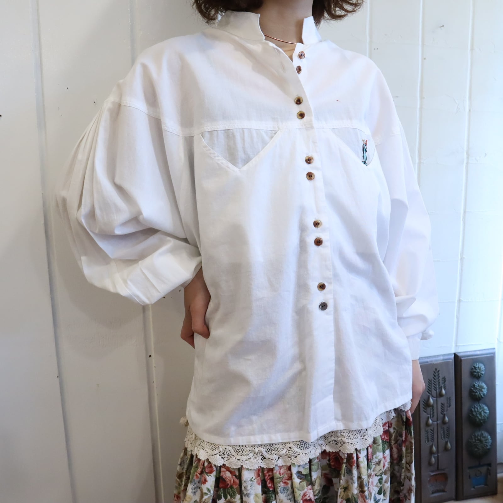 white pierrot embroidery tyrol shirt [l-5058]