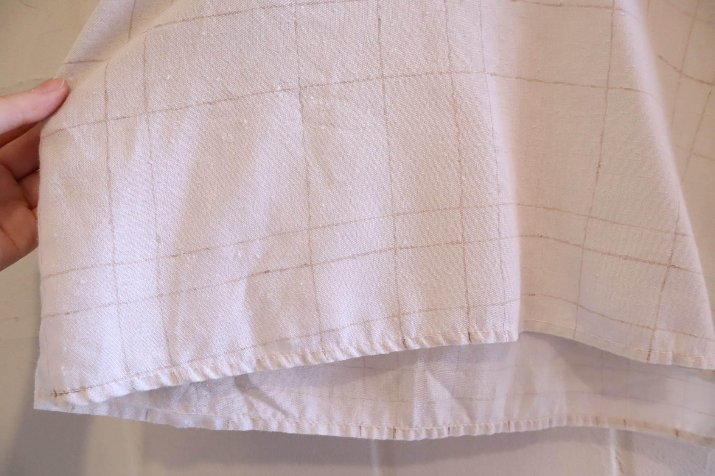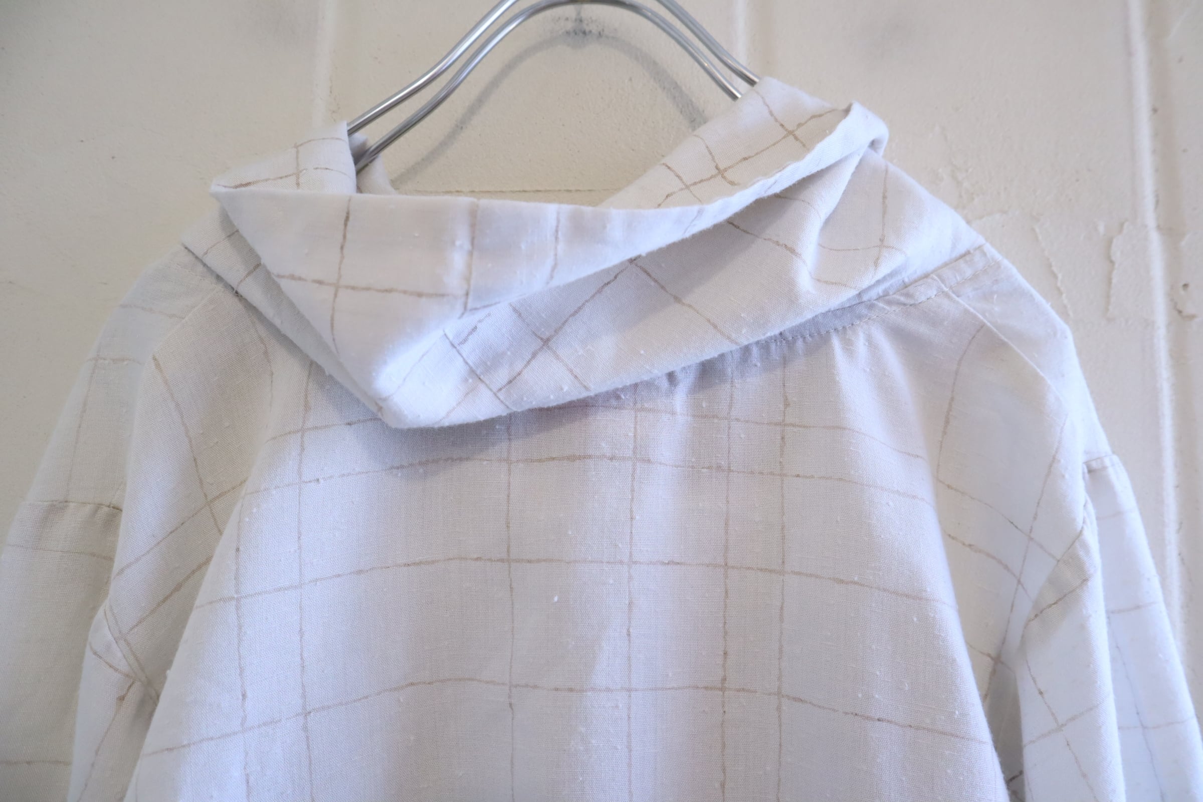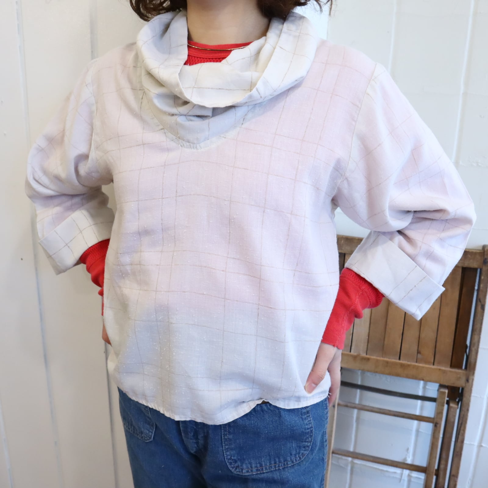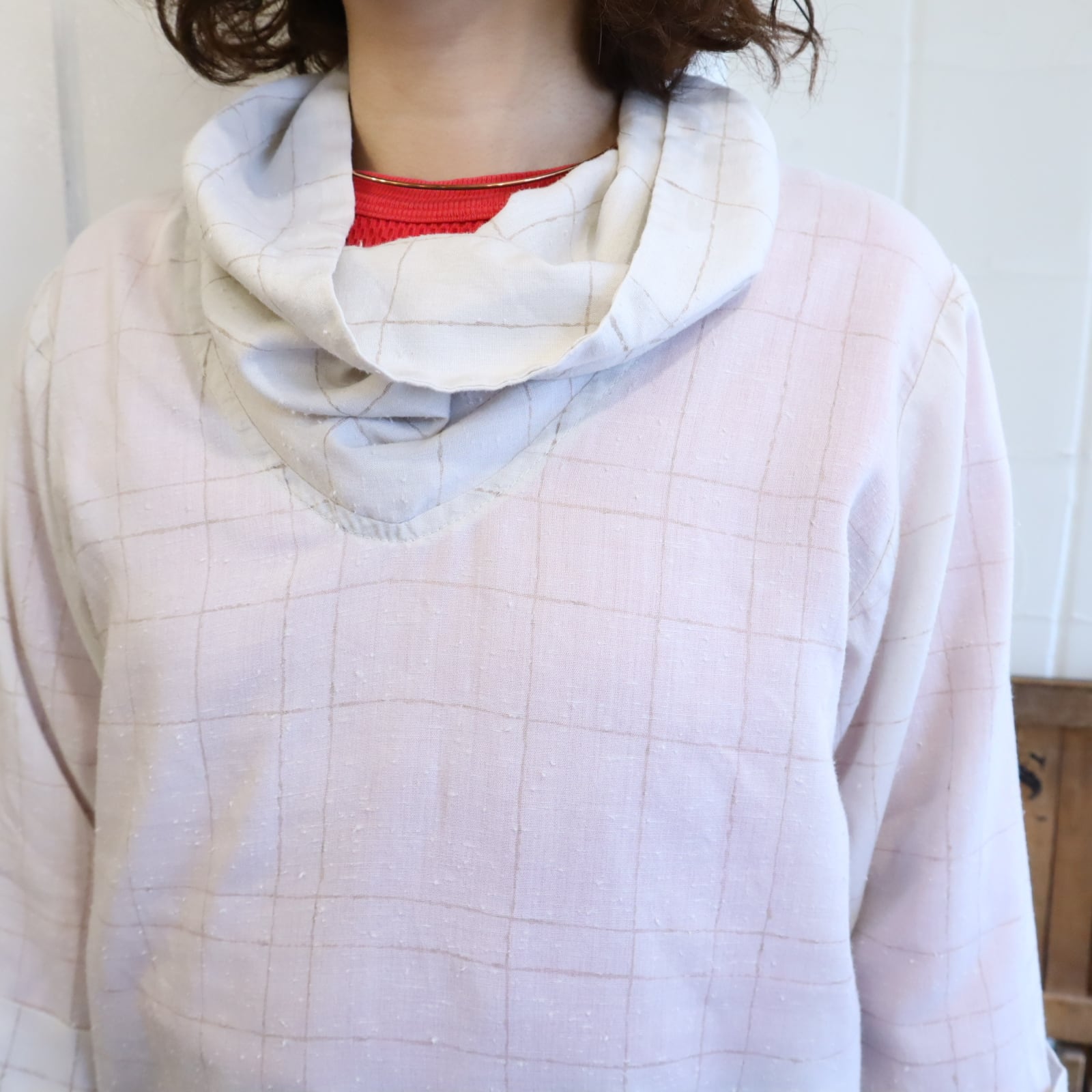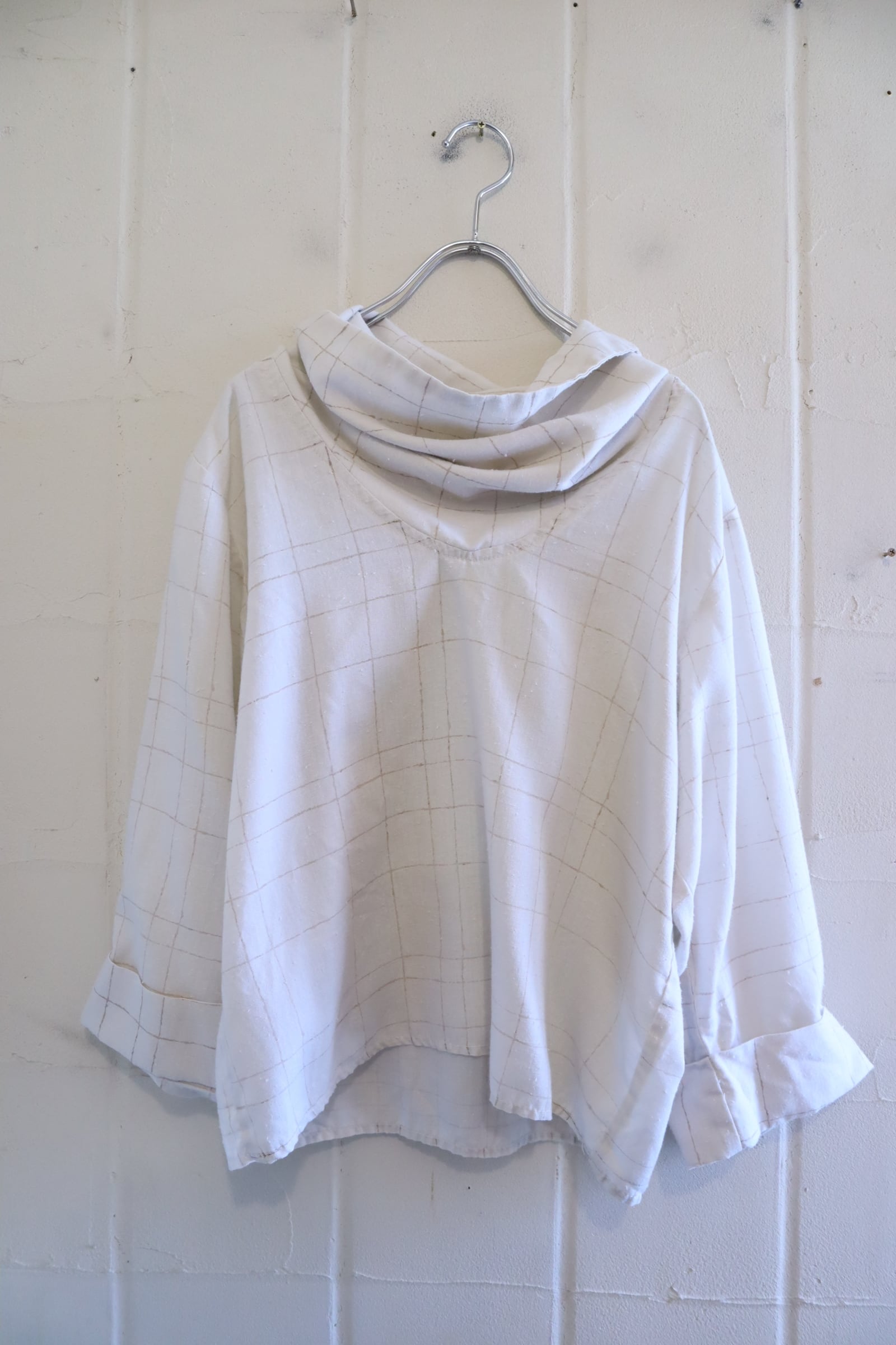 70s-80s offwhite×lightbrown plaid tops [l-5060]