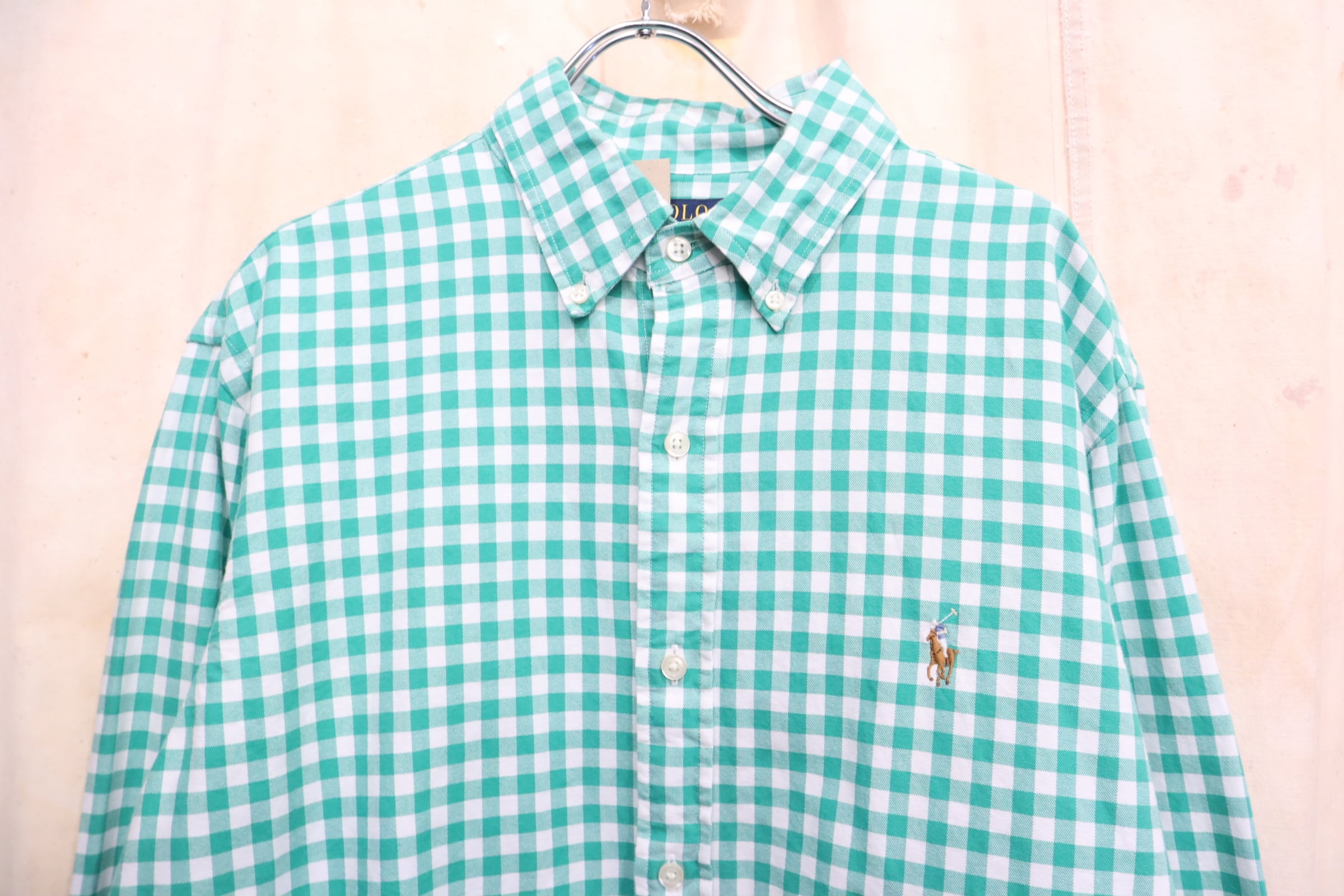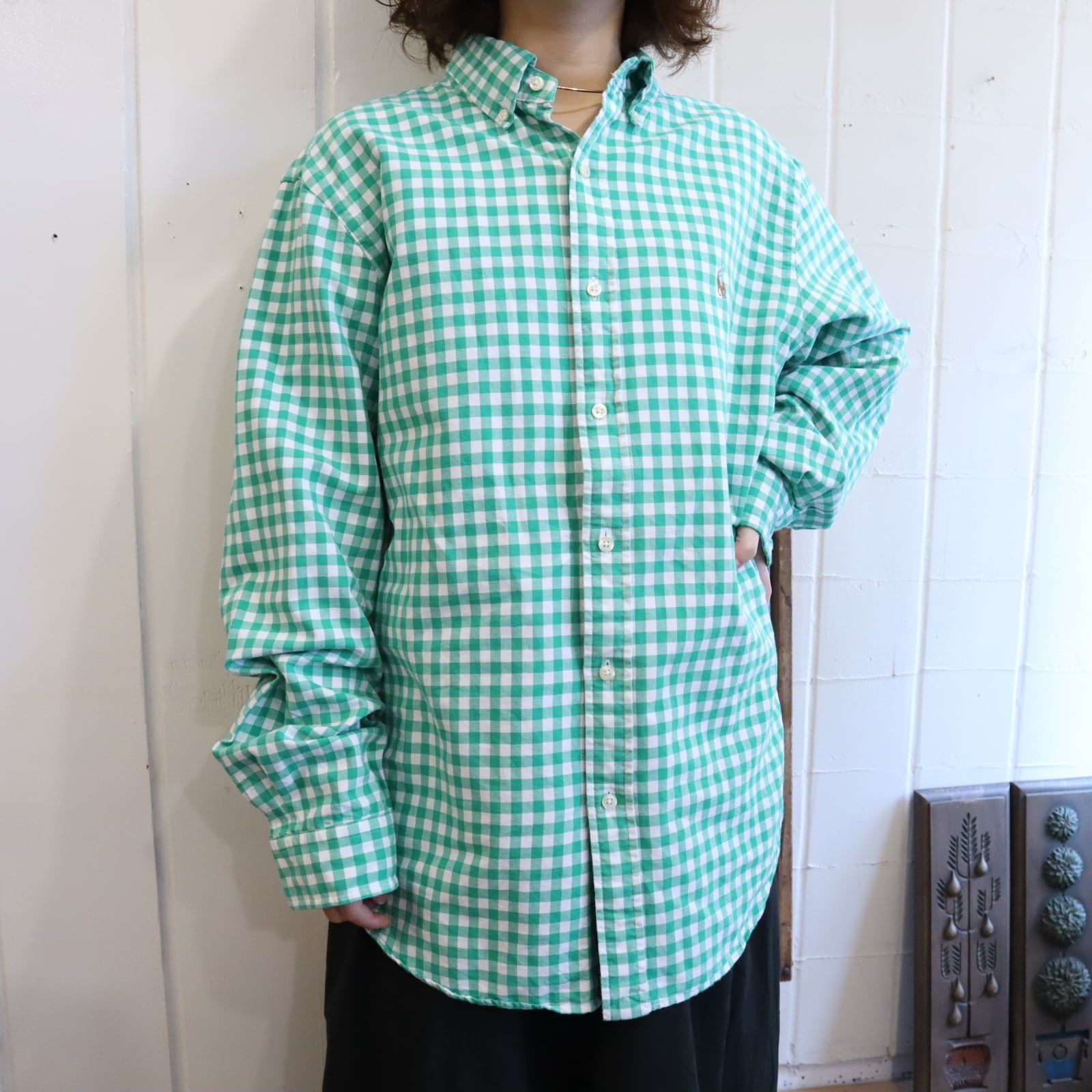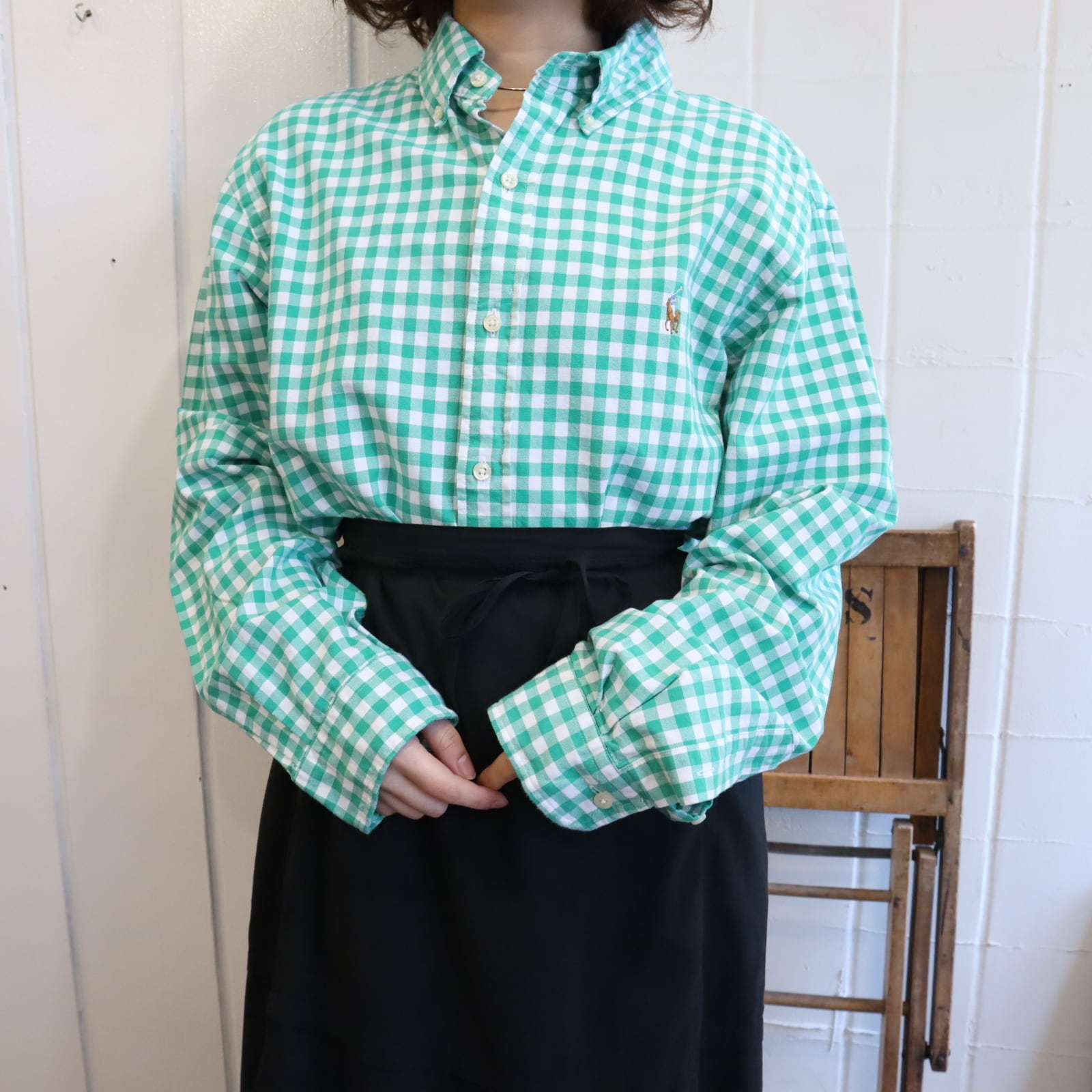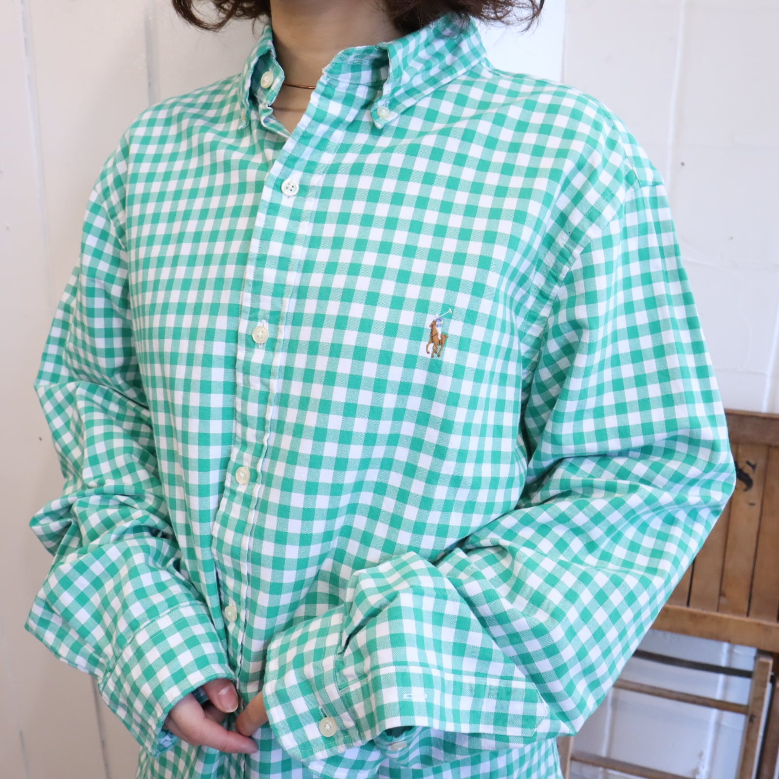 Ralph Lauren lightgreen×white gingham chck shirt [l-5067]