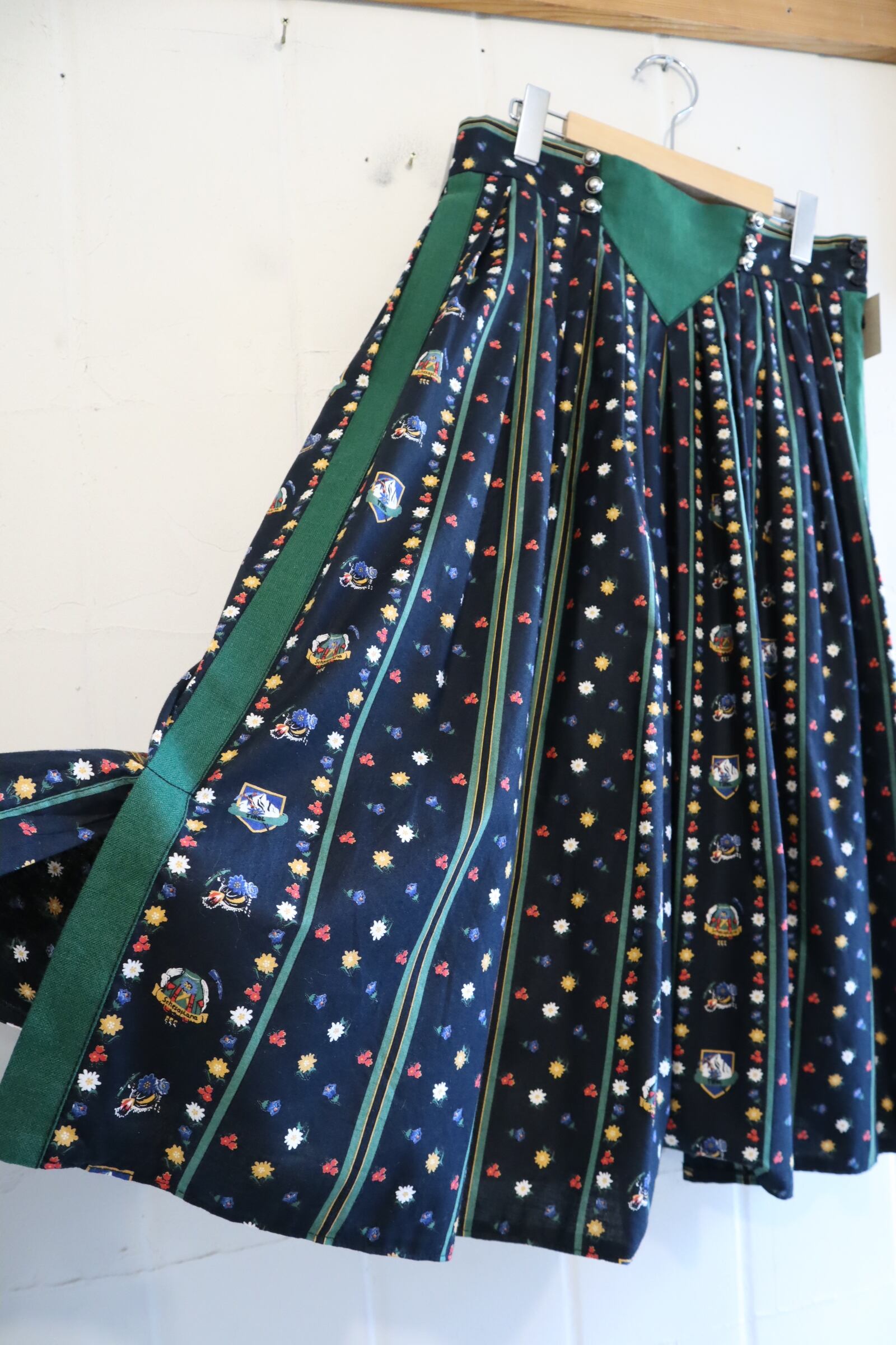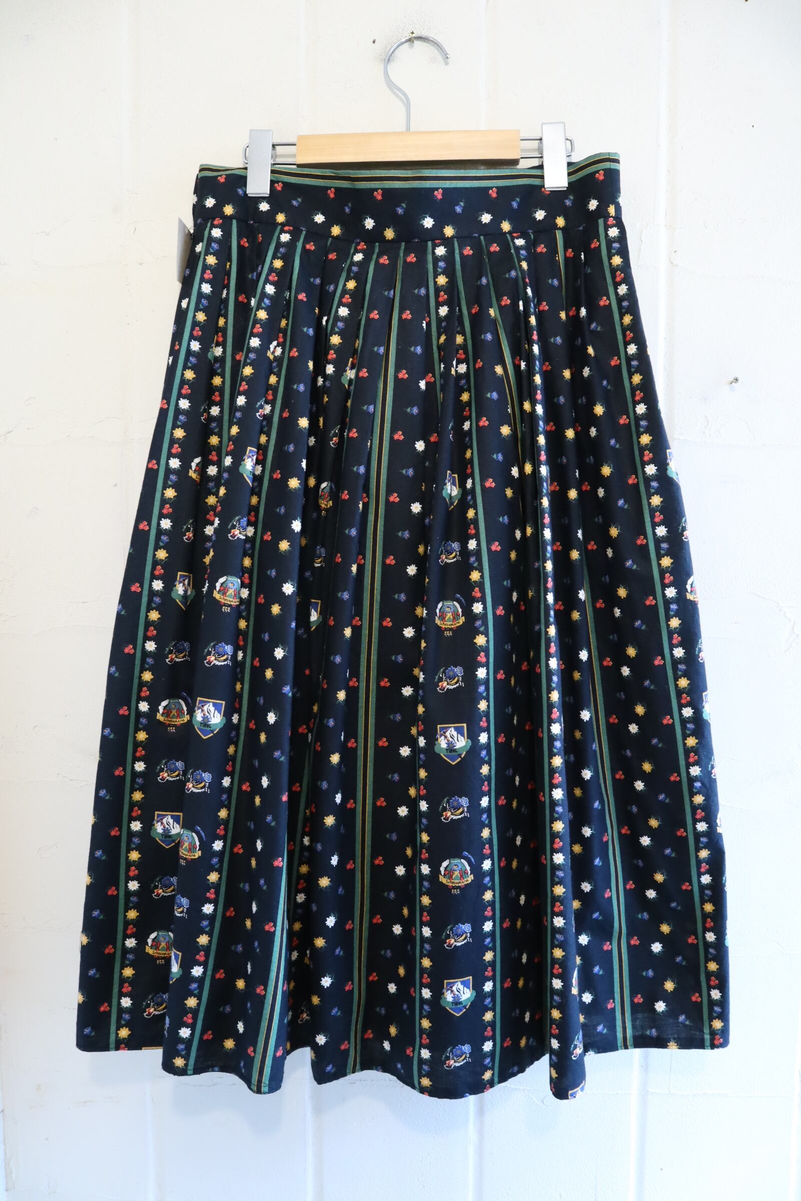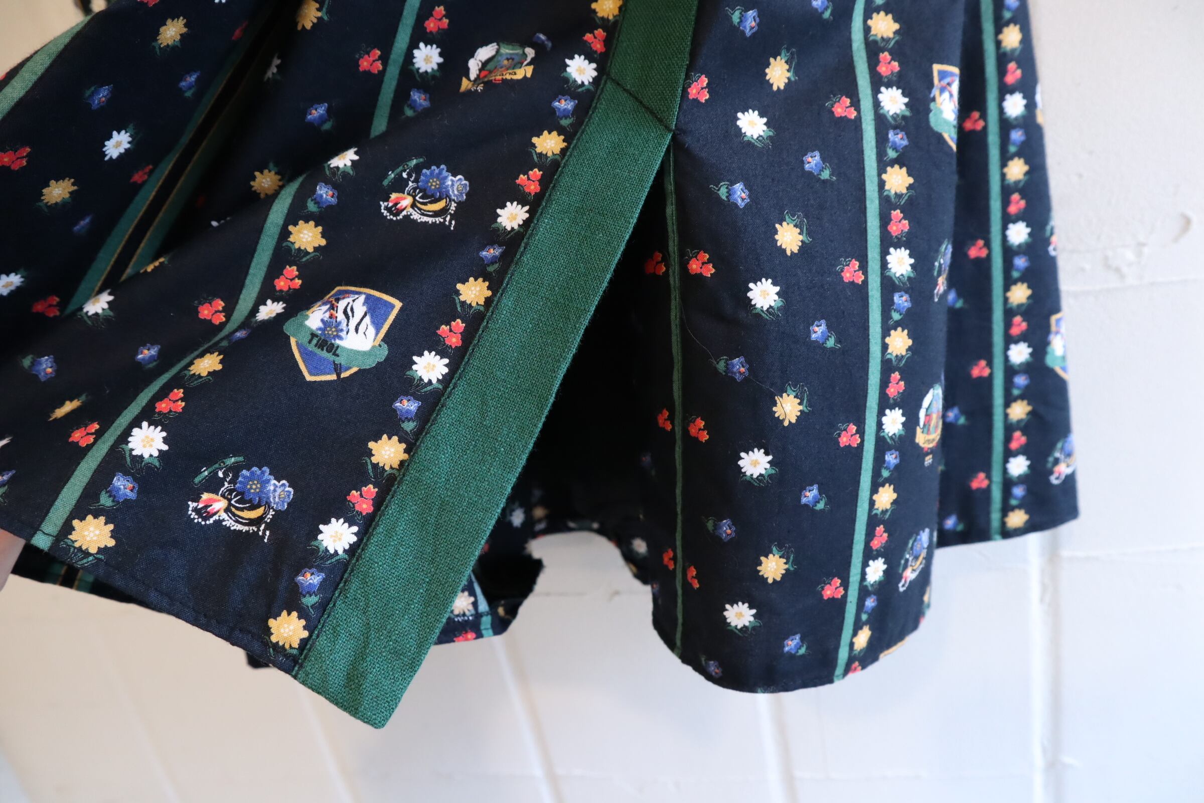 お花とチロル地方の名所のようなプリントが可愛いチロルスカート。