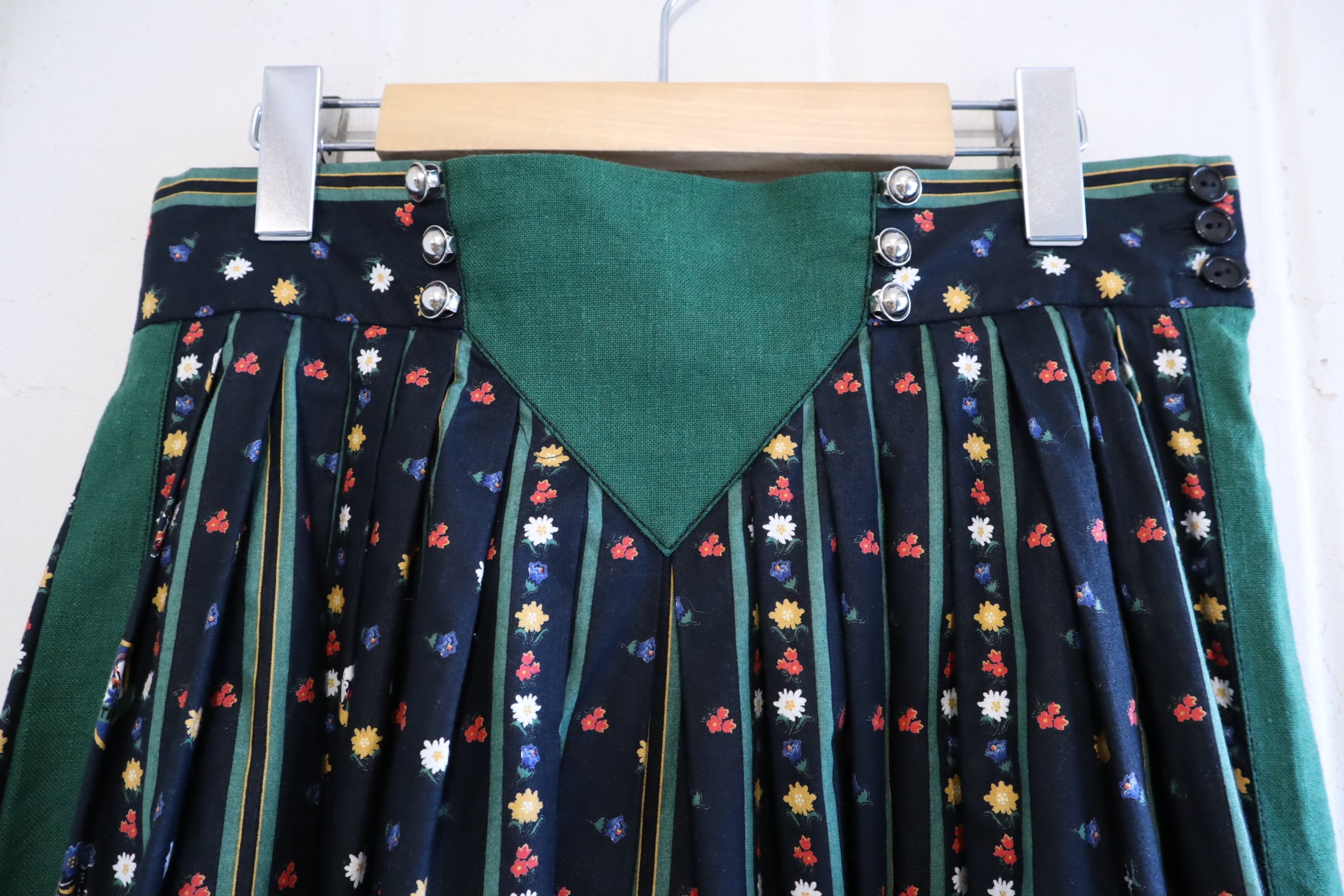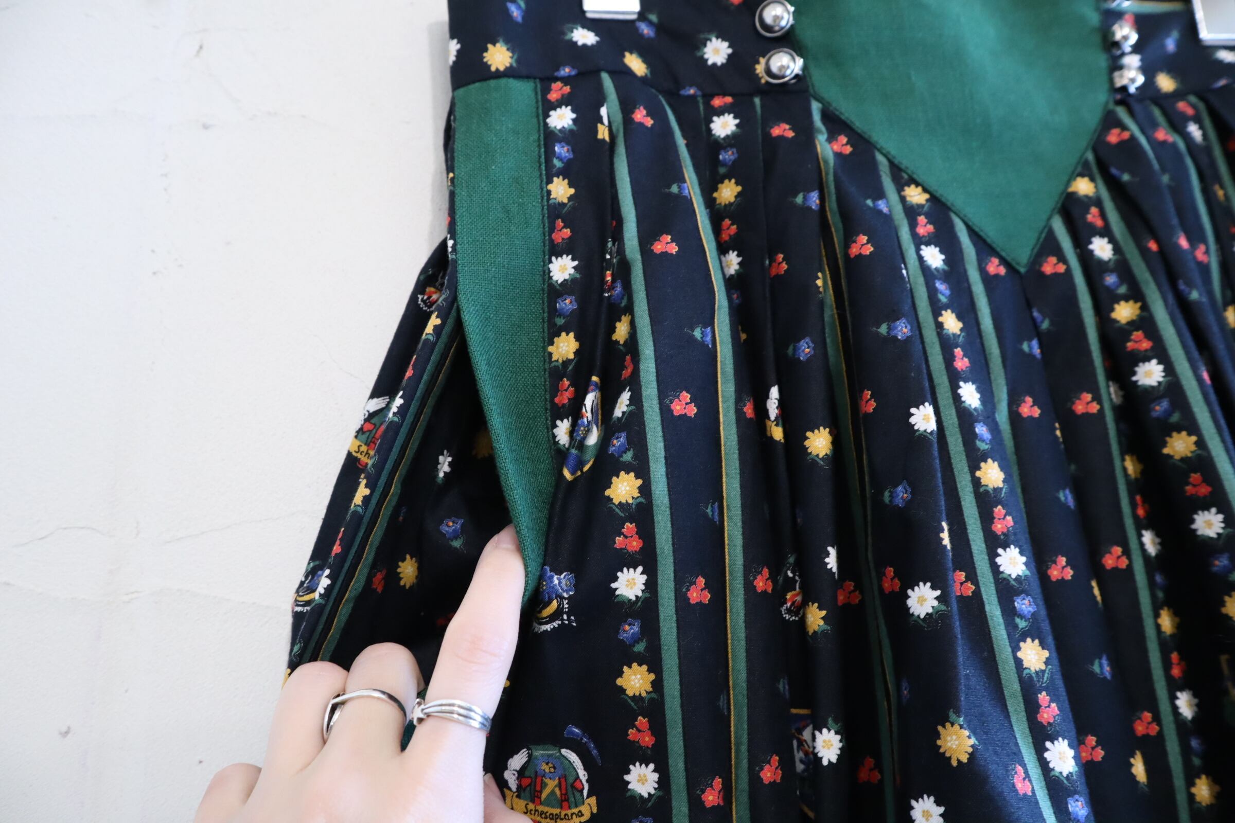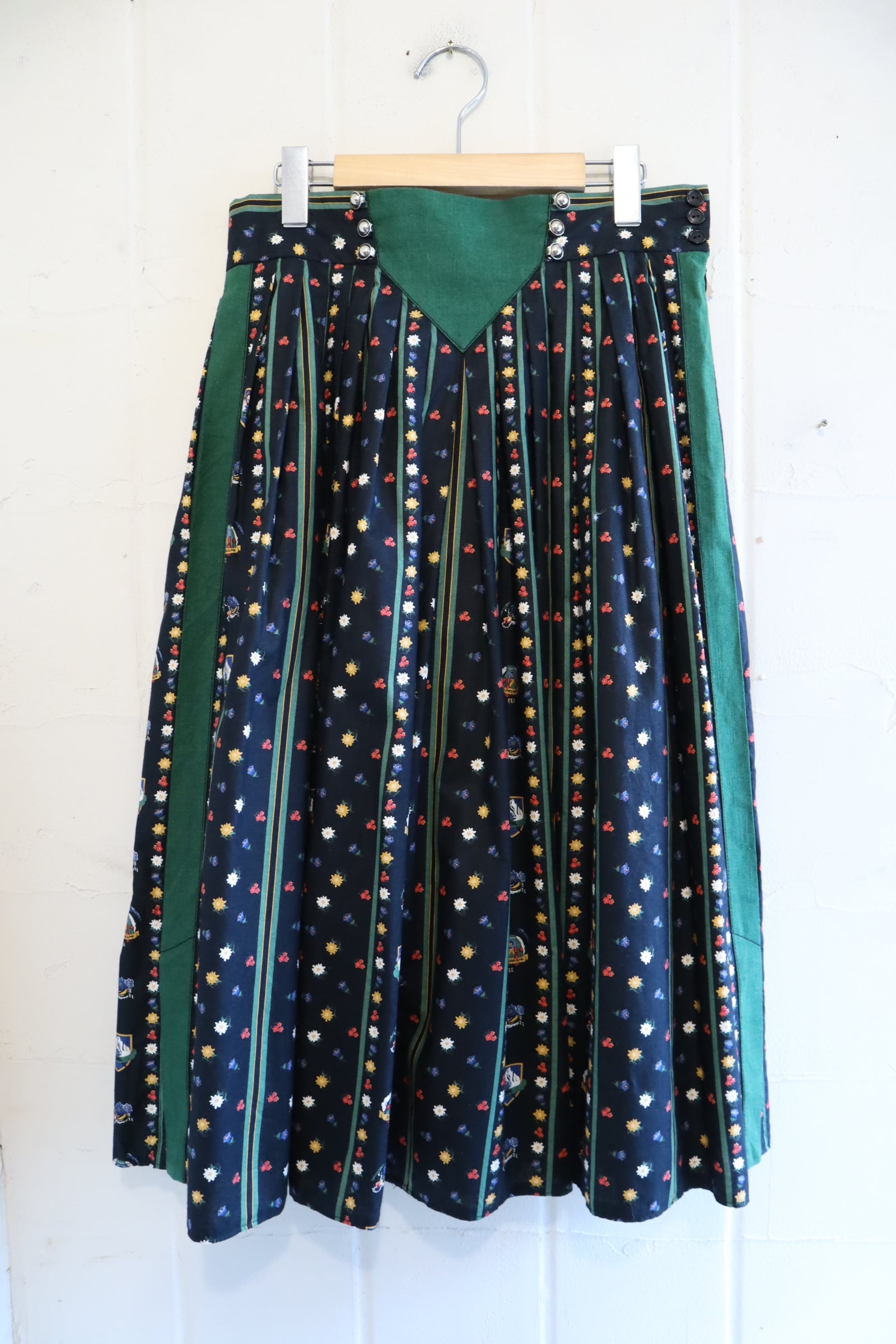 black×green flower pattern tyrol skirt [l-5069]
