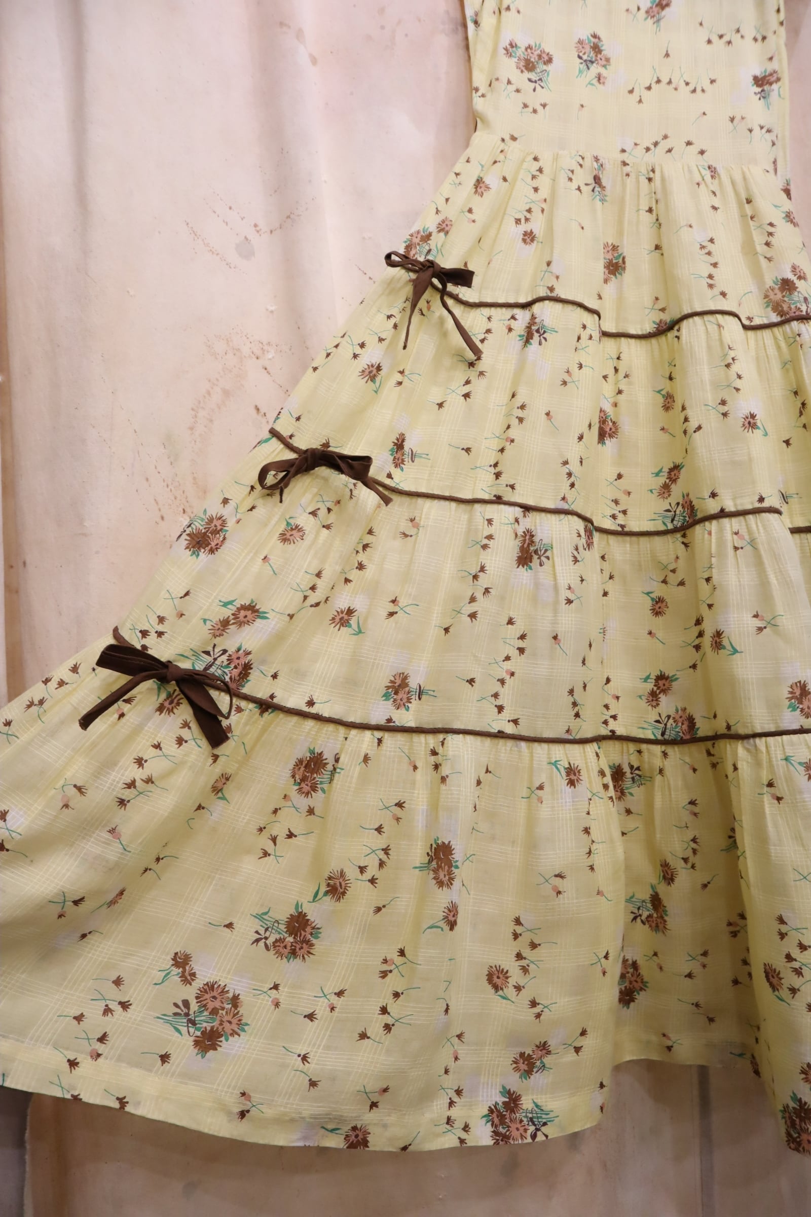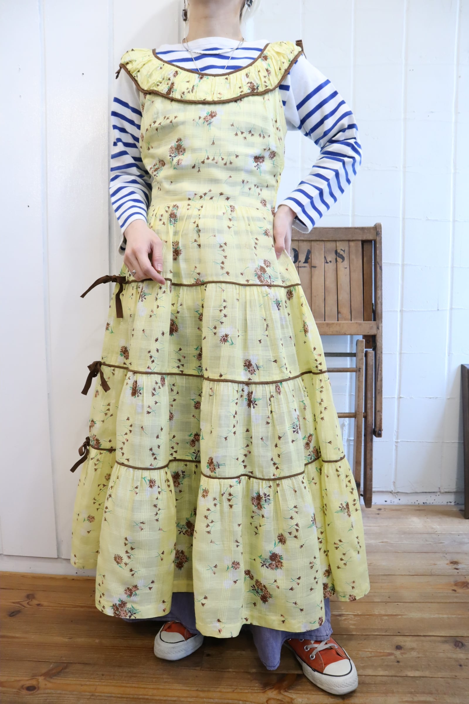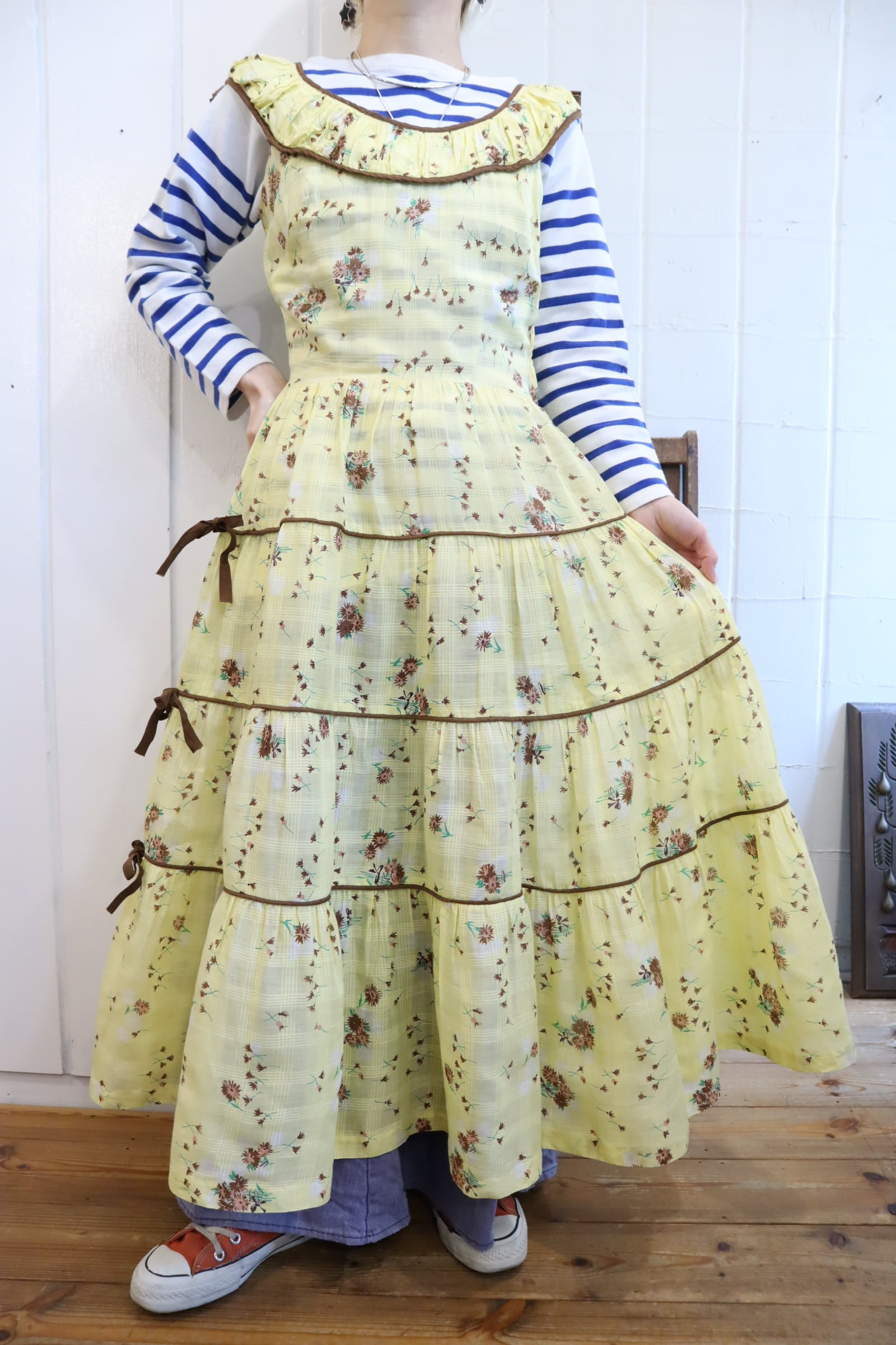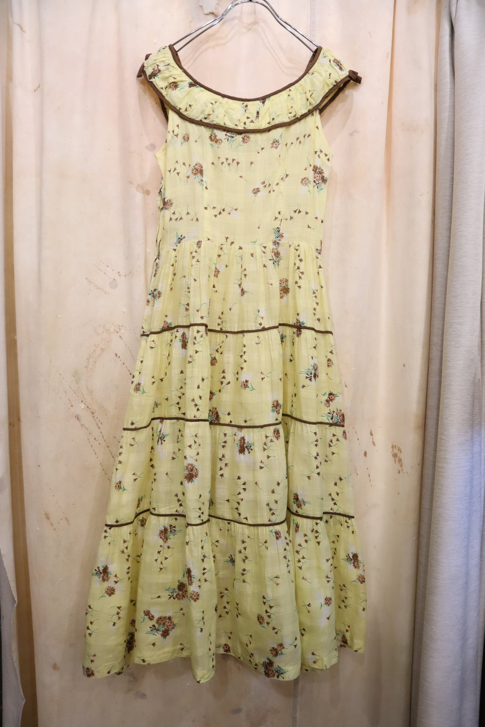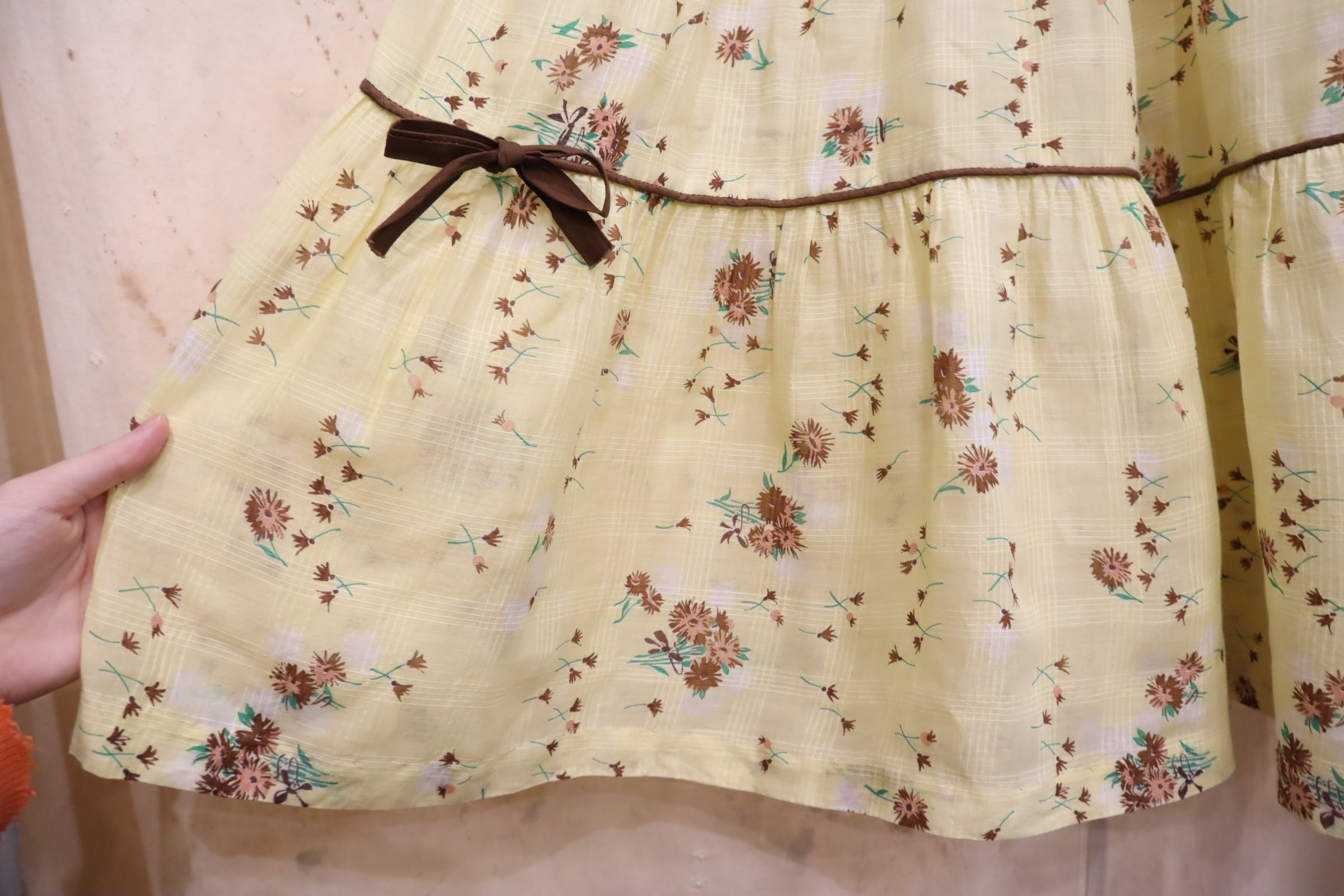 イエロー×ブラウンの間違いなしの配色がキュートな50sドレスです。