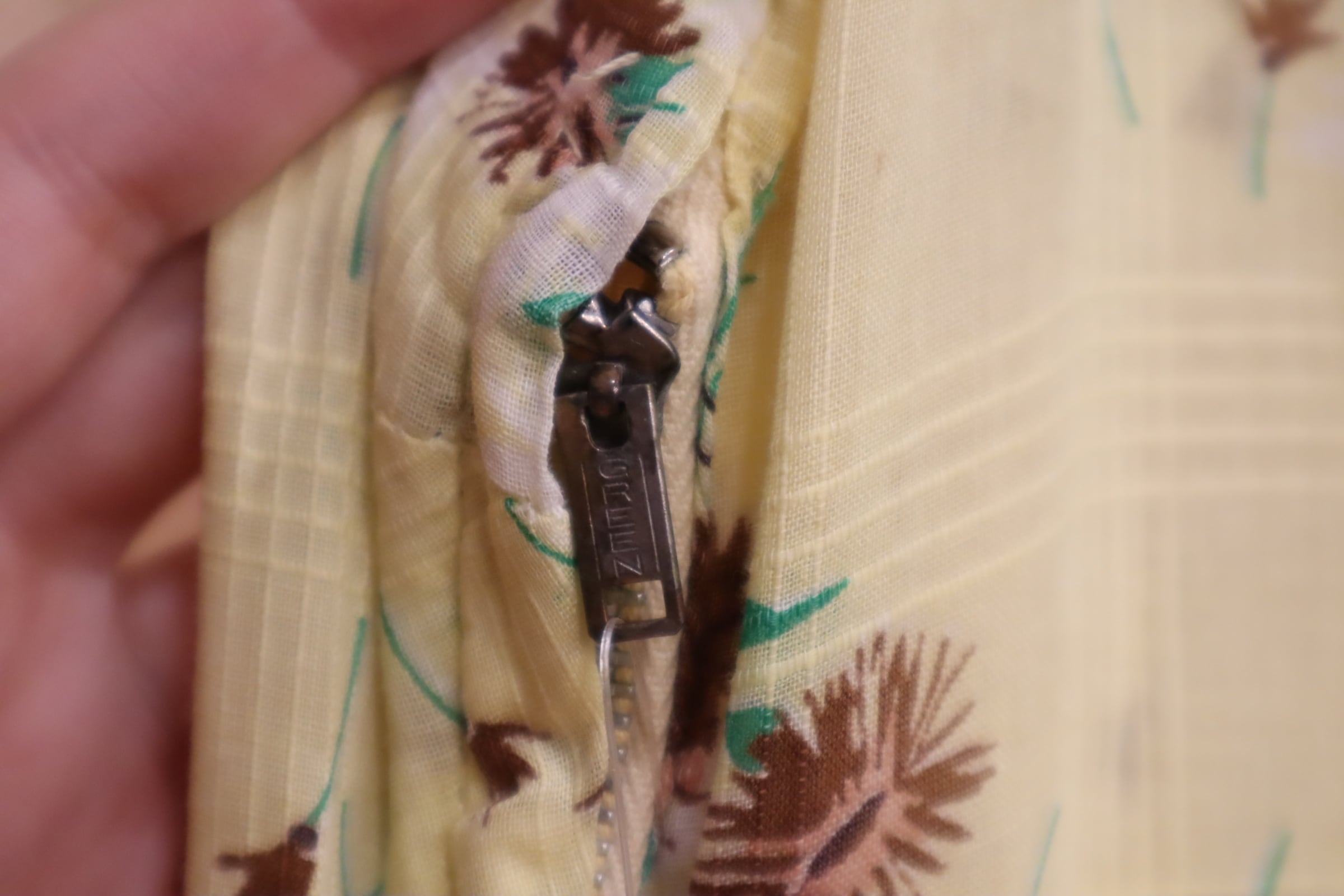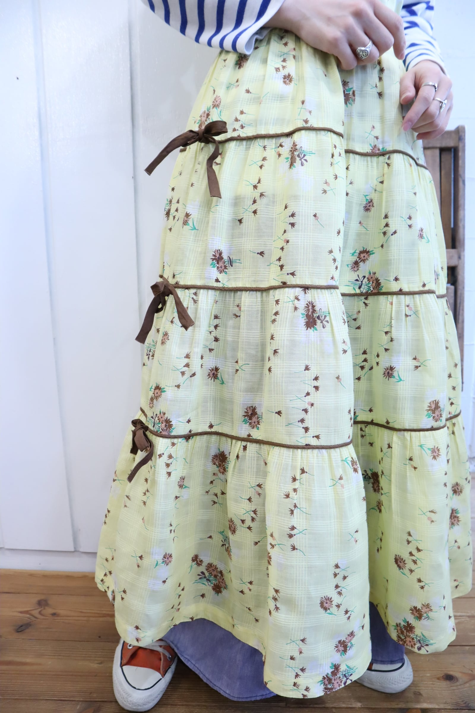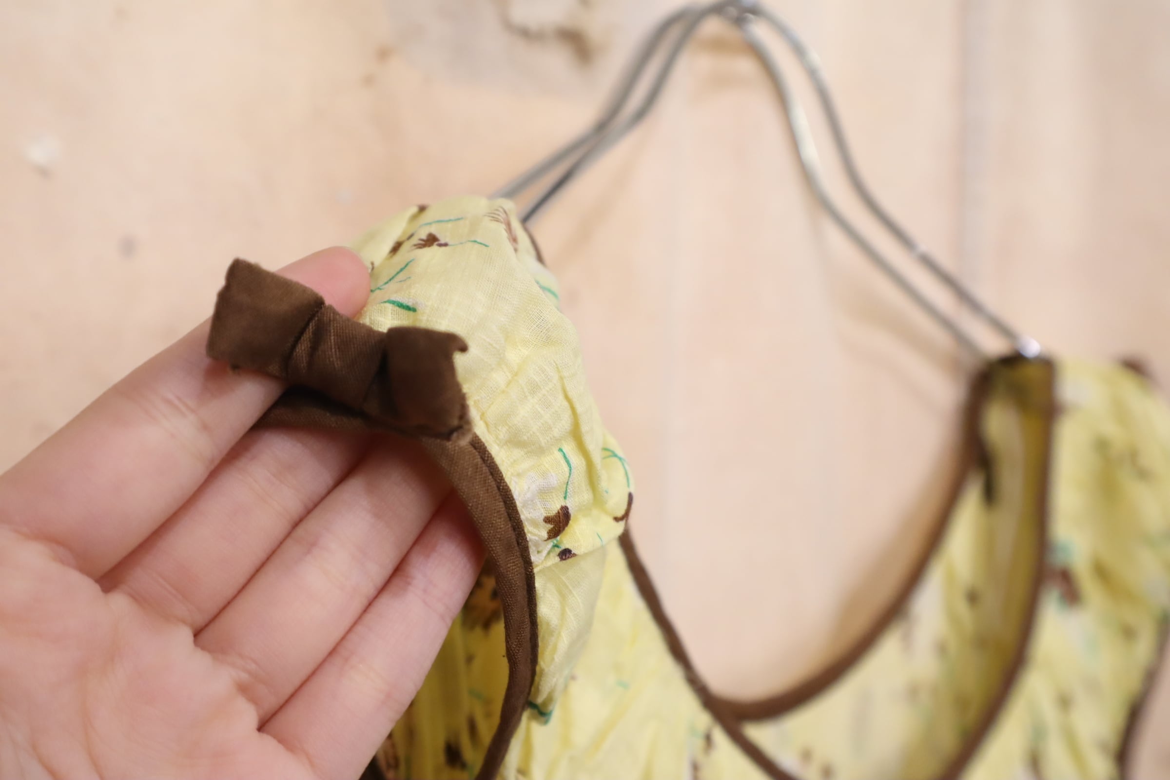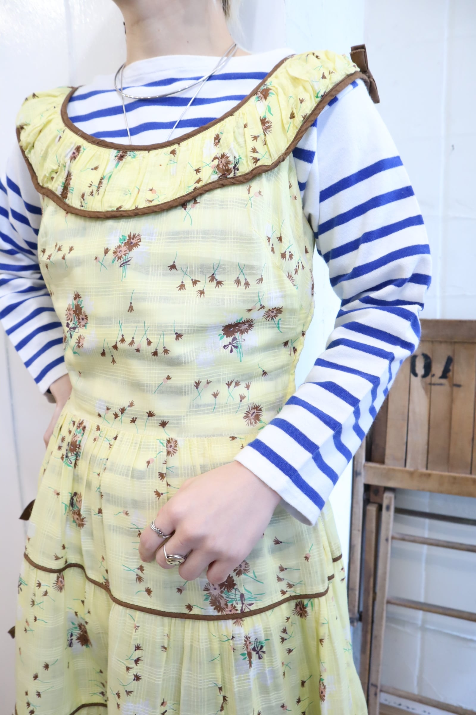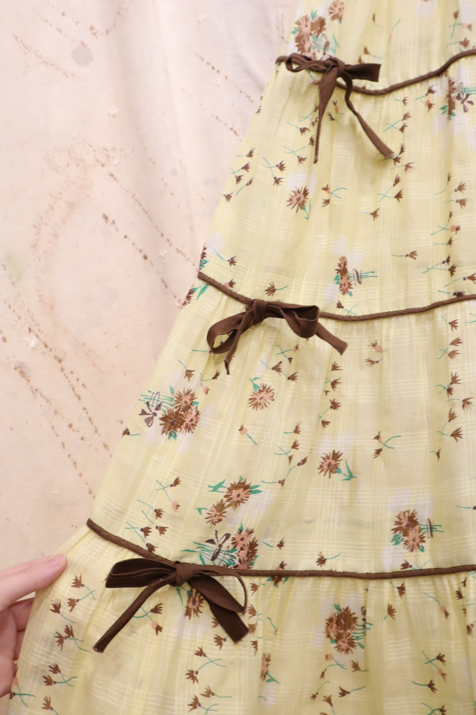イエロー×ブラウンの間違いなしの配色がキュートな50sドレスです。
