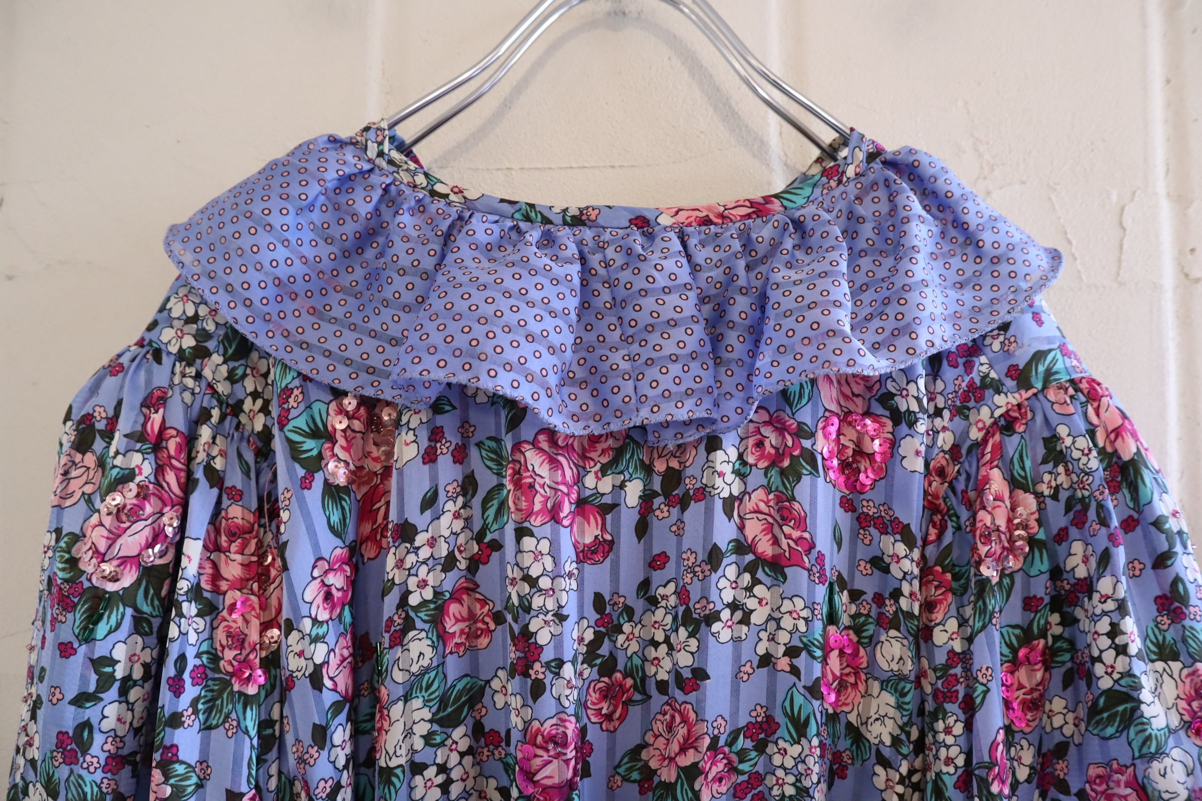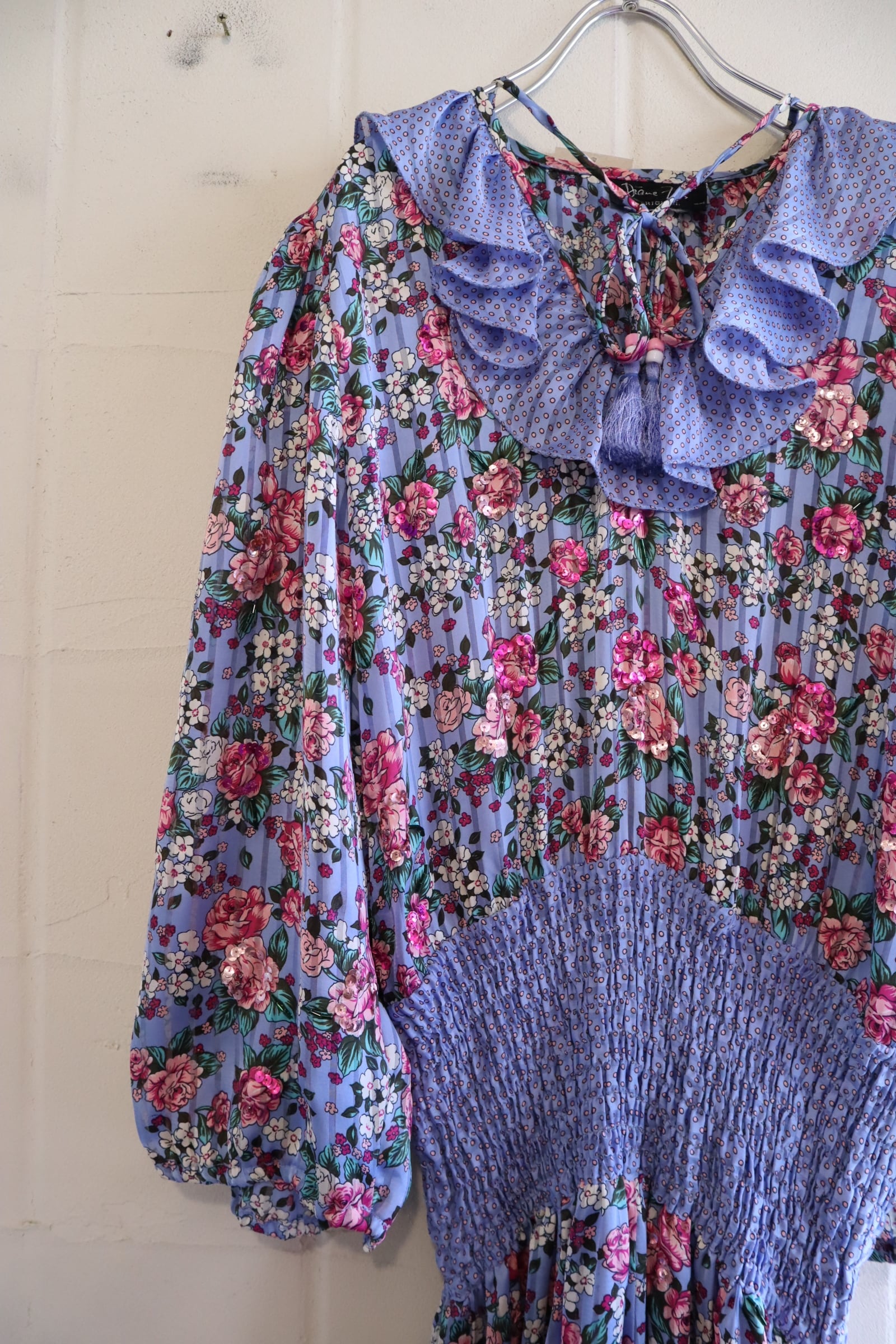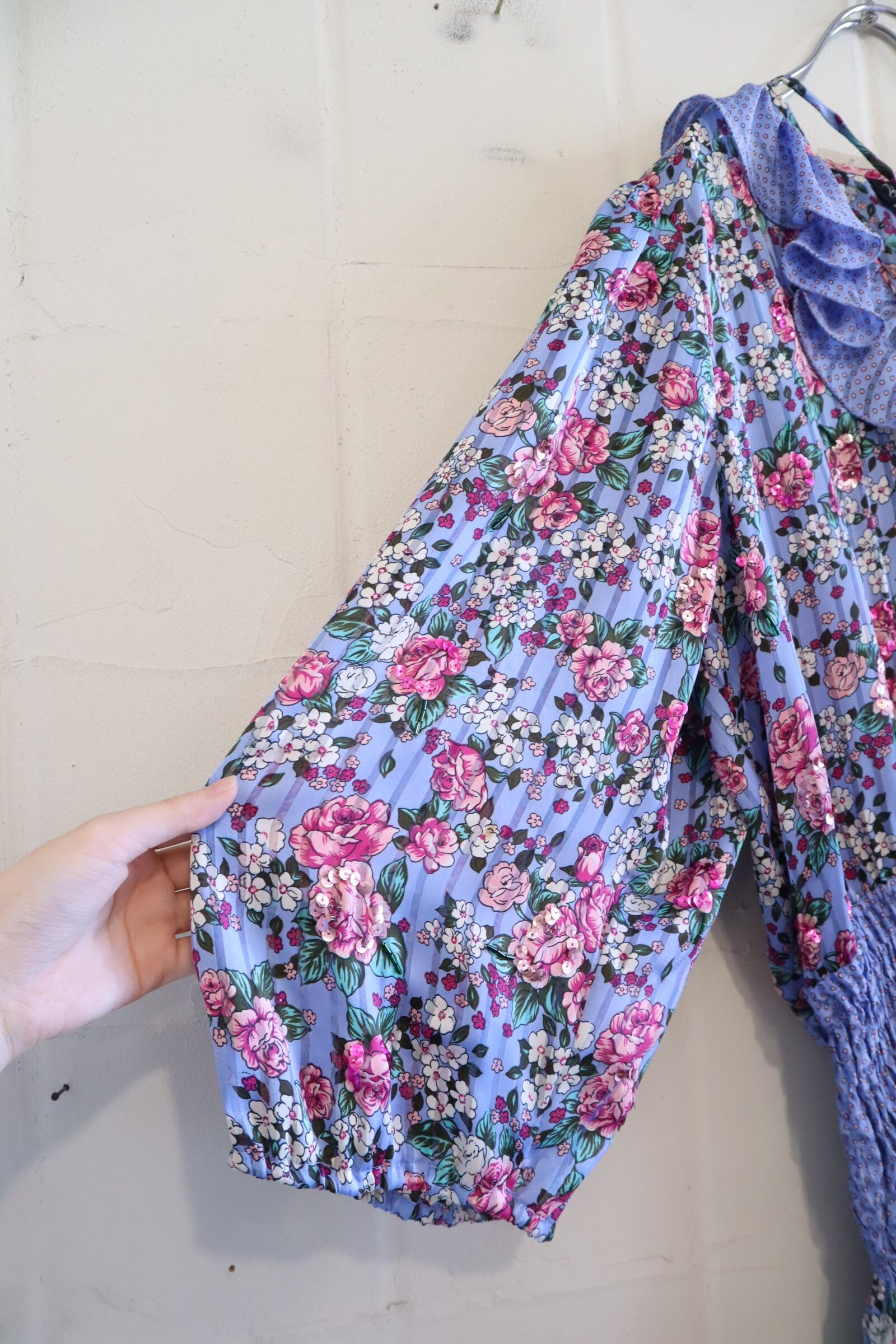 80s bluepurple×pink flower&dot sequin dress [l-5082]