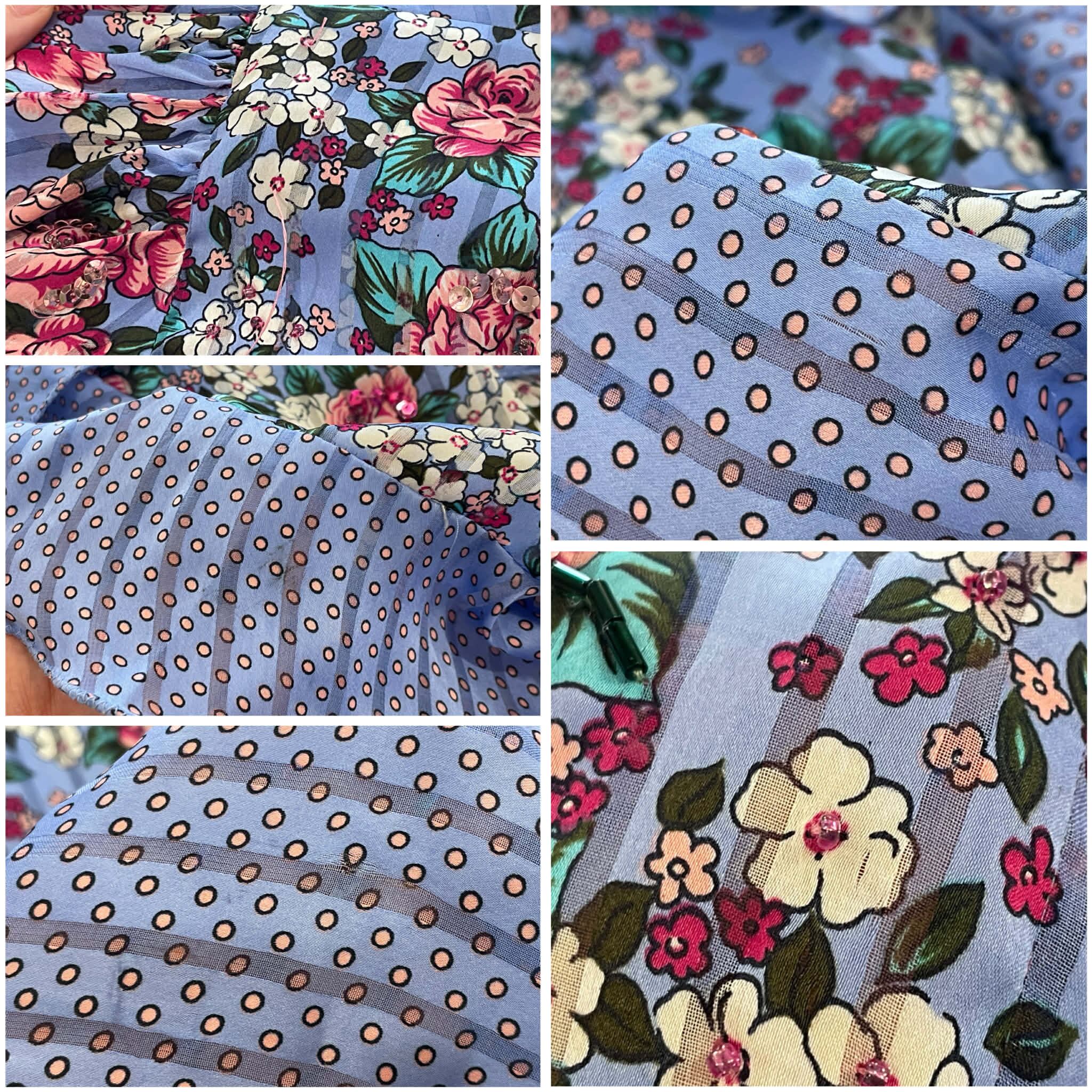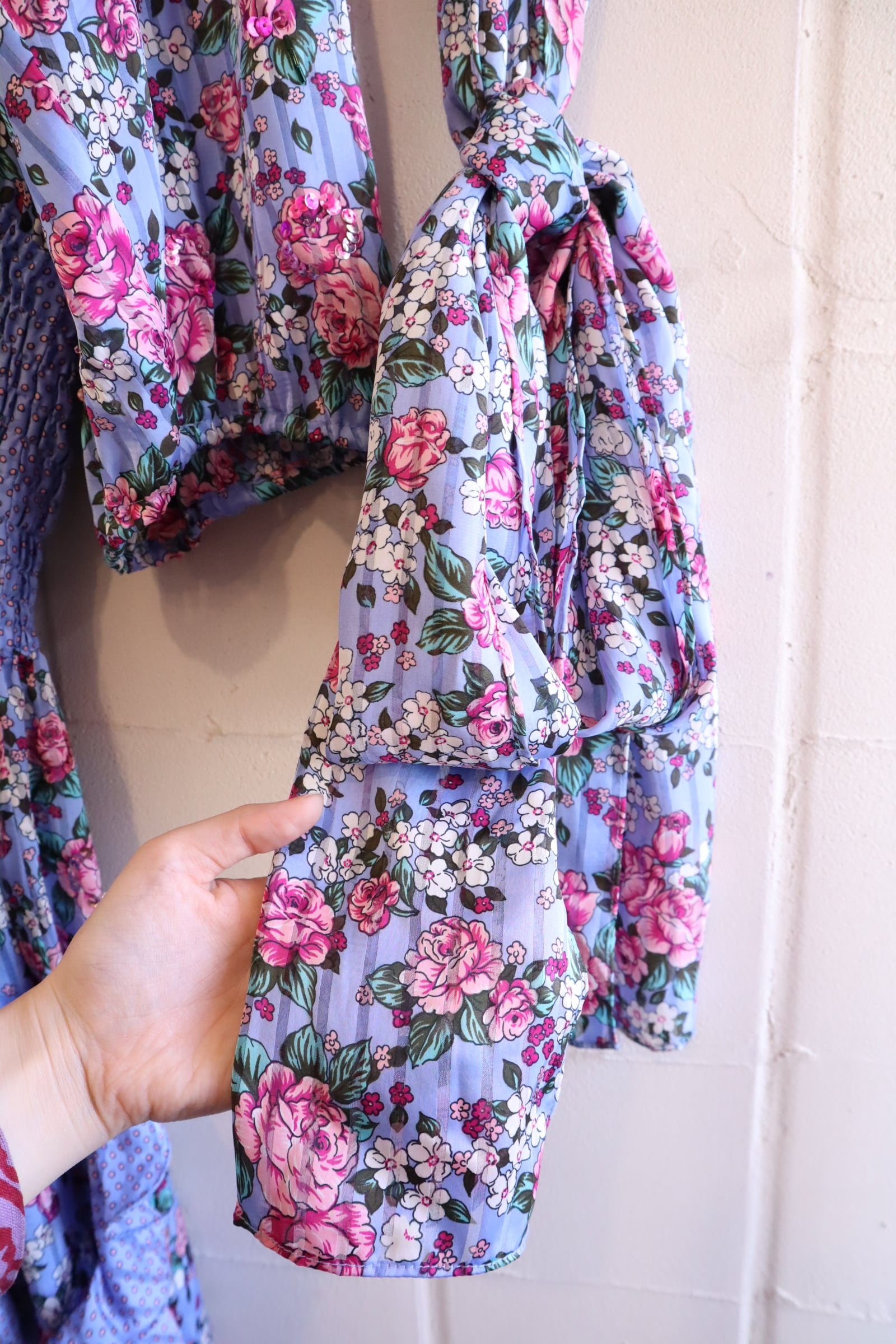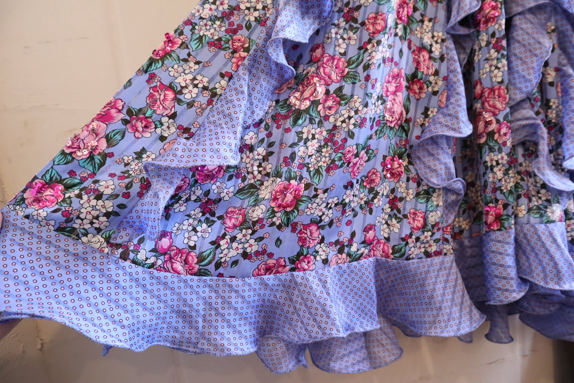 80s bluepurple×pink flower&dot sequin dress [l-5082]