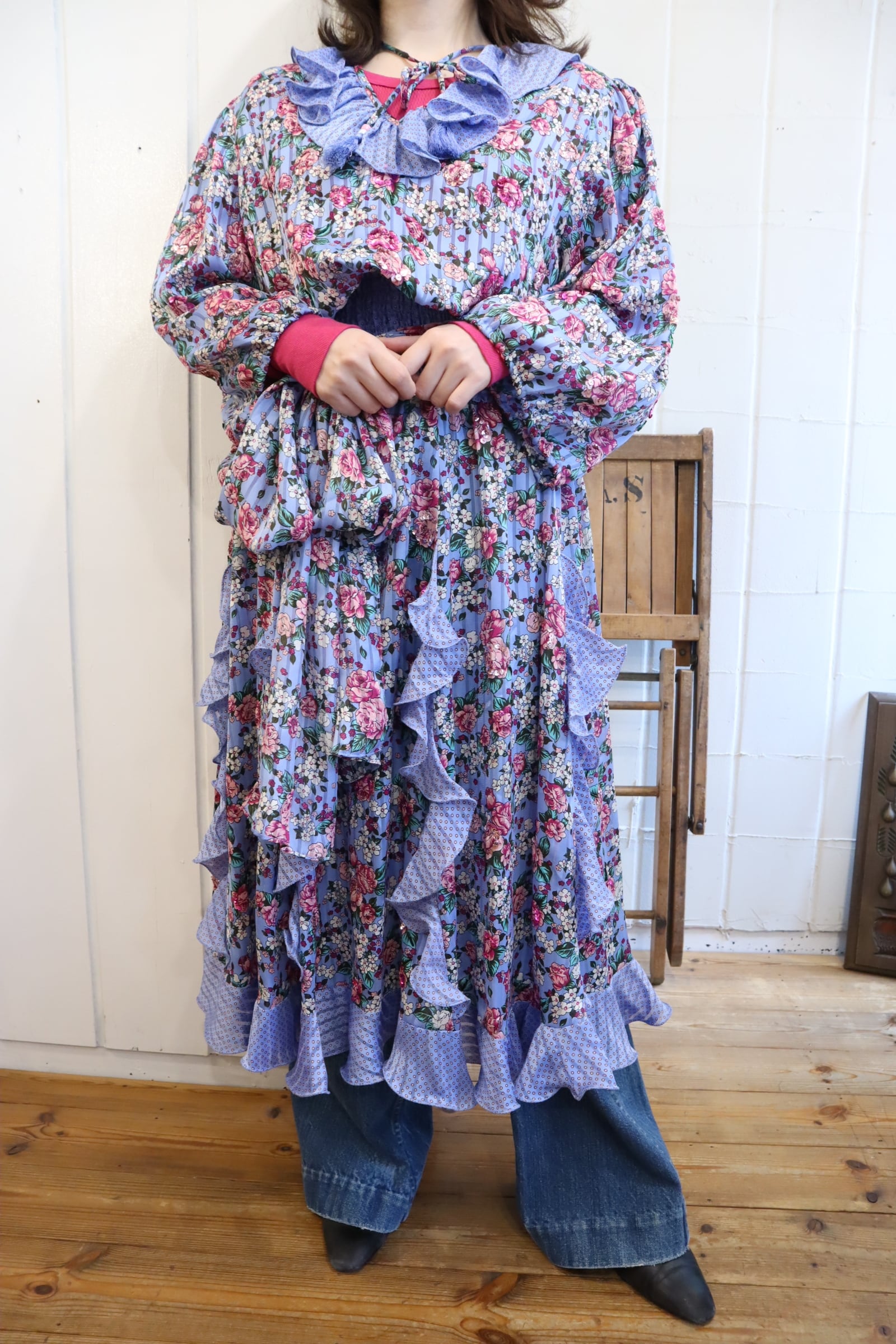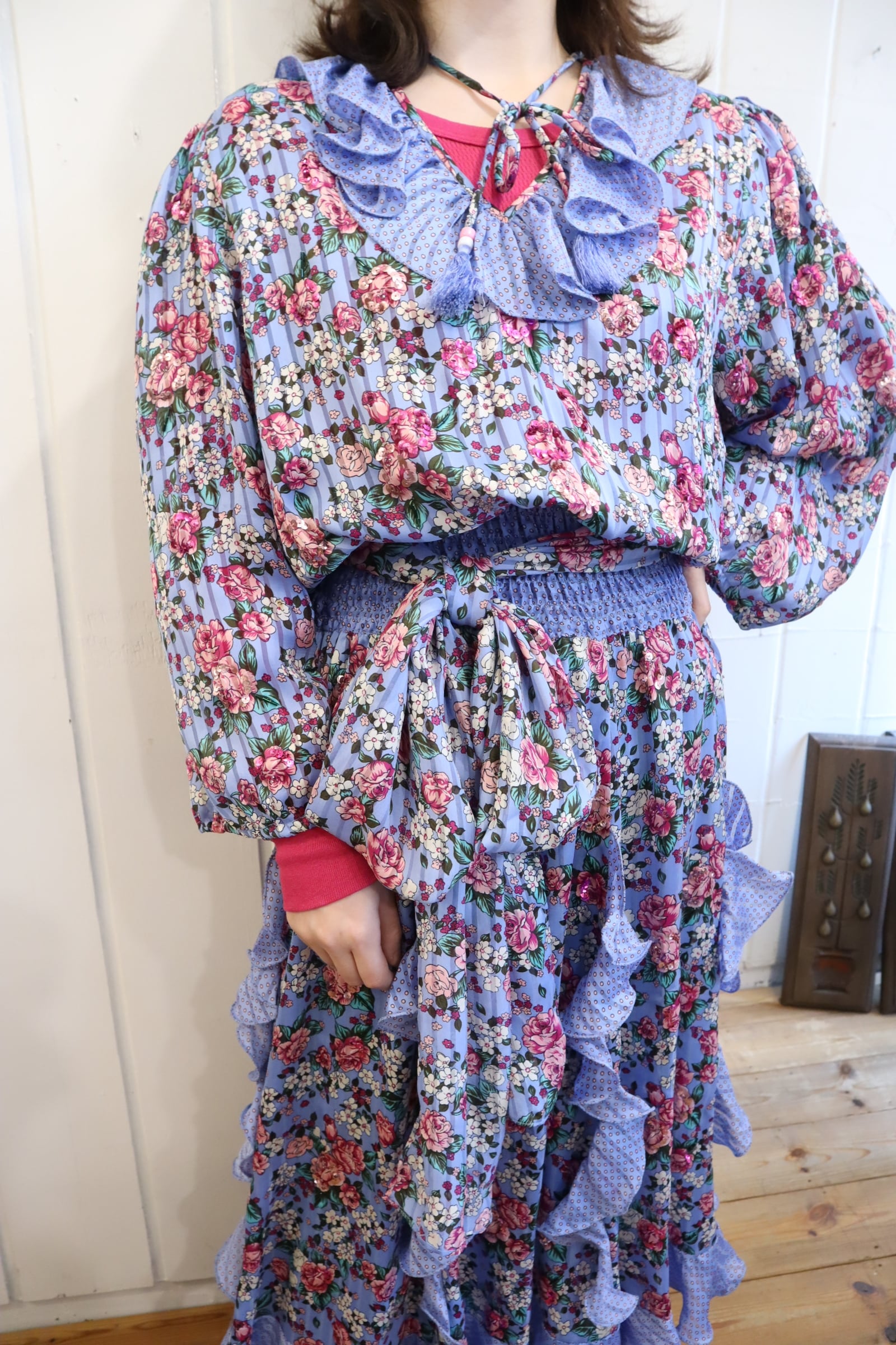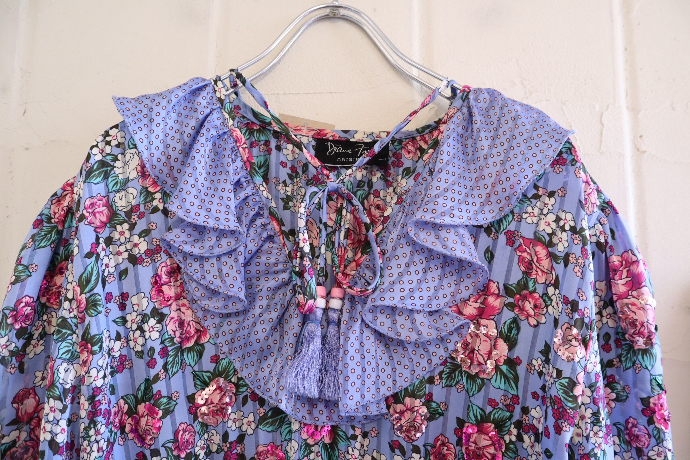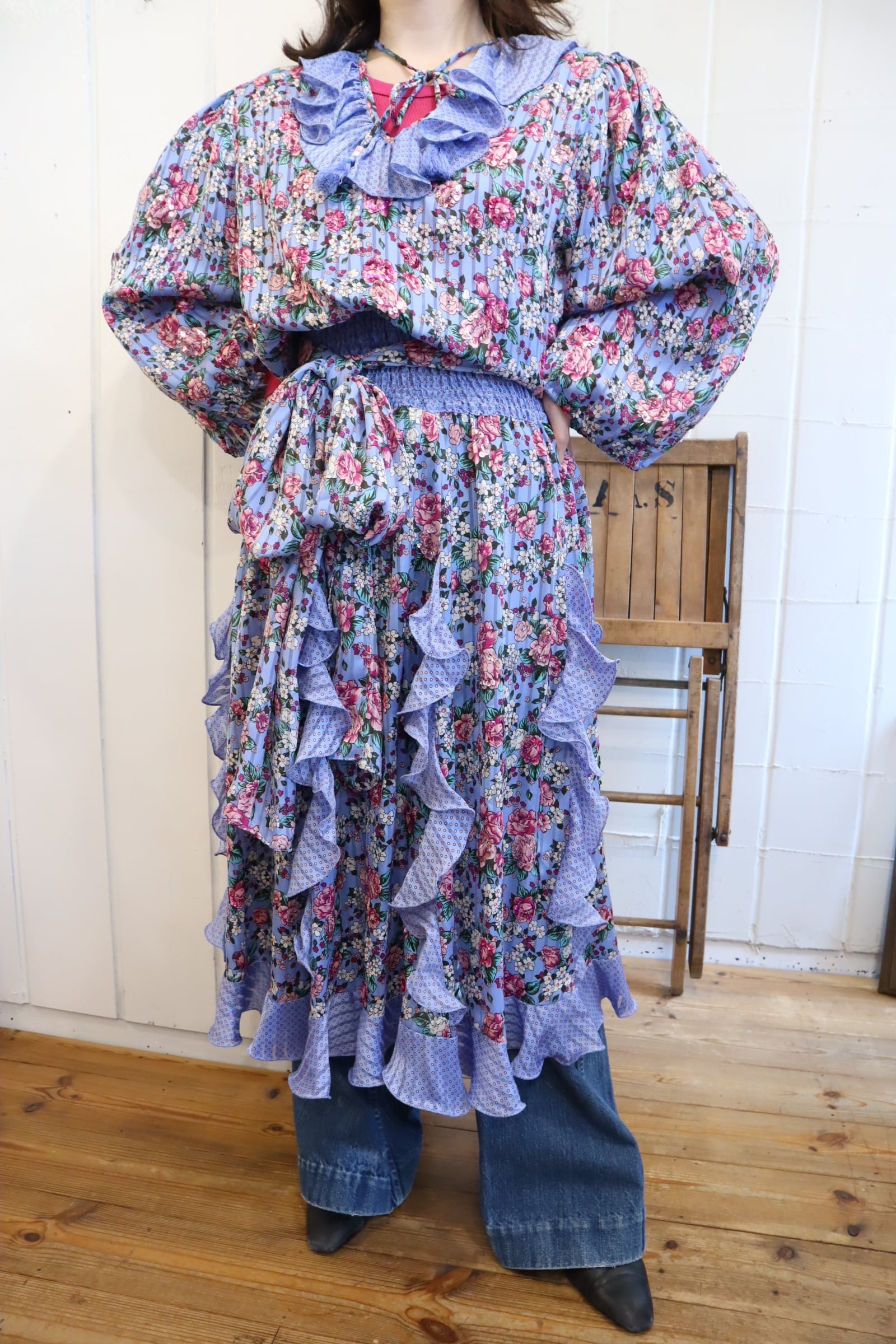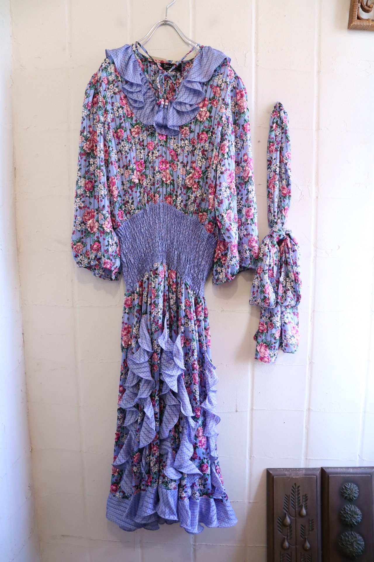裾のフリルデザインが可愛い80sダイアンフレイスドレス*