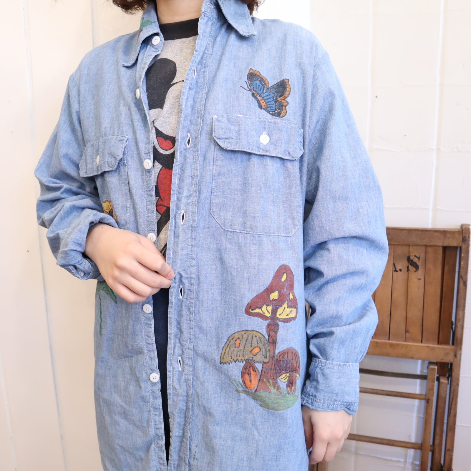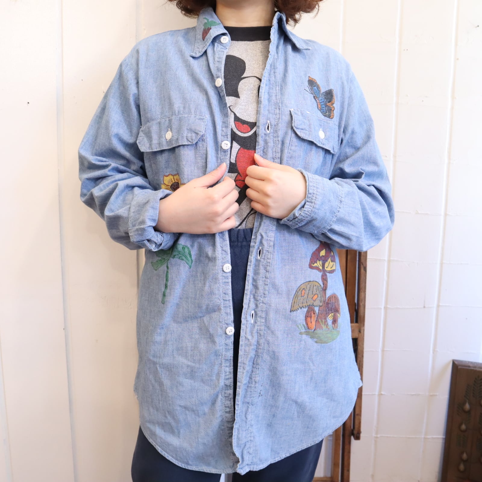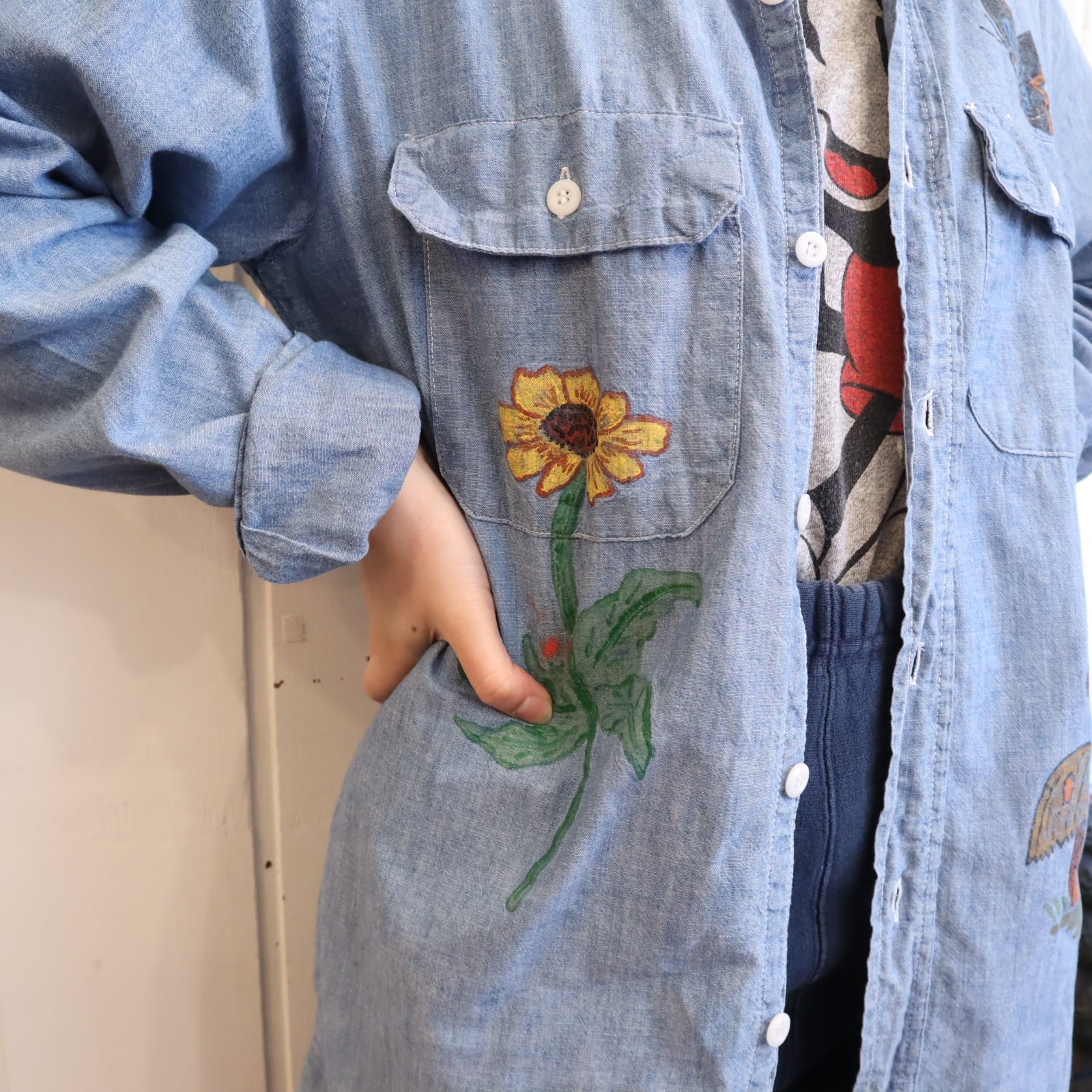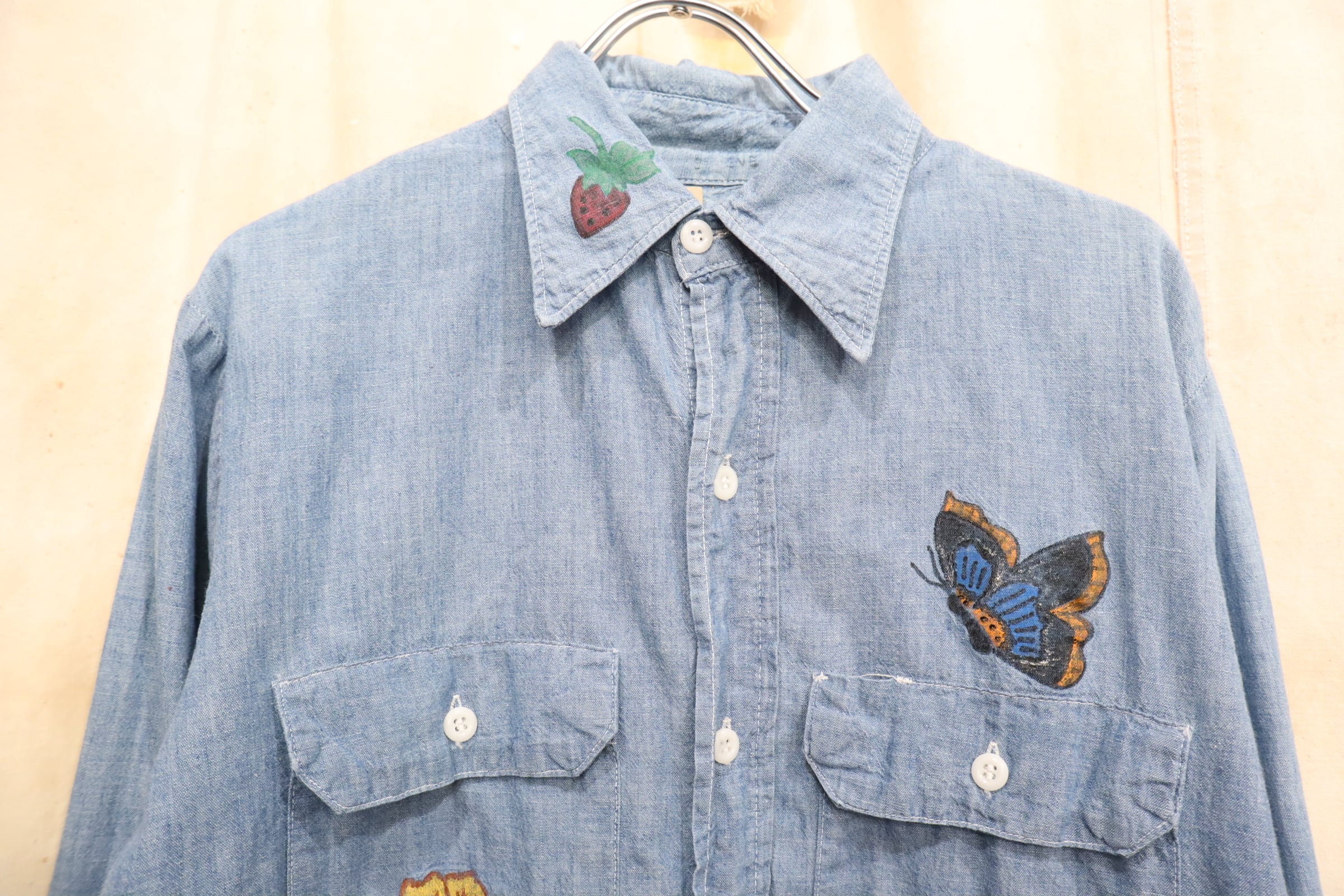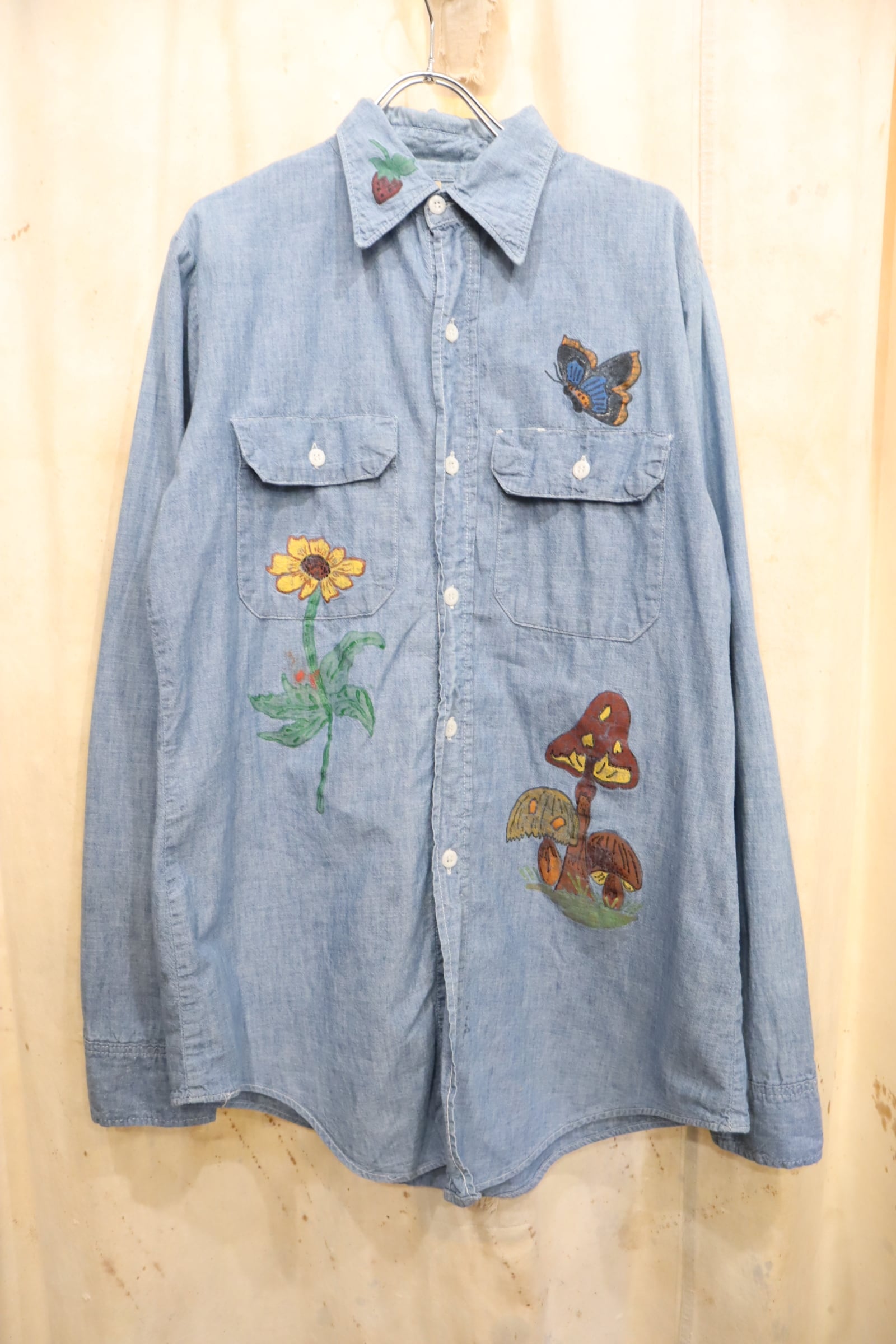 BLUE BELL blue×colorful hand paint chambray shirt [k-5087]